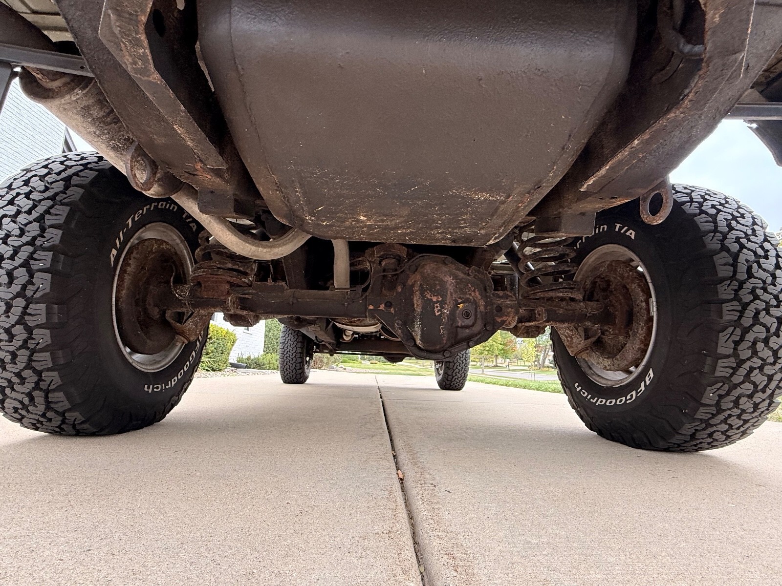 New 235/75/16 Goodrich tires were fitted to the 16″ painted steel wheels, and a matching spare is mounted at the bed.