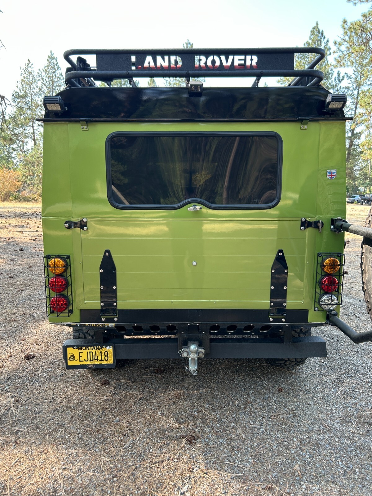 -Full exterior Land Rover body accessories, including: brush guard, bumpers, window guards, roof rack, side steps, additional body protection