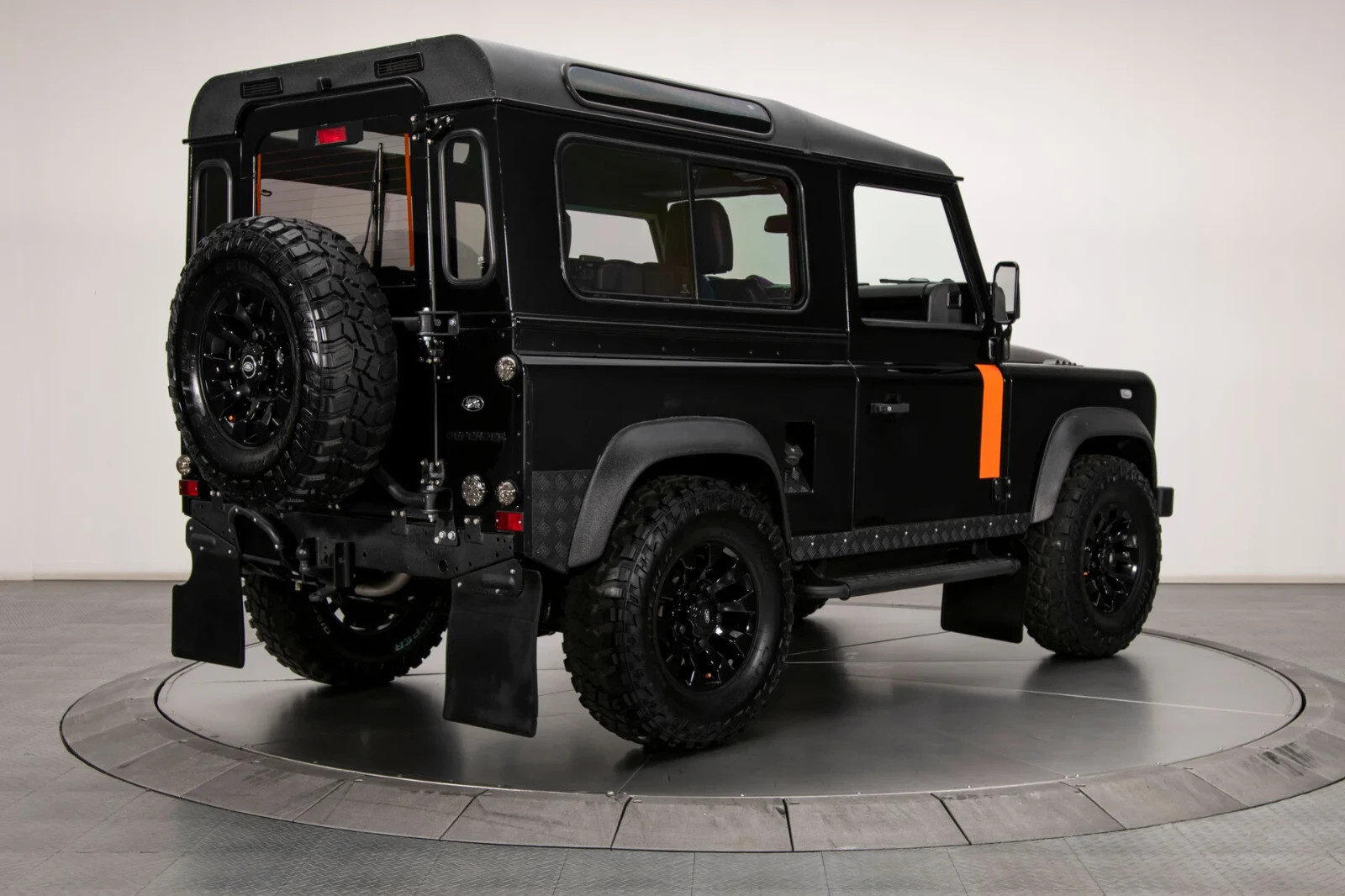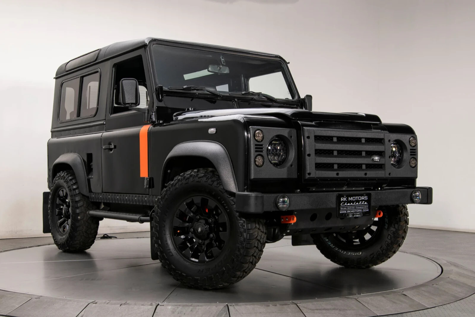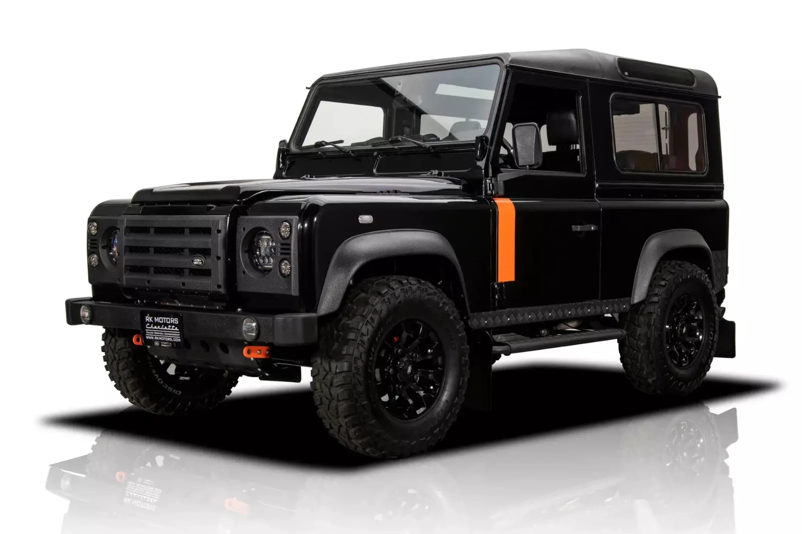 Land Rover Santorini Black paint with orange stripes and urethane-coated roof, bumpers and trim
