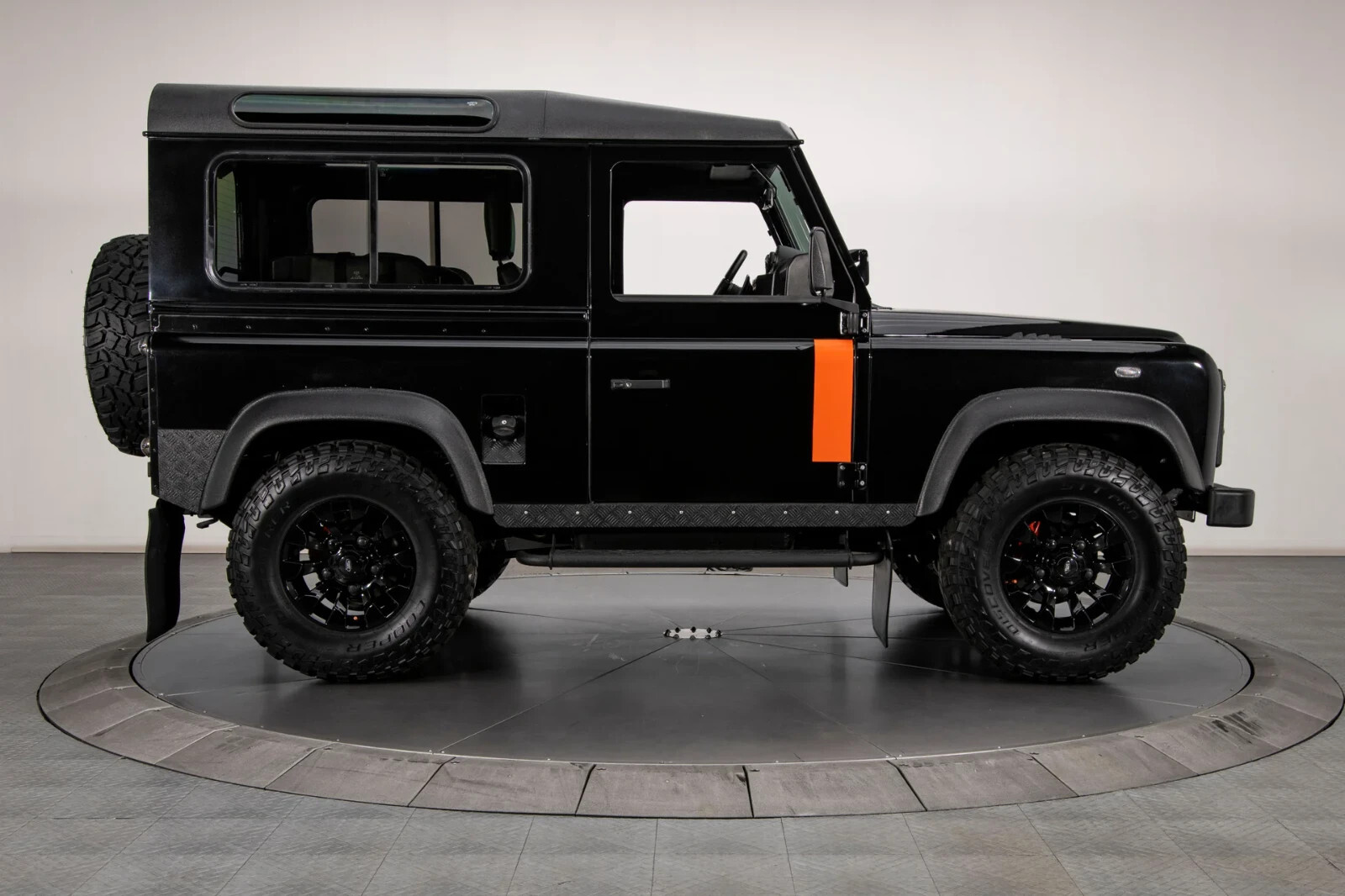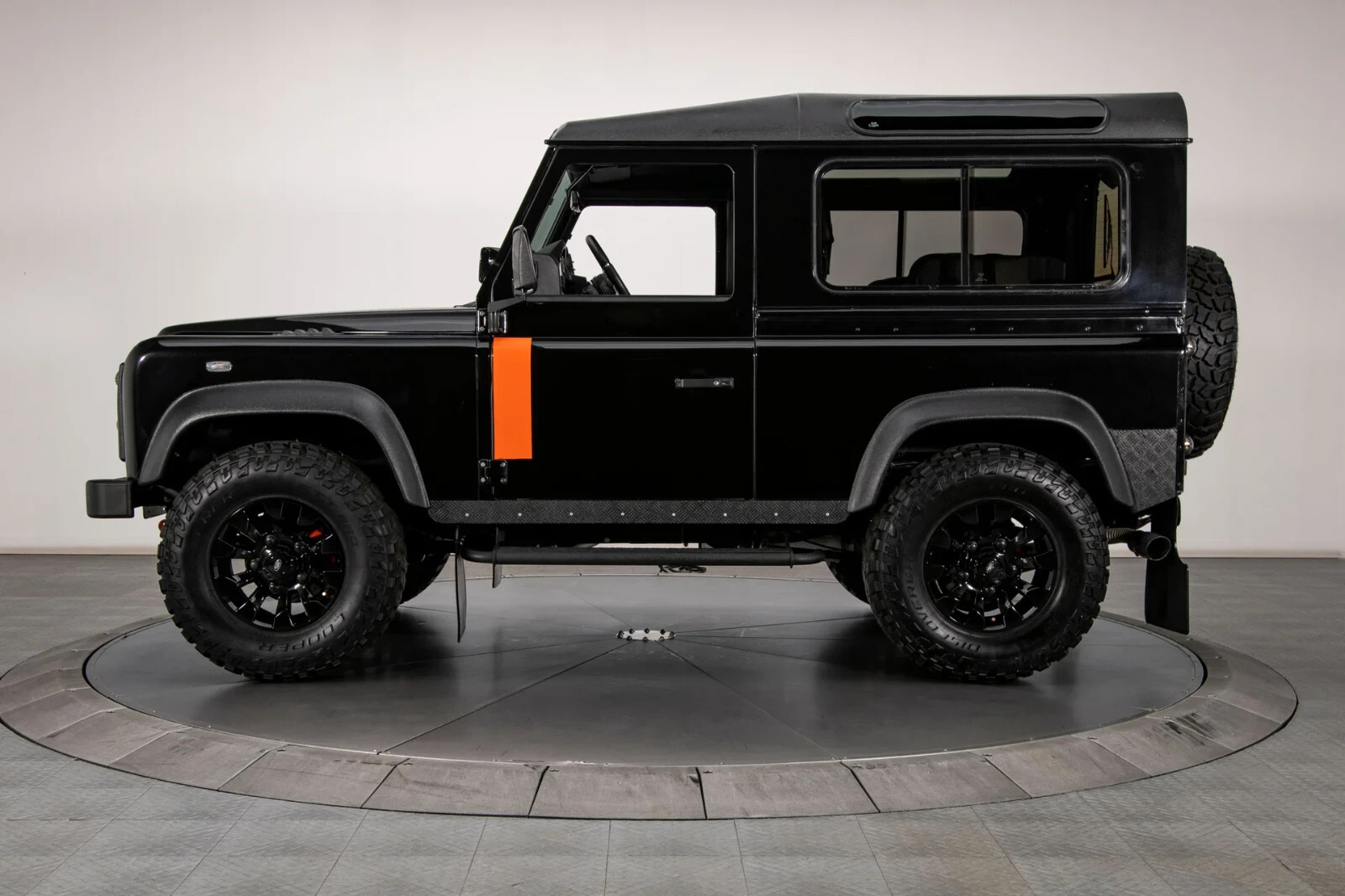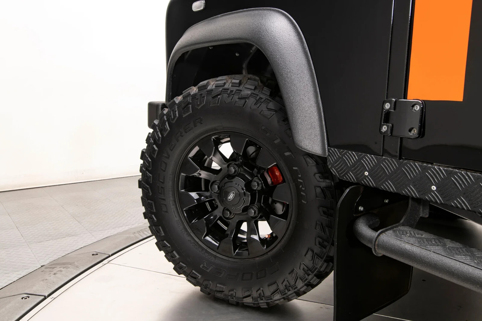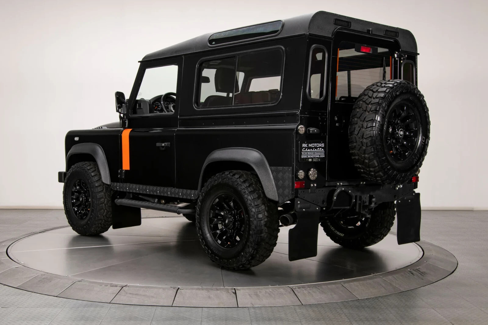 Land Rover Santorini Black paint with orange stripes and urethane-coated roof, bumpers and trim
