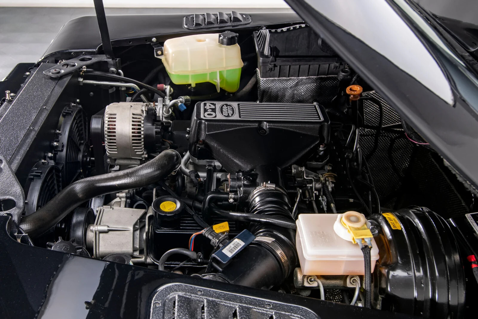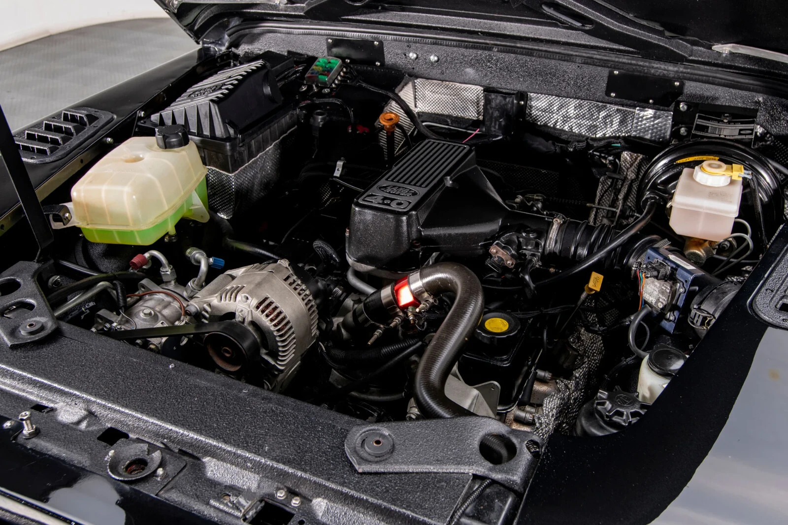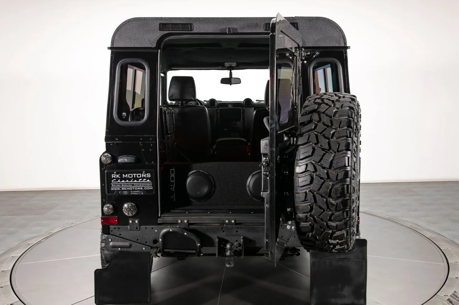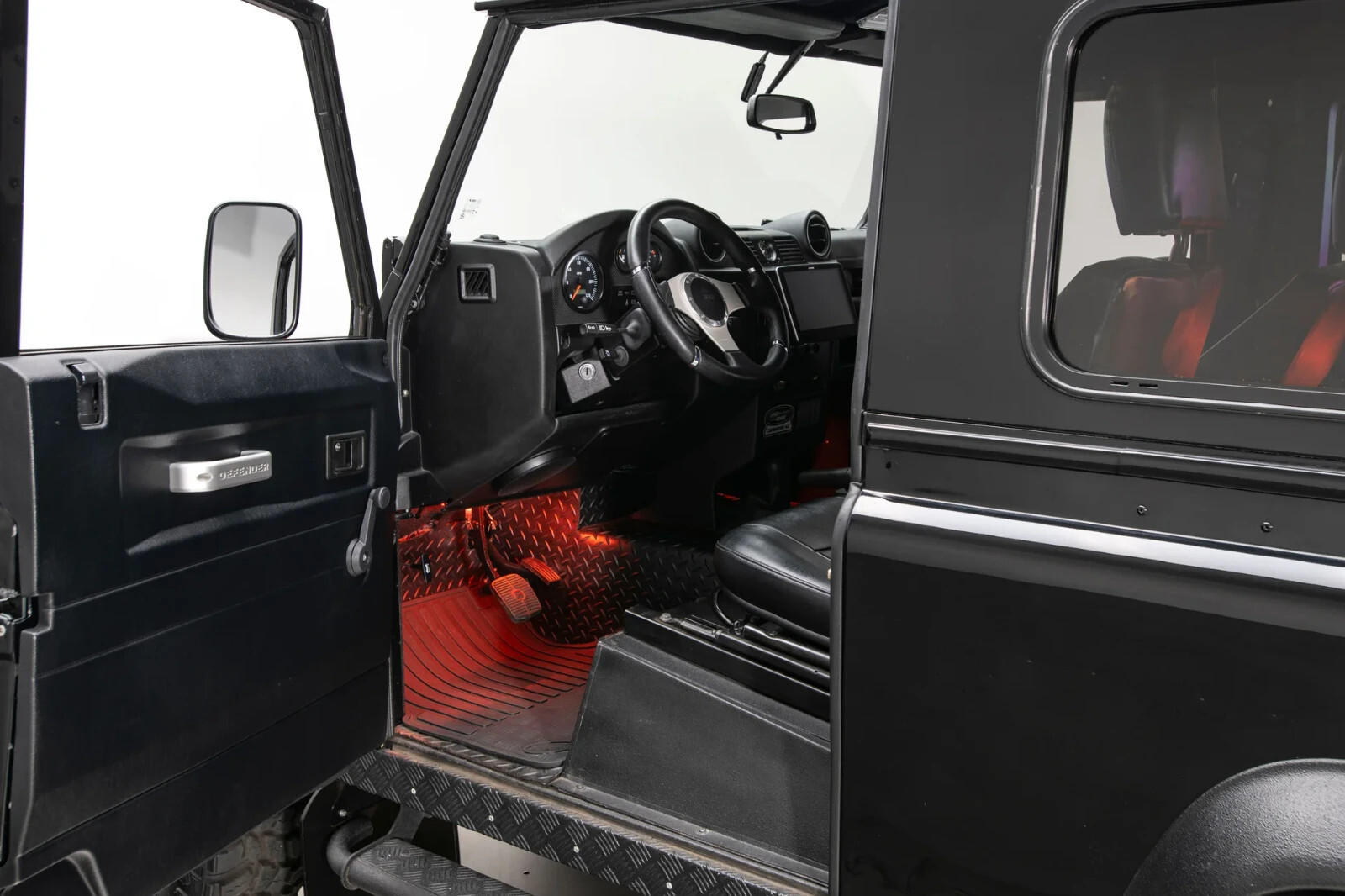 Black vinyl interior with rear Jump Seats, full Dynamat insulation and orange accent lighting