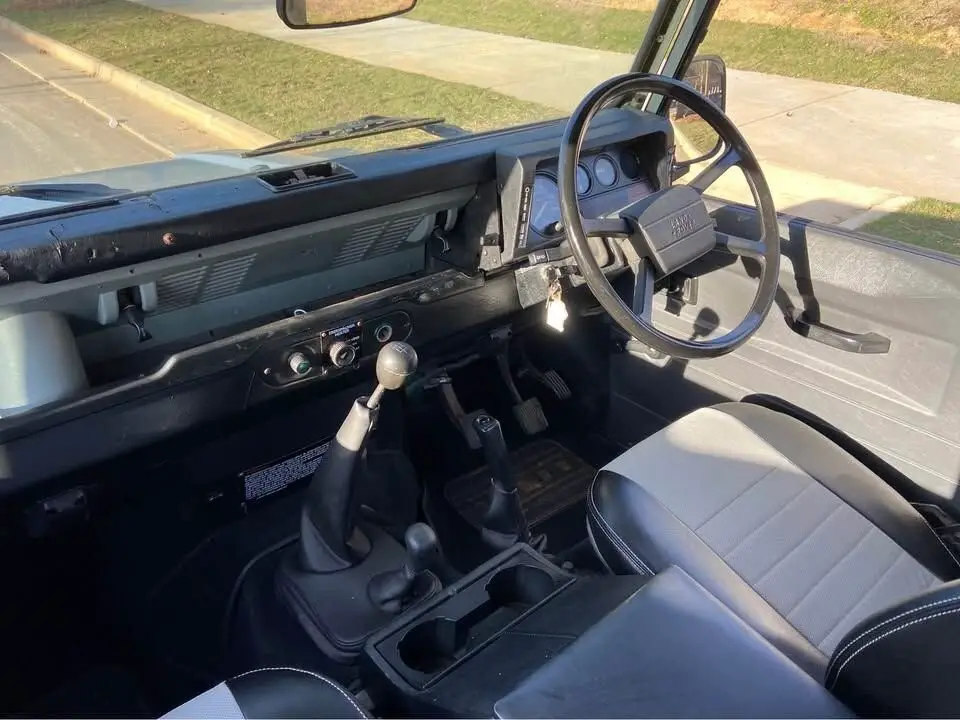 This 1991 Land Rover Defender 130 Pickup is a strong-running and well-maintained turbo diesel example. With its reliable 200TDI engine and manual transmission, it delivers the rugged dependability the Defender line is known for. The chassis and undercarriage remain solid, and the exterior presents well with a recent buff and wax, though not in perfect condition. Inside, new seats and carpet provide comfort, while the original dash and door panels show typical wear for its age. Extensive recent service work includes steering, cooling, drivetrain, and brake components, ensuring this truck is ready for work, adventure, or collection use.