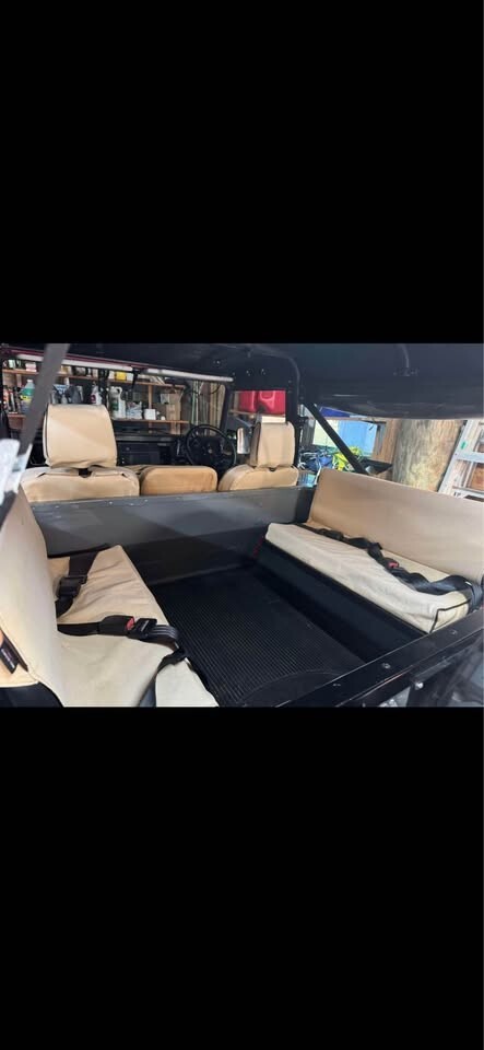 Comes w/ 4 different configurations - Hard top (spare roof w/ alpine windows, side panels w/ sliding windows, doors and tailgate - not pictured) and soft top set up. Bimini top. Or can run topless. Safety devices full roll cage. Bluetooth radio with 10” kicker sub. 5 BFG tires that are fairly new. LED lights all around. Front grill guard w/ LED spot lights. Skid plate. Canvas Rovers North seat covers (black vinyl seats are prefect, just covered for heat in the south). Comes w/ center seat & center console (not pictured). Tow hitch. Door tops storage bag (not pictured). Serviced by LR tech yearly. Cruises on interstate at 70mph easily and very stable. Shifts smooth and easy. Runs perfect and reliable. This could be a daily driver.