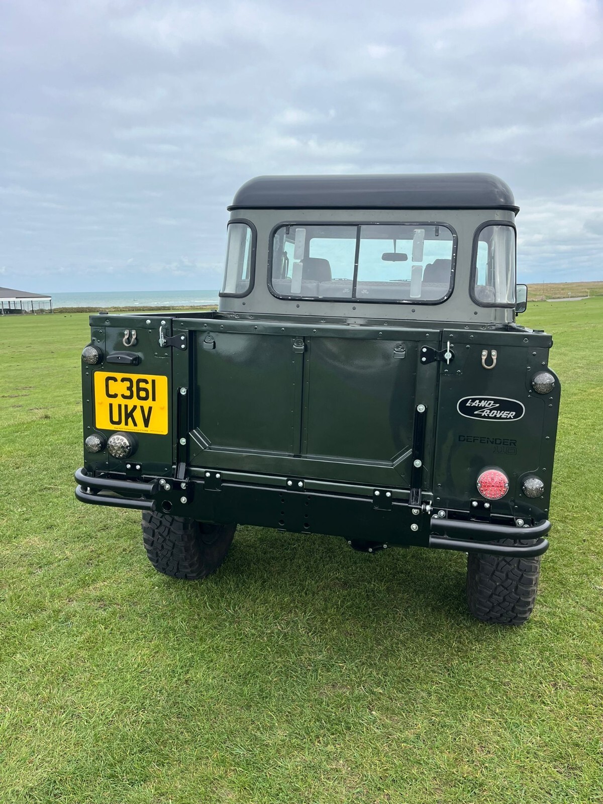 For the discerning enthusiast who demands both classic heritage and modern performance, we present a one-of-a-kind 1985 Land Rover Defender 110, meticulously rebuilt from the ground up with a 2006 crew cab body and powered by a formidable 3.5L V8 petrol engine. This is not just a restoration; it is a complete re-engineering of a timeless icon, designed to be the ultimate daily driver, weekend adventurer, or a standout piece in any collection.Built by the master craftsmen at Green Land Rovers in Kent, UK and commissioned by Bespoke Defenders, this vehicle blends the raw, utilitarian soul of the original Defender with carefully selected modern upgrades and impeccable build quality. Finished in a sophisticated Tonga Green and accented with tactical black chequer plate, this Defender commands a presence on the road that is both aggressive and refined.Vehicle Identification & HistoryChassis Number (VIN): SALLDHMV7BA242713UK Registration: C361 UKVOriginal Registration: August 1985Original Configuration: Ivory White 5-door Station WagonCurrent Configuration: Tonga Green 4-door Crew Cab PickupRestoration: Complete chassis-up rebuild completed 2025 by Green Land Rovers, Margate, KentThis Defender has a documented history from its original registration with Land Rover Sales & Marketing in Solihull through its comprehensive restoration. The vehicle underwent a complete chassis-up rebuild in 2025, with every component either refurbished to as-new condition or replaced with quality parts.Key Specifications at a GlanceYear: 1985 Frame / 2006 Crew Cab BodyEngine: 3.5L (3528cc) V8 PetrolEngine Number: 21G00273Fuel System: Twin Stromberg 175 CarburetorsTransmission: LT85 5-Speed ManualTransfer Box: LT230 Permanent 4WD (1.4:1 ratio)Drive Configuration: Right-Hand Drive (authentic British specification)Axle Ratios: 3.54:1 front and rearBody Style: 4-Door Crew Cab PickupExterior Color: Tonga Green with Black Chequer PlateCondition: Fully rebuilt to as-new conditionPrice Includes: Vehicle and fully insured shipping to your door in the USAThe Build: No Expense SparedExteriorThe iconic Defender silhouette is enhanced with a host of purposeful and aesthetic upgrades. The deep Tonga Green paint provides a rich, military-inspired finish, while the black chequer plate on the sills, hood, and rear quarters offers rugged protection and a bold visual contrast. The vehicle is equipped with a snorkel for deep water wading, heavy-duty side steps, and aggressive 285/85 R16 all-terrain tires mounted on custom black wheels, ensuring it is as capable as it is handsome.InteriorStep inside to discover a cabin that marries classic Land Rover design with modern technology. The centerpiece is a seamlessly integrated touchscreen infotainment system featuring Apple CarPlay, putting navigation, music, and communication at your fingertips. The durable and clean interior is ready for any adventure, while the crew cab configuration provides ample space for four passengers and gear. Front seats feature 1985-specification belts, while the rear has been upgraded with 2005-model seat belts for enhanced safety.Powertrain & PerformanceAt the heart of this machine is the legendary 3.5L V8 petrol engine (engine number 21G00273), delivering the power and soundtrack that a vehicle of this stature deserves. Fed by twin Stromberg 175 carburetors and an electric fuel pump, this classic V8 produces robust power across the rev range. Paired with the robust LT85 5-speed manual transmission and the legendary Land Rover LT230 permanent four-wheel-drive system with 1.4:1 transfer case, this Defender offers an engaging and authentic driving experience that is simply unmatched in today's market of sanitized SUVs.Chassis & DrivetrainThe foundation of this build is a fully restored 1985 chassis that was stripped to bare metal, sandblasted, and repainted in 2025. Both the front 10-spline 'Rover' axle and rear 'Salisbury' axle are original 1985 specification, fully overhauled with 3.54:1 ratios front and rear. The propshafts are period-correct 110 V8 LT85 specification, refurbished with new universal joints. This Defender rides on upgraded suspension with enhanced springs visible in the photos, providing both a confident stance and improved on-road handling and off-road capability.Brakes & WheelsDisc brakes up front and drum brakes at the rear, all 1985 specification and fully overhauled in 2025, provide confident stopping power. The vehicle sits on 285/85 R16 all-terrain tires mounted on custom black wheels, giving it an aggressive stance and excellent off-road traction.Electrical & SystemsA 70Ah battery (located under the passenger seat) powers the 12-volt electrical system, which includes a modern touchscreen head unit with Apple CarPlay, upgraded lighting, and all original 1985 controls and switches. The vehicle features the original 12-fuse panel plus additional fuses for the immobilizer and radio upgrades.Your OpportunityThis is a rare opportunity to own a professionally built, custom Defender in the United States without the typical headaches of importation and restoration. Every component has been scrutinized, rebuilt, or replaced to ensure this vehicle performs flawlessly. Whether you are navigating city streets, cruising the coastline, or exploring remote trails, this Defender is built to do it all with unparalleled style.The vehicle is currently located in the UK and is ready for immediate, fully insured shipment to any location in the United States, included in the purchase price. The vehicle is eligible for import to all 50 states under the 25-year rule (no EPA or DOT restrictions). We will provide all necessary documentation including the UK registration document, bill of sale, and builder's specification sheet for US customs clearance and state registration.Don't just buy a car. Invest in an icon.Import Information•Eligible for import to all 50 US states (25+ years old, exempt from EPA/DOT)•Free, fully insured shipping to anywhere in the US