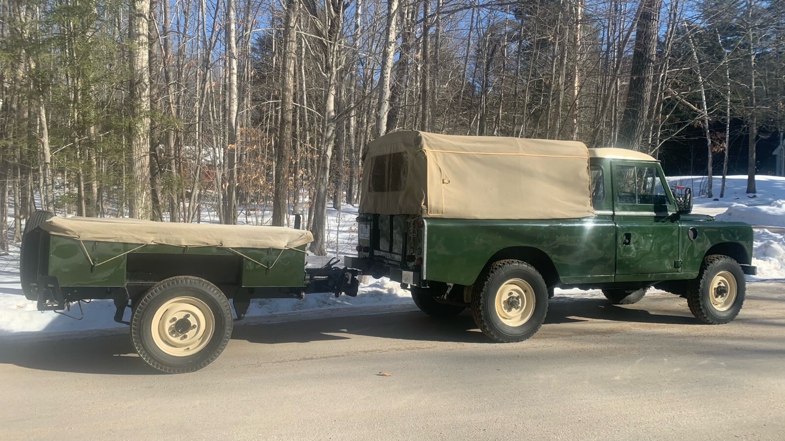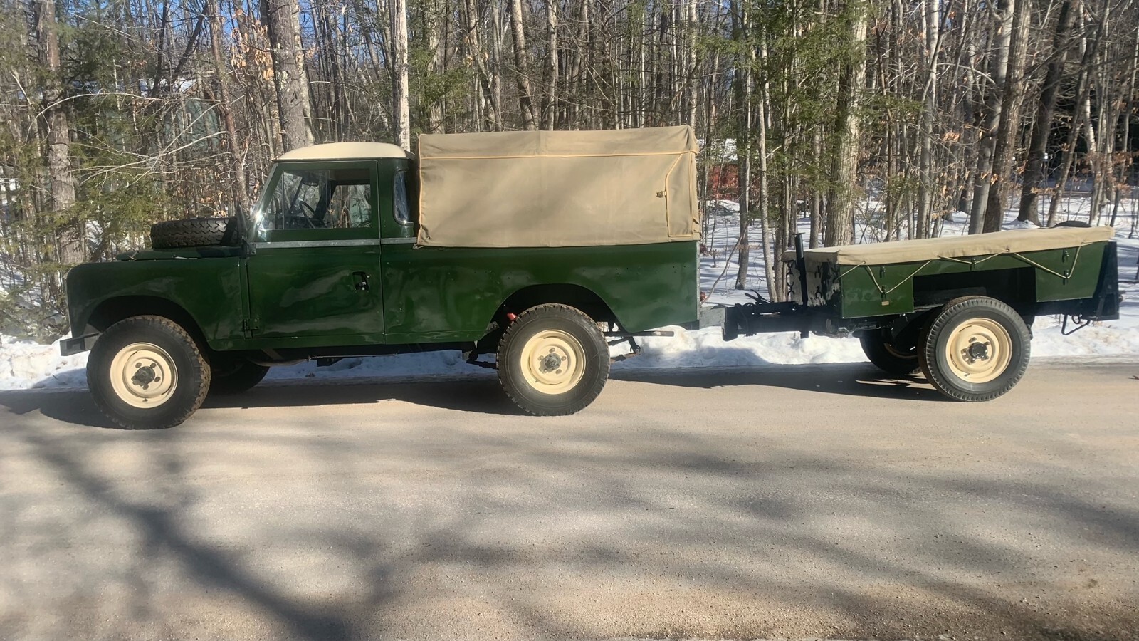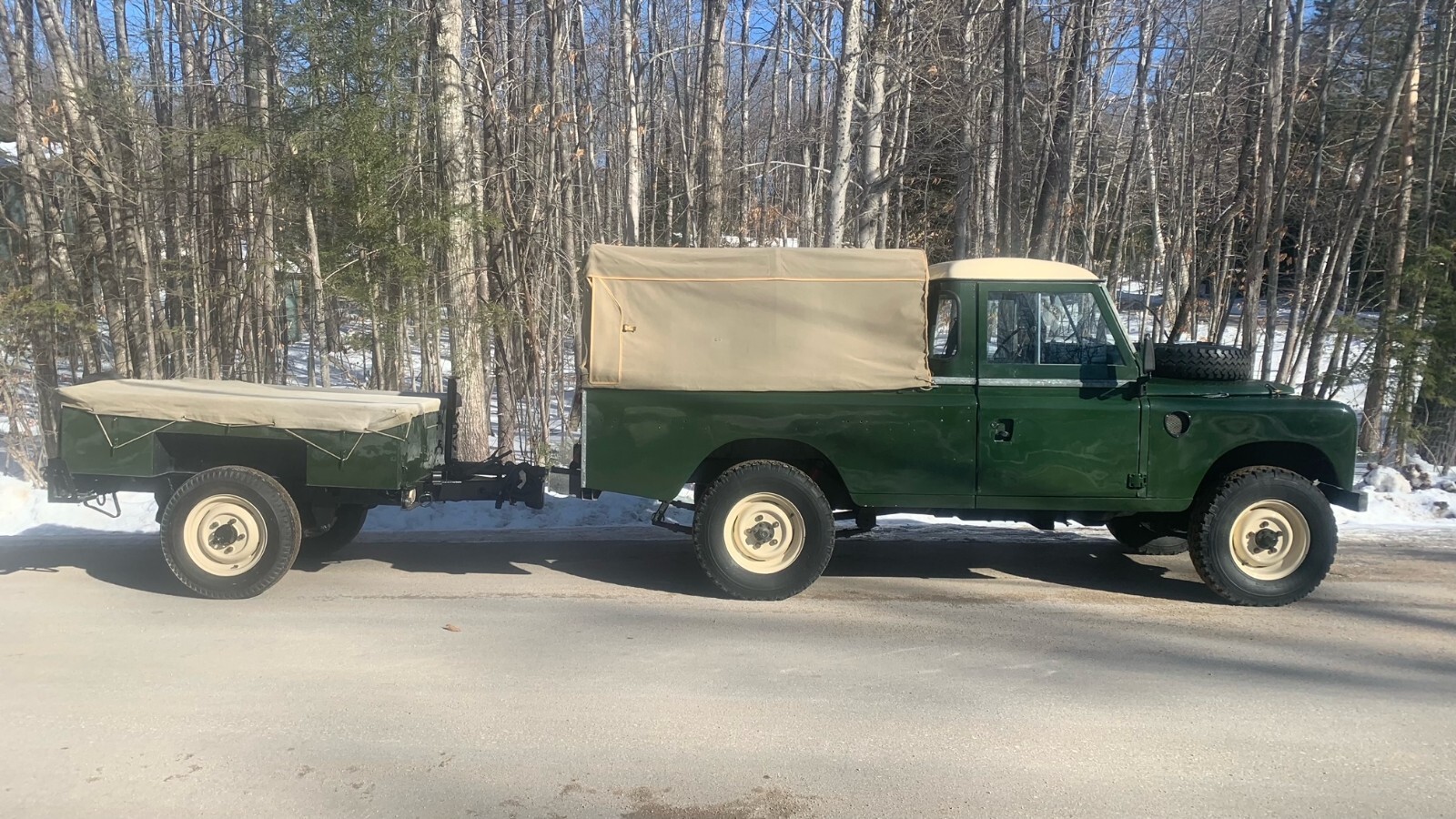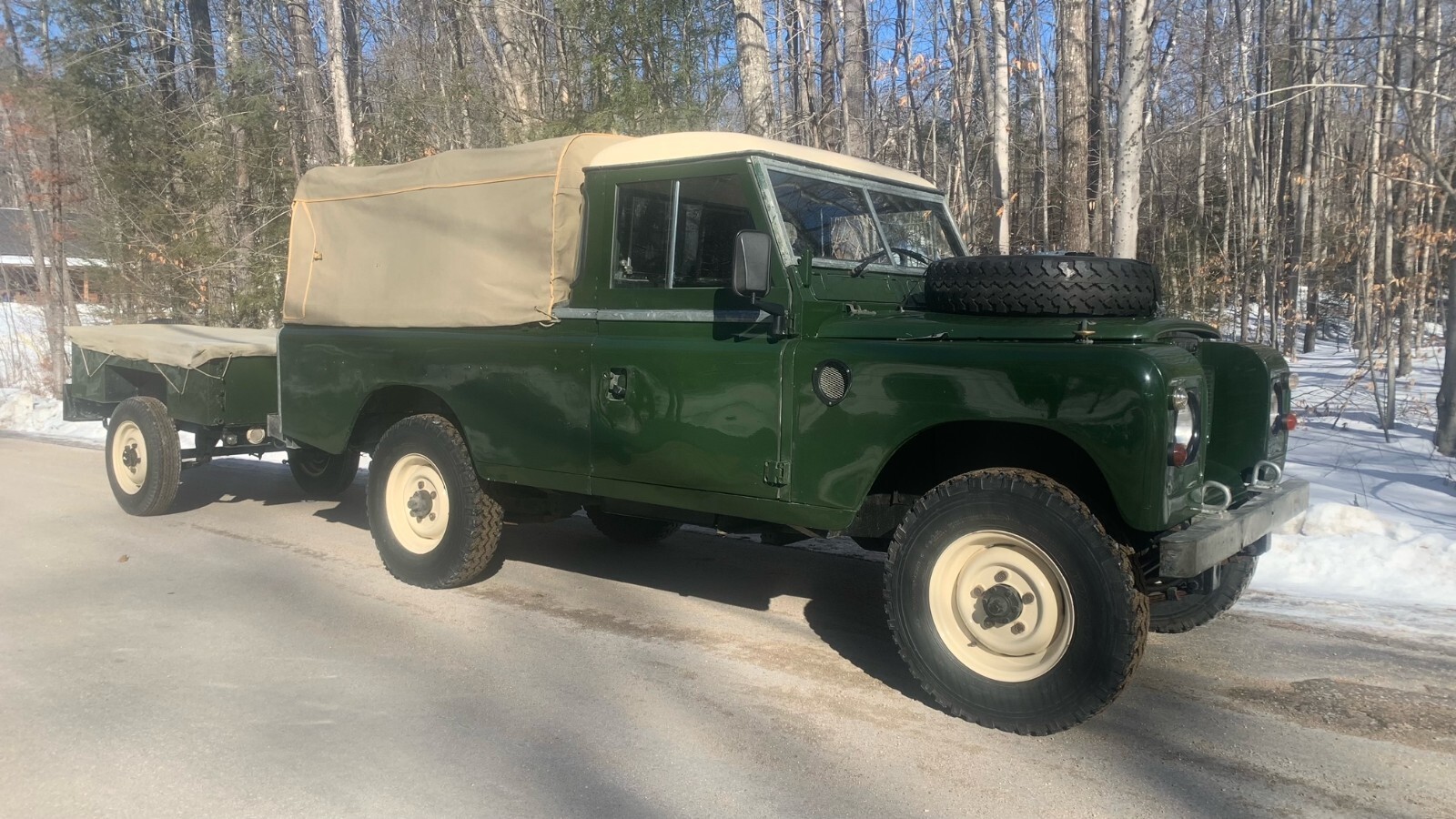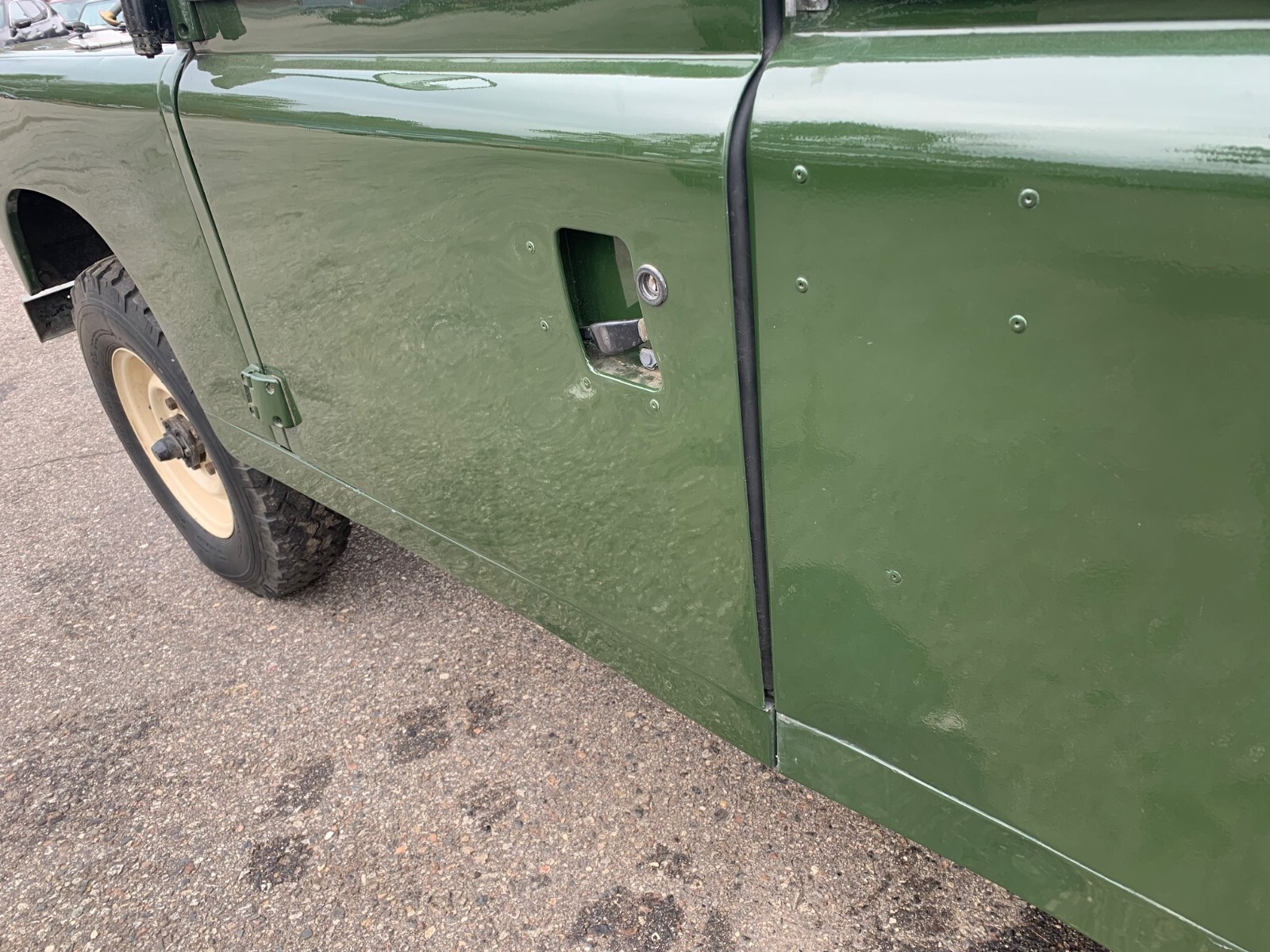 Fully refurbished and painted in classic Land Rover Deep bronze green with limestone wheels and limestone roof
