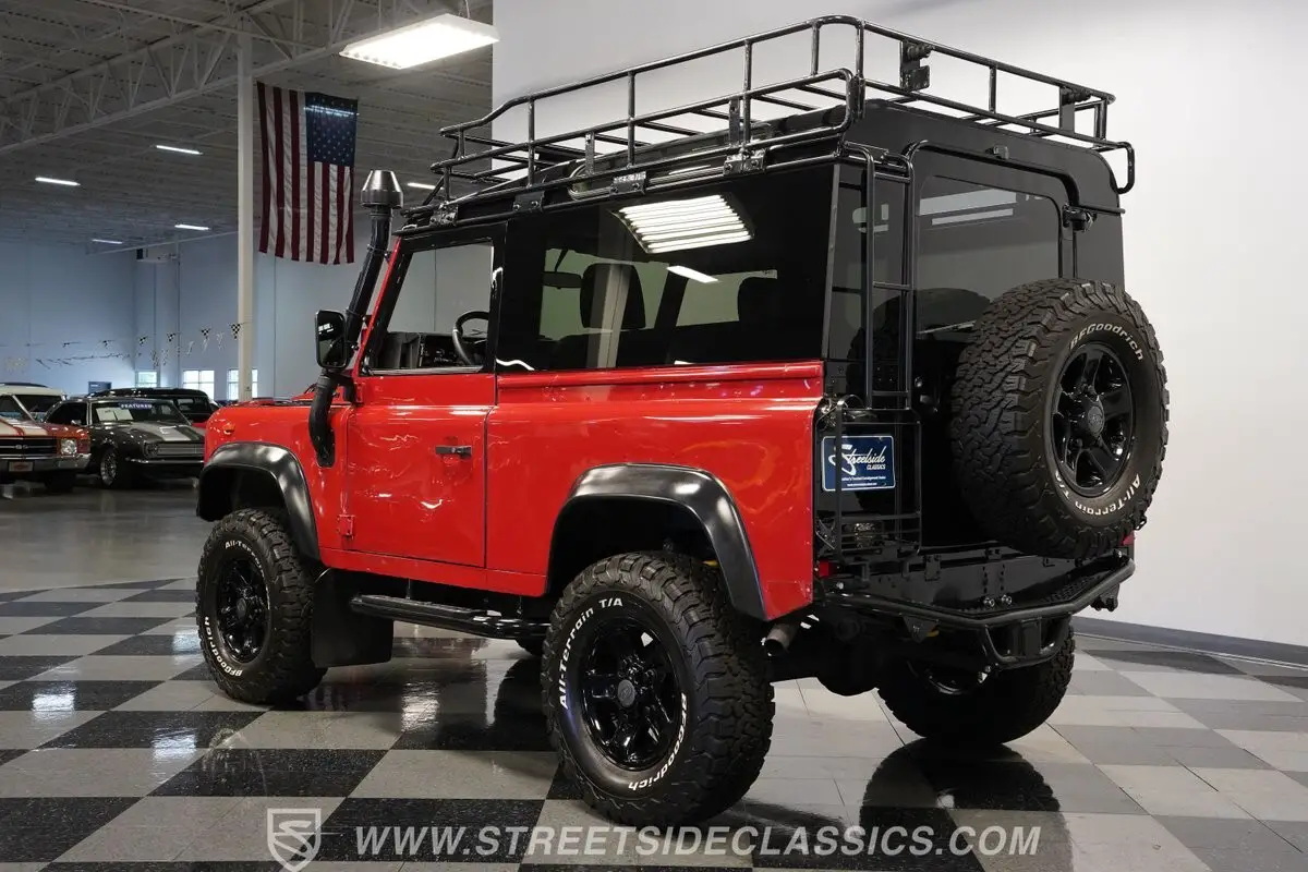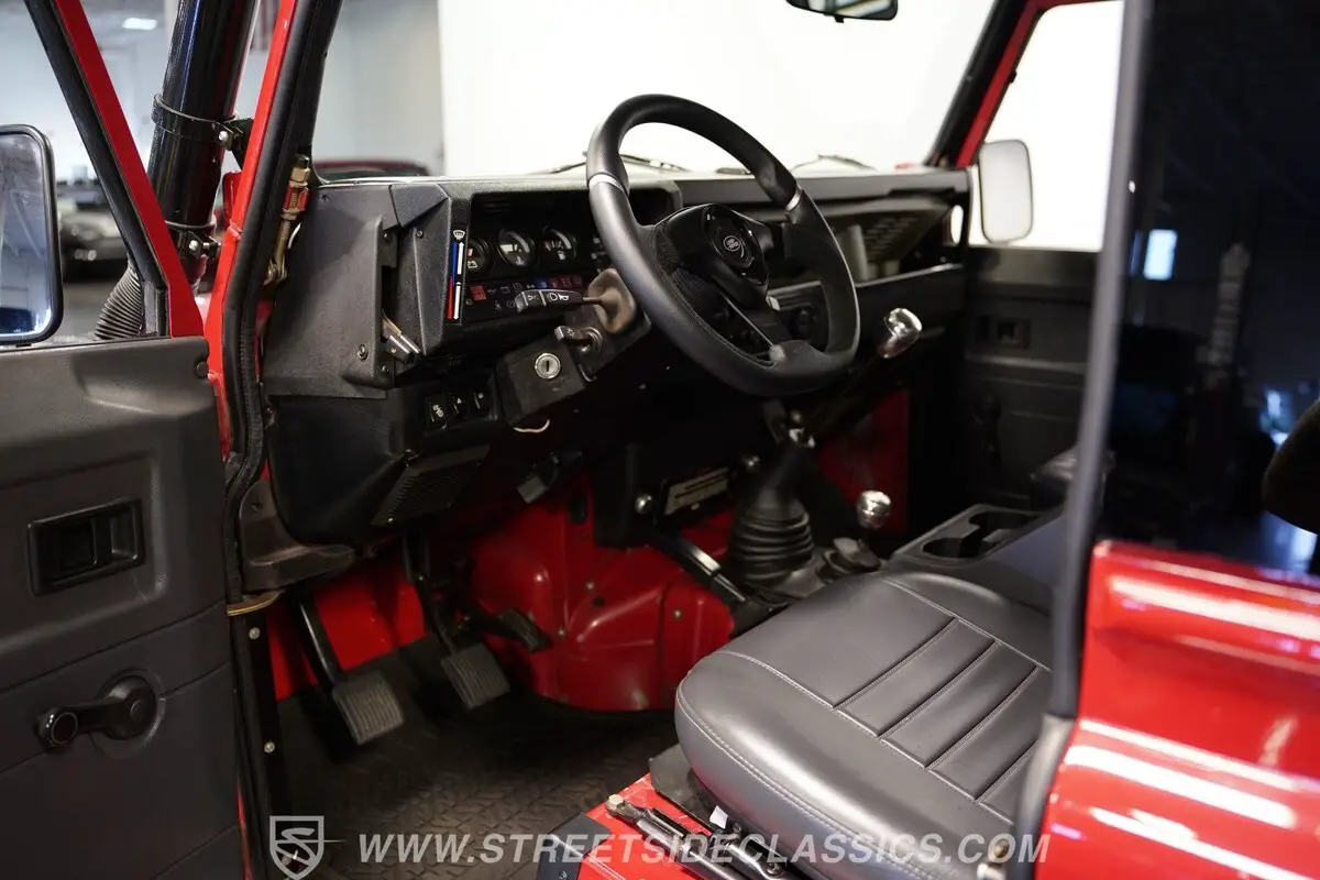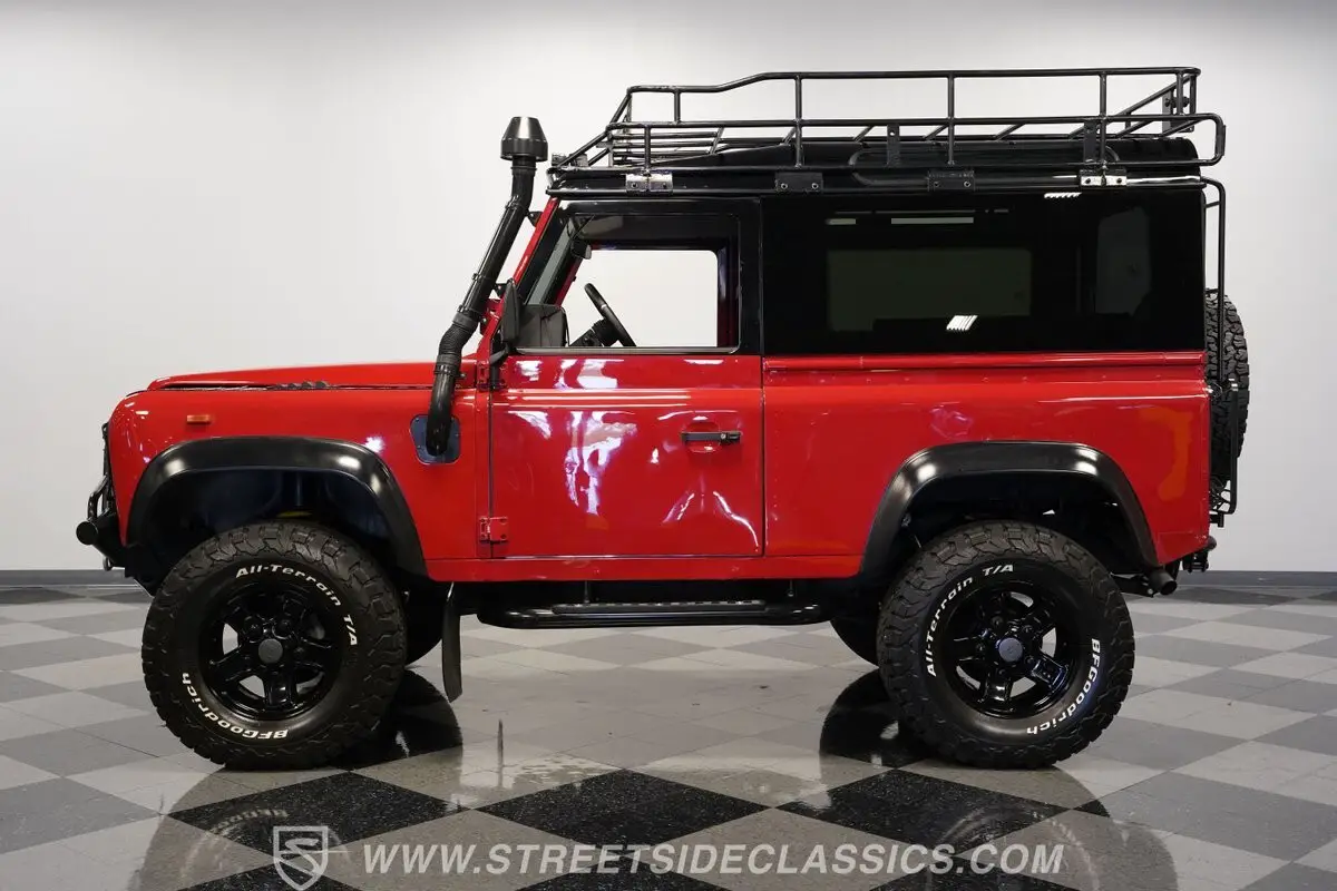 In terms of collectible SUVs, classic Land Rovers rank right up there as some of the most sought-after trucks on the market today. Today, we present to you this exceptionally capable 1991 Land Rover Defender 90, which has only 1999 miles on its odometer since its rebuild. Decked out in proud Arrow Red, complemented by a black top, this Defender is equipped with tubular bumpers and sidesteps, a full roof rack with ladder, intake snorkel, light bar, and front winch, making it ready to take on whatever kind of terrain you can throw at it.