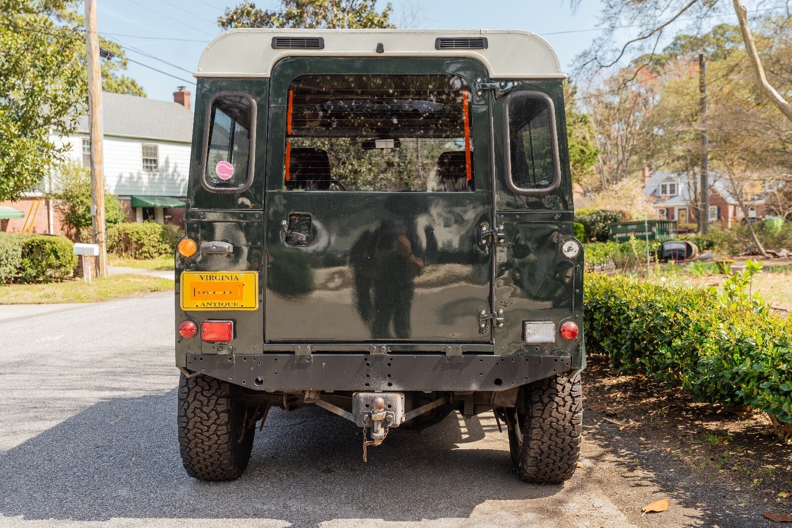 +Continuous All Wheel Drive with 5-speed manual transmission+British Racing Green + a V8 3.9L Rover engine+New gas tank and fuel pump with a separate 8-gallon Safari gas tank+No A/C+New indoor/outdoor carpenting throughout+Manual factory sunroof+New foldable rear bench seats with seatbelts+Brand new BF Goodrich tires with factory 16" rims+5th BF tire will come included. Car needs a mounting part for the spare tire in the back+New floor mats, center console, and running boards+Custom Land Rover steering wheel included as an option to install (has minor chips)+Few minor scratches in paint+The body, roof, and under carriage free of rot and corrosion. Scant surface rust+Receipts and records available