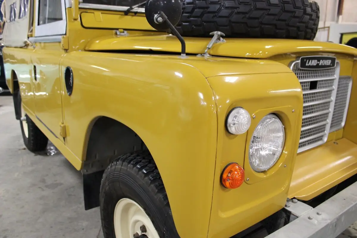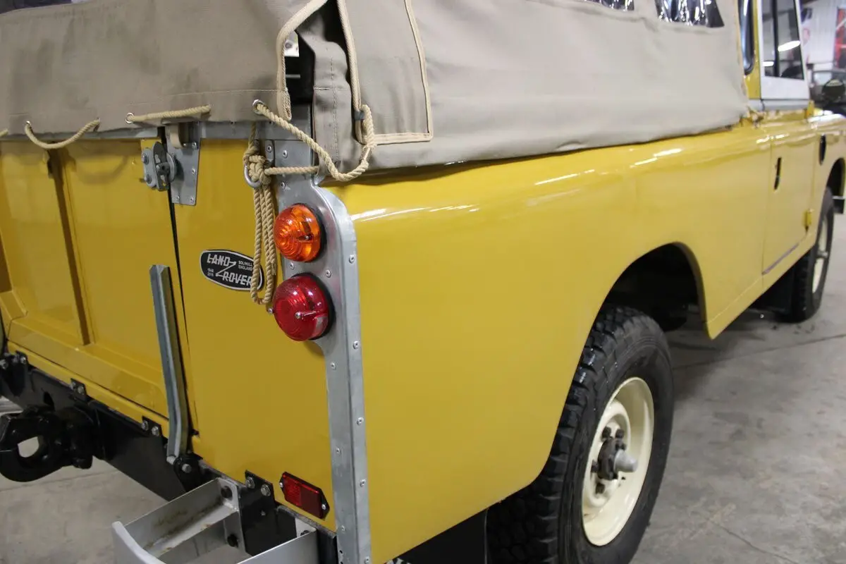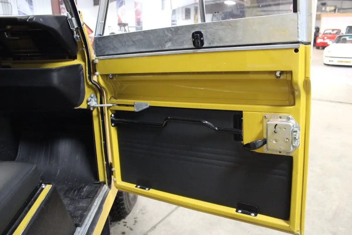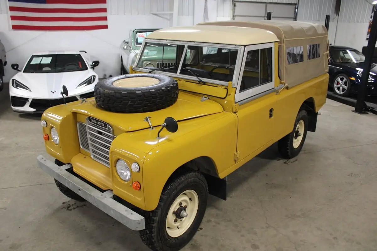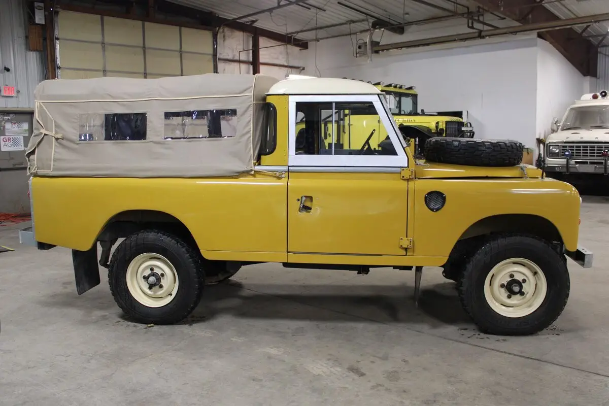 What we have here is a Ex-Oman Army left-hand drive Series III. It is powered by an overhauled 5-main bearing 4-cylinder with a rebuilt, stock 4-speed transmission and transfer case with a Holley Sniper Computer driven EFI system that eliminated the vapor lock from the stock carb. The prior owner to the current consignor purchased the Rover while living in Dubai UAE. A pic of the Rover before restoration is available but because of where the vehicle lived and served, there is virtually no rust whatsoever. The new paint scheme is Bahama Gold and Limestone. Most of the restoration was completed in Abu Dhabi UAE and then was imported back in to the US. The current owner has then taken it to the next level with many items being addressed and or upgraded like LED headlights, GPS speedometer, a newer odometer for miles instead of Kilometers and many more items. This Rover starts right up, idles perfectly and goes down the road exactly like it should. This is a very good example that has been taken to the next level. A few extra odds and ends will accompany the vehicle to the next owner along with a British Heritage Trust cert identifying the vehicle and build info. It also has owners manuals, tech book along with receipts and records of what has been done most recently. This is a tremendous opportunity to own something very unique. We encourage any questions and any pre purchase inspections here in our Traverse City showroom. We look forward to speaking with you!