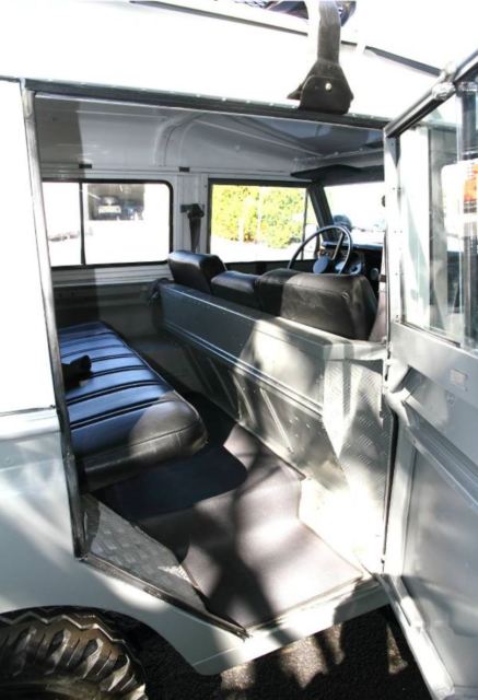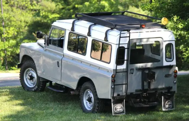 This is 1980 Series III 109 British Land Rover long wheel base. This vehicle is rust free and is in all original condition. The original 2.5L is clean and runs strong. This has a 4-speed manual transmission with a 2-speed transfer case. This is a very low mileage vehicle at 68,323 km (42,453 miles) which is remarkably low for a 26-year-old vehicle. The vehicle is a four door hardtop (One driver, two passenger and rear door), gray with a white roof. Sliding/locking split windows in front and rear. New paint inside and out. New upholstery front and back. The vehicle has a full Land Rover cargo carrier on top. An overall clean vehicle ready for driving and titled in the state of Maryland.