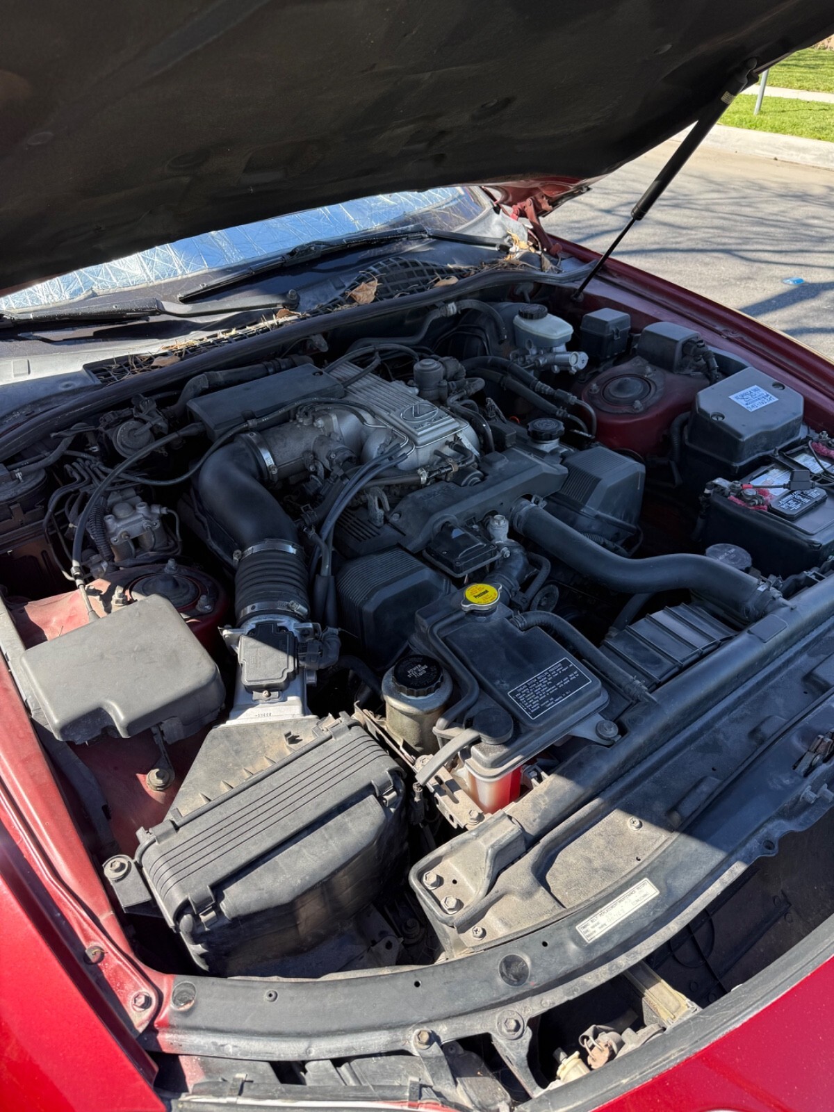 The 1992 Lexus SC 400 is a luxurious coupe with a tan interior and red exterior. It features a powerful 4.9L V8 engine with 300 horsepower, automatic transmission, and rear-wheel drive. This collector car has a sleek design with metallic paint, leather seats, cruise control, and a sunroof. With only 2 previous owners and 163,345 miles on the odometer, this Lexus SC 400 is a classic and stylish vehicle that offers a comfortable and sporty driving experience.