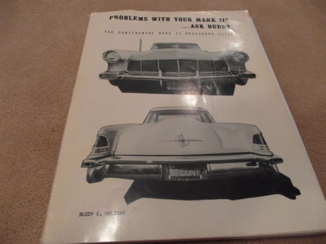 Problems with your Mark II, Ask Buddy, 1975 Publication. As an early advocate collector of Mark II's, Buddy became the source of valuable information for fixing problems with Mark II's. This publication has tips on how to fix problems, as well as sections covering the marketing of the car and technical information found in the body and technical manuals printed in 1956/7.