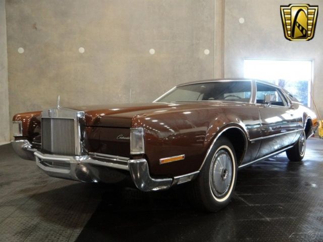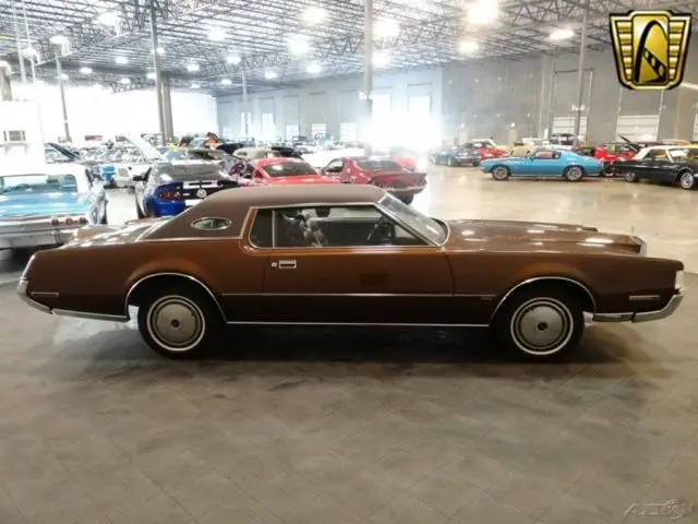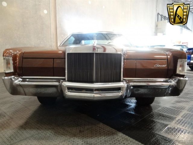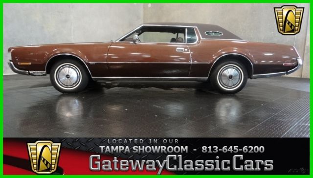 Up for sale in our Tampa showroom is a very nice 1972 Lincoln Continental Mark IV. The Continental Mark IV is a two-door personal luxury coupe that was sold by the Lincoln division of Ford Motor Company from 1972 to 1976 sharing the underpinnings and much of the roofline with the redesigned Ford Thunderbird for 1972. The Mark IV was given distinct body lines from the windows down and was distinguished by hidden headlights and the Continental spare tire trunk lid all given the car that added character that Lincoln is known for. The exterior color on this 72 Continental Mark IV is a very rich dark brown metallic that is complimented very nicely by the dark tobacco interior and vinyl top. This classic luxury cruiser continues with the rich brown interior onto the shag carpets that scream seventies vintage. The power plant for this 72 Continental Mark IV is the massive 460 cubic inch 5.7L Ford 385 V8 that is linked to a smooth shifting 3 speed C6 automatic transmission both sporting 75129 actual miles. This luxury cruiser has been very nicely preserved and maintained with less than 1800 miles per year which is well below the industry average of 12000 miles per year. This classic 72 Lincoln Continental Mark IV has been restored very nicely with a lot of attention to period correct upgrades and refreshments like new A/C brakes tires paint and pin stripe vinyl top fuel tank exhaust manifold hoses belts all the down to the ball joints and much more. Options include: A/C AM/FM radio cruise control power brakes power steering power driver and passenger seats power windows power door locks anti-lock brakes seat belts tilt steering wheel leather interior hub caps and white wall radial tires. This classic luxury cruiser is a numbers matching vehicle and is a very nice example of classic American luxury at its finest and can be yours with one simple phone call or email. To see more HD pictures and HD video of this 1972 Lincoln Continental Mark IV please visit GatewayClassicCars.com. For more information or to book an appointment to come and see this beauty in person please call the Tampa showroom at (813)645-6200 or email us directly at Tampa@GatewayClassicCars.com.