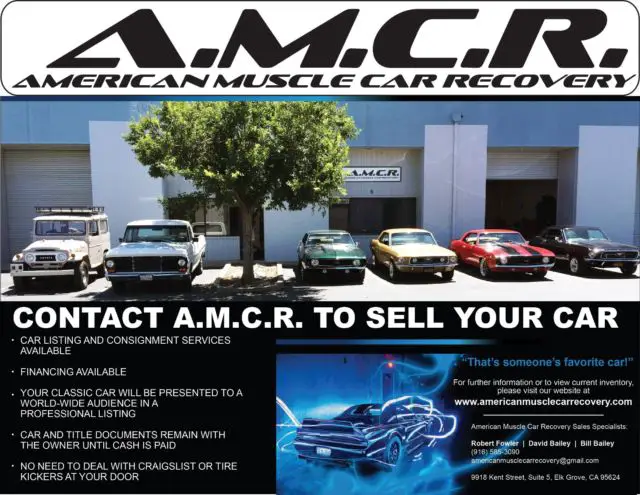Address: 9918 Kent Street #5 Elk Grove, CA. 95624 U.S.A. Phone: (916) 585-3090 Email: Americanmusclecarrecovery@gmail.com Just3 guys trying to save our Nation's muscle car and classic car heritage. | |||||||||||||||||||||||||||||||||||||||||||||||