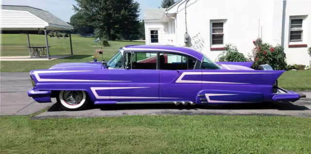 Fins 8” longer. Custom cruiser skirts; door scoops; homemade continental kit, with stainless steel deck; homemade wheel spinners.