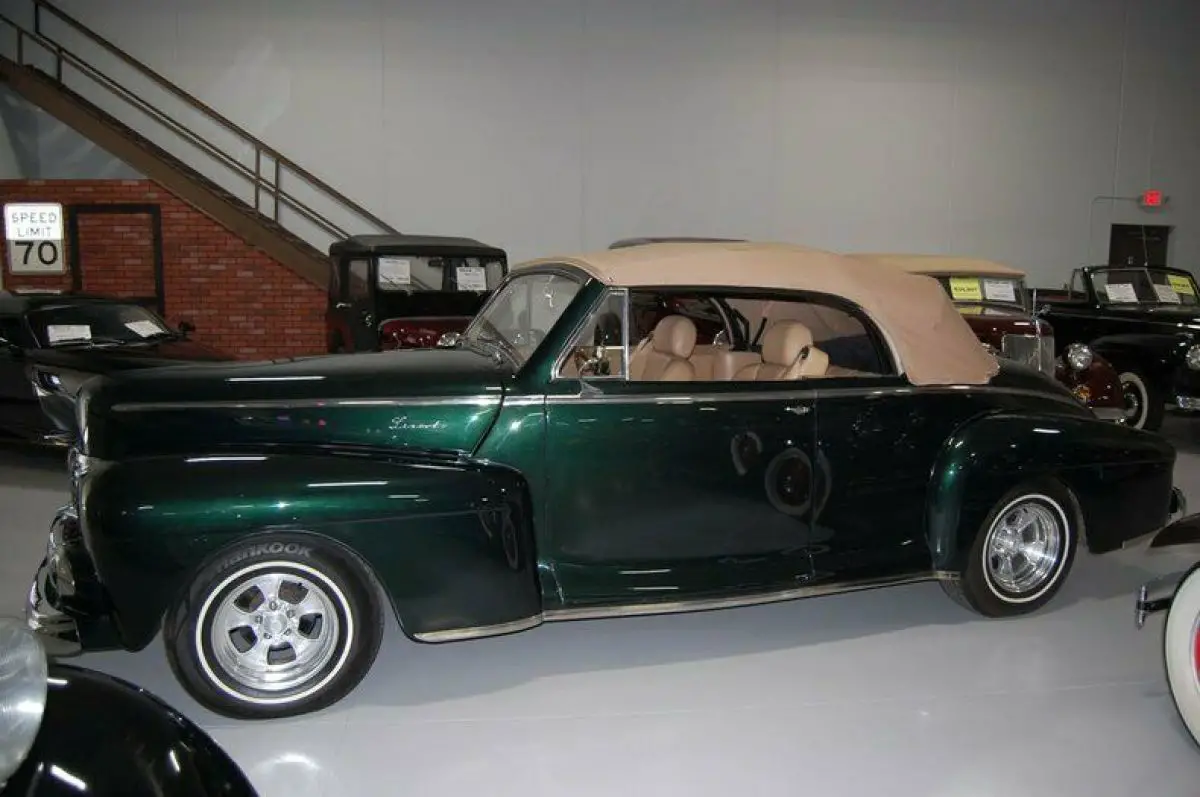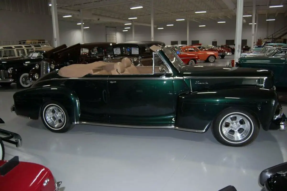 The first Post War Lincolns were truly special cars with unique grills and distinctive styling which were the norm for 1946. This all steel body Lincoln Convertible Street Rod has a few performance upgrades, such as a modified Ford 302 engine and a late model automatic transmission, which gives it plenty of power. Aluminum American Racing rims on radials makes for a smooth ride. Power steering and power brakes add to the creature comforts we all desire, as well as the air conditioning. Custom interior, bucket seats, and door panels adds to the comfortable cruising experience. Dark Green Metallic paint glows in the sunshine and the crisp chrome really adds the finishing touch. Nicely detailed trunk comes with a spare! Drive around the lake with the power assist top down or take it to your next car show. This 1946 Lincoln Convertible Streetrod is a classic cruiser with all the modern day amenities.