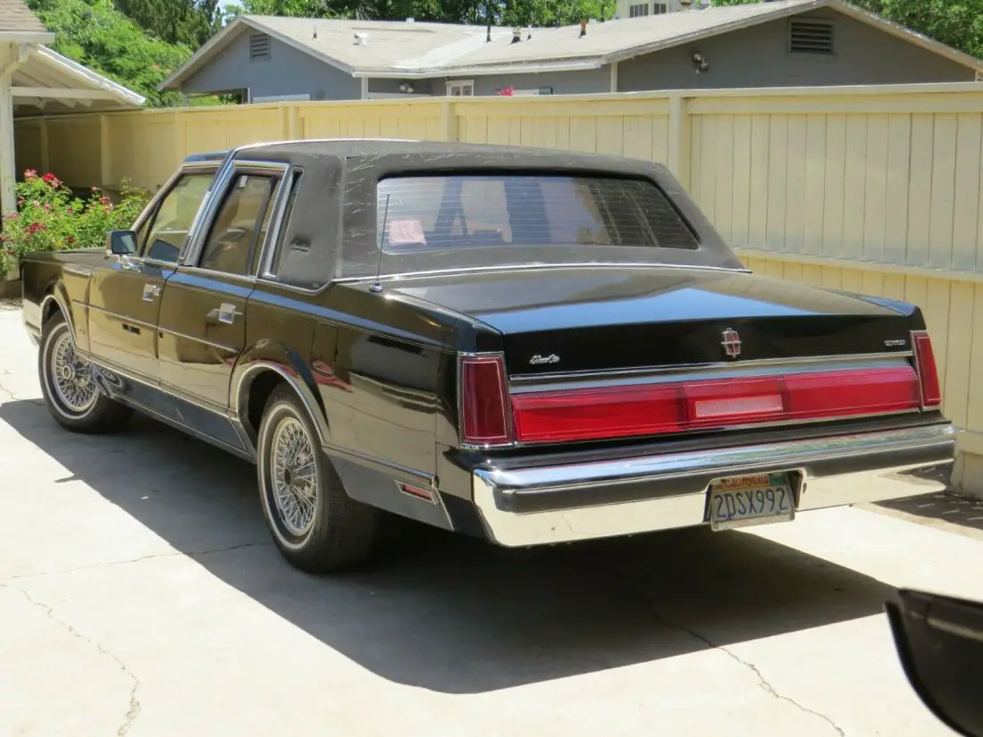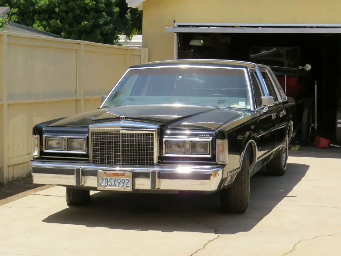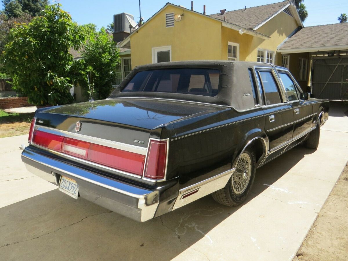 Good running driving California car with no rust. Low miles 04733.5. Black with blue velour interior. Everything works. Beautiful original condition. Has keypad entry. Trunk pull down works, Power steering brakes windows, antenna, locks, seats. Tilt adjustable steering wheel. AmFm cassette Lincoln premium sound. Chrome side panels, Hood ornament, owners manual. Gorgeus straight body beautiful like new condition inside and out, Top of the line Classic. What I see is the vinyl top is showing wear, the springs in the hood need replacing, trunk key missing, scuff on drivers door panel, tires are weather checked, couple cracks on the dash. A Future collectible.
