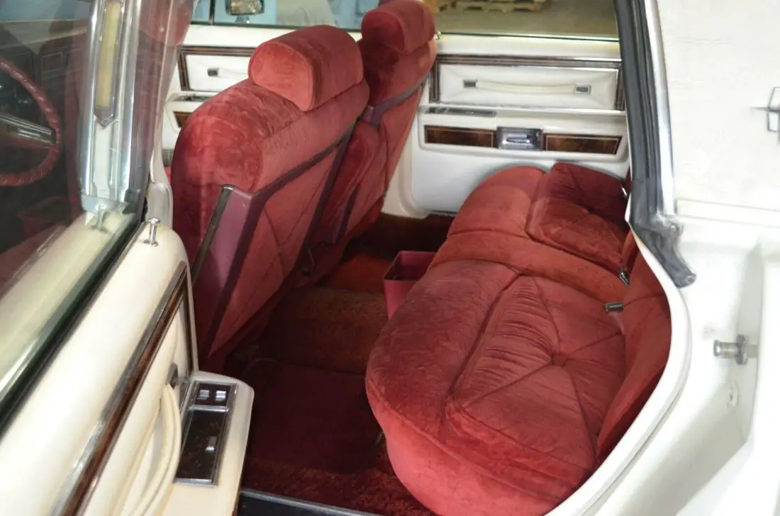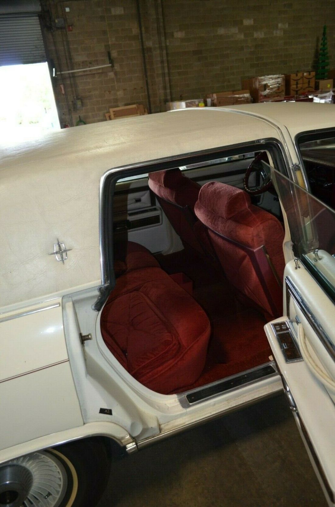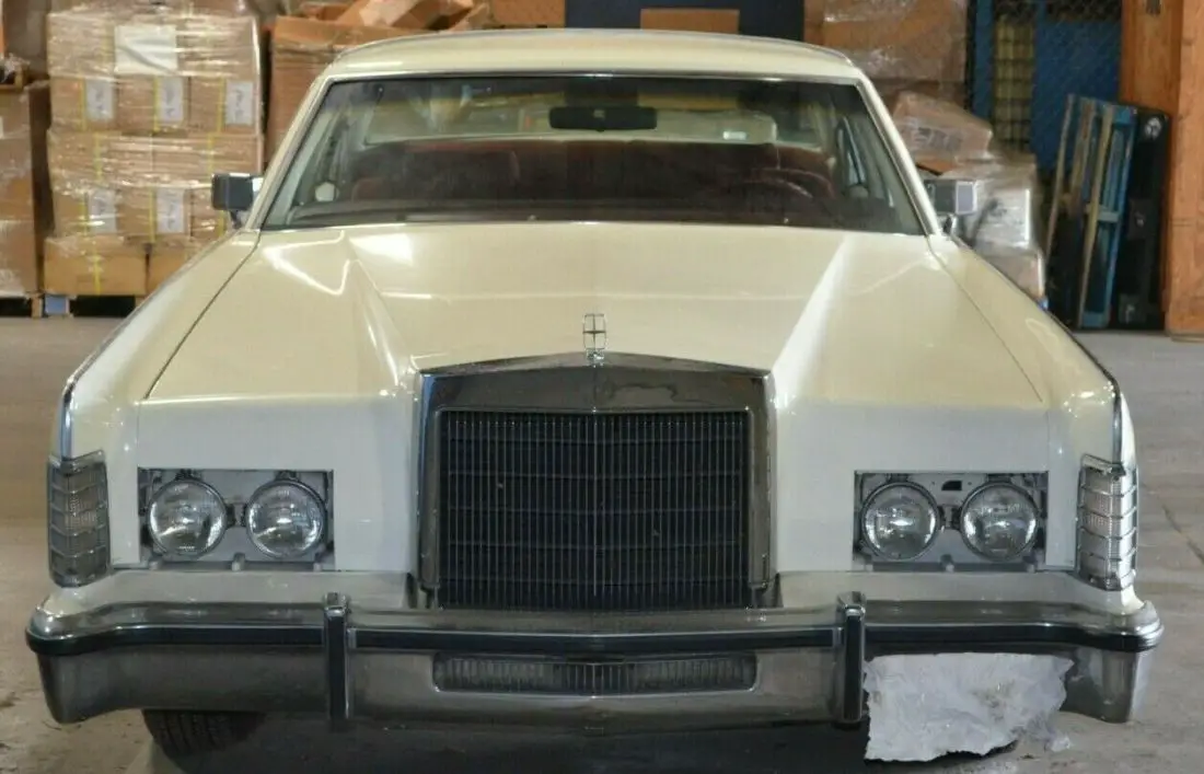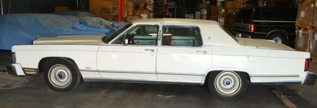 Garage kept 1979 Lincoln Town Car with White Exterior and Luxury Red Cloth Interior, 400 cu. in. V8 Engine with dual exhausts, 750 CFM Holley Vacuum Assisted Carburetor, Mallory Dual Point ignition and coil. This vehicle is maintained to be true to the original, and it has been professionally maintained for 40+ years.