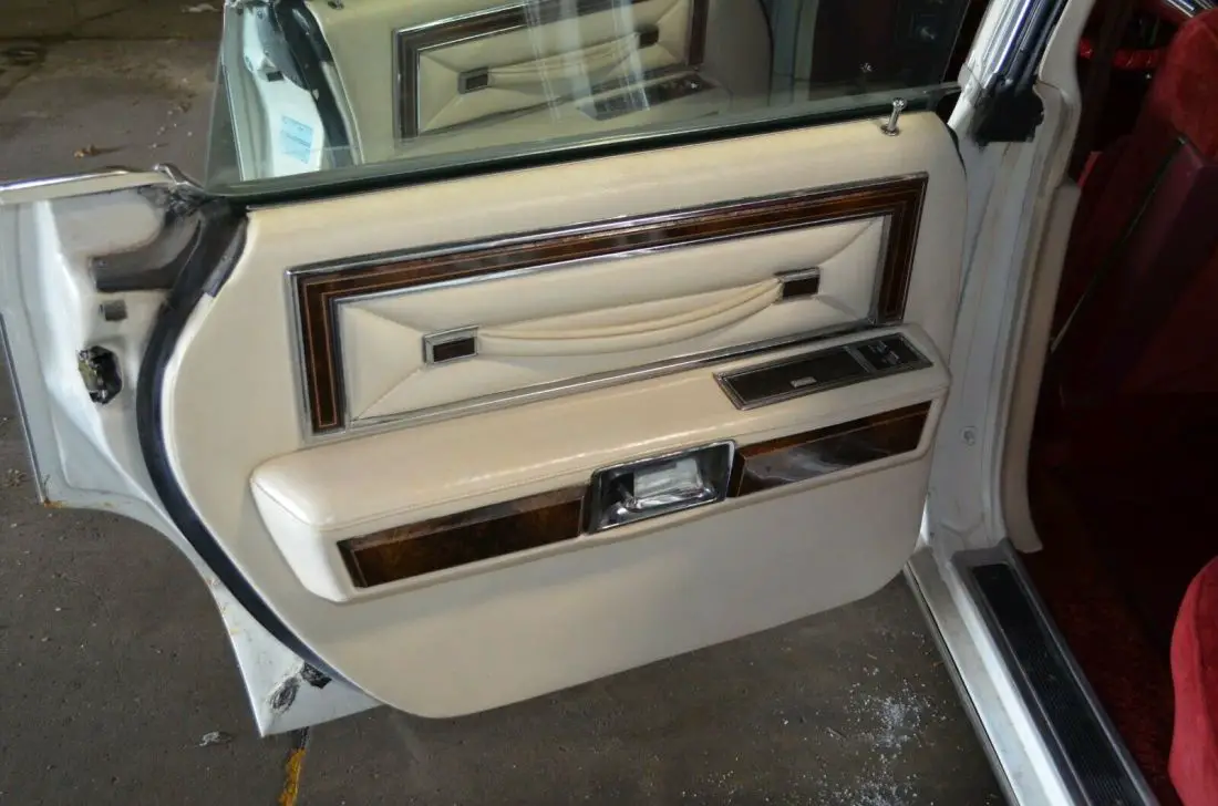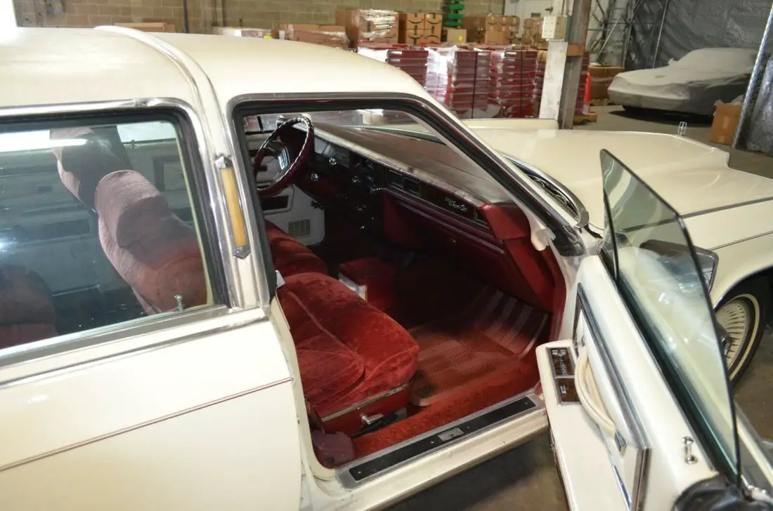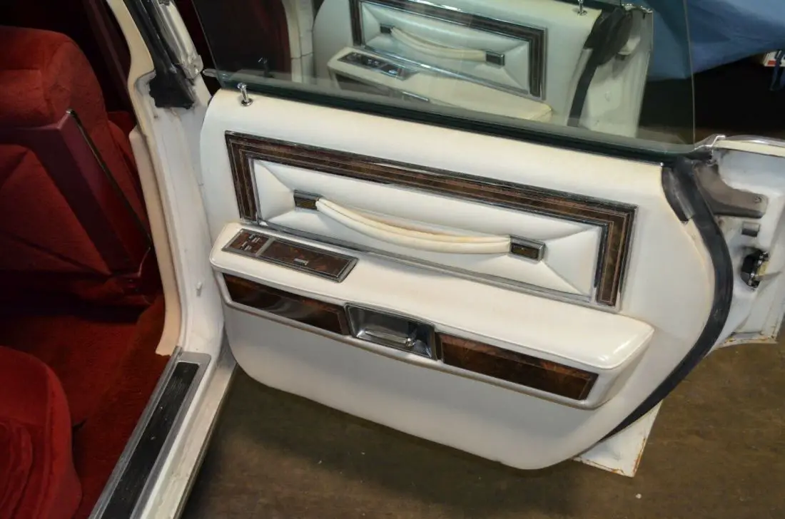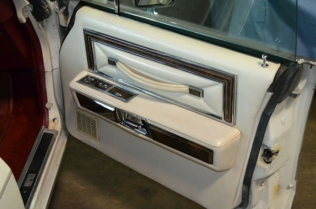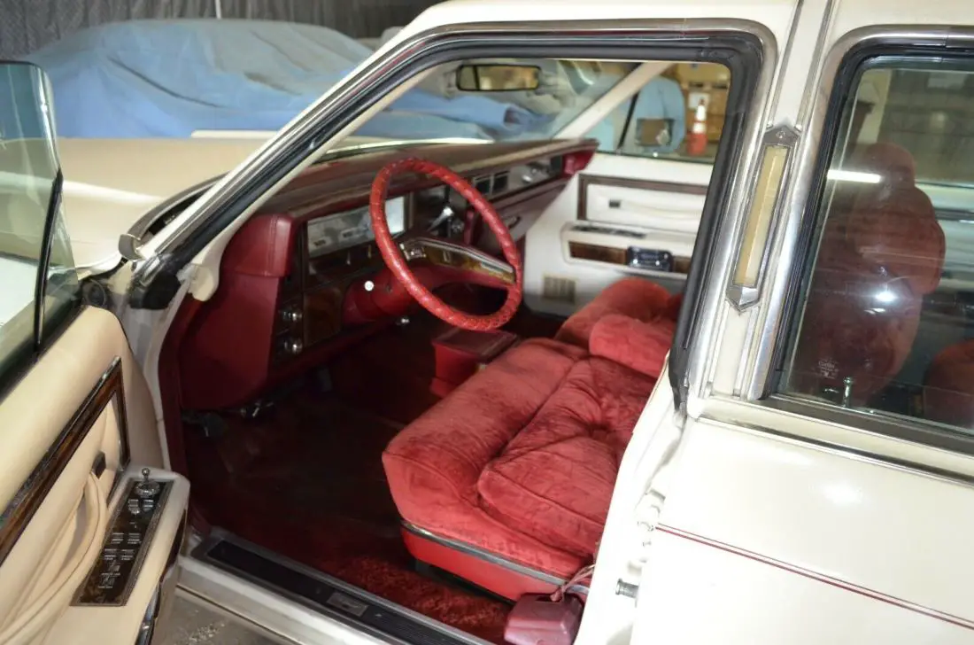 Garage kept 1979 Lincoln Town Car with White Exterior and Luxury Red Cloth Interior, 400 cu. in. V8 Engine with dual exhausts, 750 CFM Holley Vacuum Assisted Carburetor, Mallory Dual Point ignition and coil. This vehicle is maintained to be true to the original, and it has been professionally maintained for 40+ years.