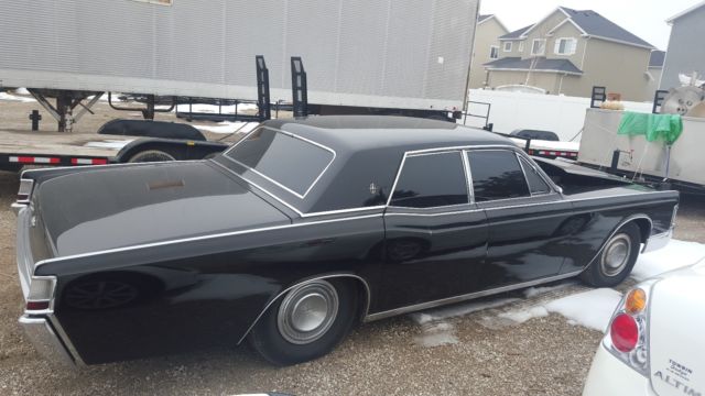 This is a 1969 Lincoln Continental which is the last year of the suicide doors. It was a little old couple that owned it for the first 40 years of its life. The second owner then bought it and shaved the door handles and put poppers on it. He only owned it a couple years and then sold it to me. It was going to be a project for my son and I but times have gotten tough and it needs to go. The car is super straight and nice with all the trim pieces and molding. It just needs the paint redone since it was a lead paint and has cracked with age, but the car has no bondo or any body filler at all. The interior is in great condition besides the drivers seat which will need to be recovered. The windows and everything work as well but the switches in the drivers door could beresolder. The engine and transmission have recently beengone through and are in perfect condition. I daily drove the car on trips and every day needs for over a year tell about a month ago when I decided to get something better on gas mileage. If you have any questions or would like to see more pictures please email me at kyle67camaro@gmail.com call or text me at 801-726-0771 Thank you