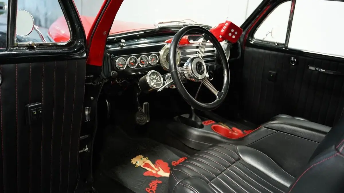 Vehicle Original VIN : H97199• Chevrolet 350 V8 Engine • TH350 Automatic Transmission • Ford 9-inch Rear End with 3.23 Gears • Edelbrock Carburetor • Headers • HEI Electronic Ignition • Aluminum Radiator with Electric Fan • Power Disc Brakes • Polished Alternator • Black Paint with Red Accents • Custom Butterfly Grille • Chrome Trim and Bezels • Side Exit Exhaust • 15-inch Wheels in 215/70R15 Tires • '46 Lincoln Doors • Black Interior, Red Stitching with Custom Bucket Seats • Center Console • Auto Meter Auxiliary Gauges • Lokar Shifter • Power Steering • Air Conditioning • Recent Service Records • Custom Build Documentation