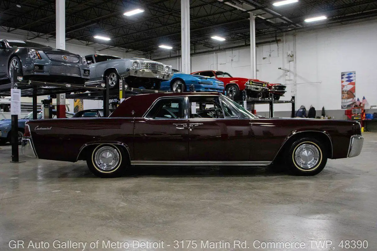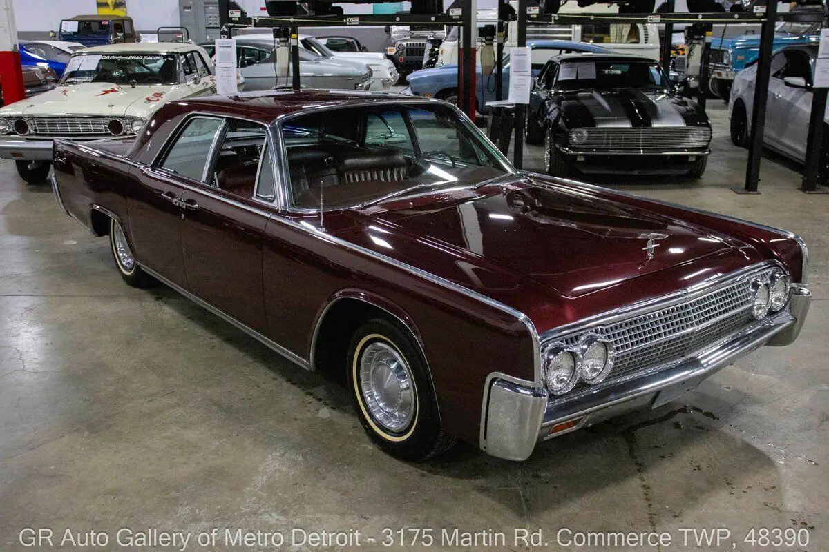 Vehicle Original VIN : 3Y82N427184• This vehicle is located at our Metro Detroit facility - 3175 Martin Rd, Commerce Twp, MI 48390 • GR Auto Gallery is excited to offer this highly original 1963 Lincoln Continental for your consideration. This stunning classic features a striking Burgundy Frost exterior complemented by a luxurious red leather interior. Under the hood, you will find a 430 cubic inch V8 engine paired with a Twin Range Turbo Drive automatic transmission, delivering both performance and elegance. This Continental is believed to be all original and completely stock, showcasing its timeless charm. Recent upgrades include a fresh rebuild on the alternator and radiator in 2024, as well as recent fluid changes of coolant, oil, and power steering fluid as of 2025. Additional features include powered windows and vented power windows, hydraulic power windshield wipers, a stainless steel exhaust system, power steering, an AM/FM stereo, and the original owner's manual and warranty card, among many other amenities. Drive this one out of our showroom or have us assist with shipping it to you anywhere in the United States! Don't hesitate to call us with any questions or for more information. The 1963 Lincoln Continental is often regarded as one of the most iconic American luxury cars of its era, known for its elegant design and advanced engineering. Its production marked a significant milestone for Lincoln, establishing itself as a premier luxury brand. The Continental was introduced in 1961, featuring a distinctive design with its unique rear suicide doors and an emphasis on spaciousness and comfort. The 1963 model year saw improvements in both performance and luxury, solidifying the Continental's place in automotive history as a symbol of American luxury and style. To see over 80 photos of this car, including the undercarriage, please visit our website