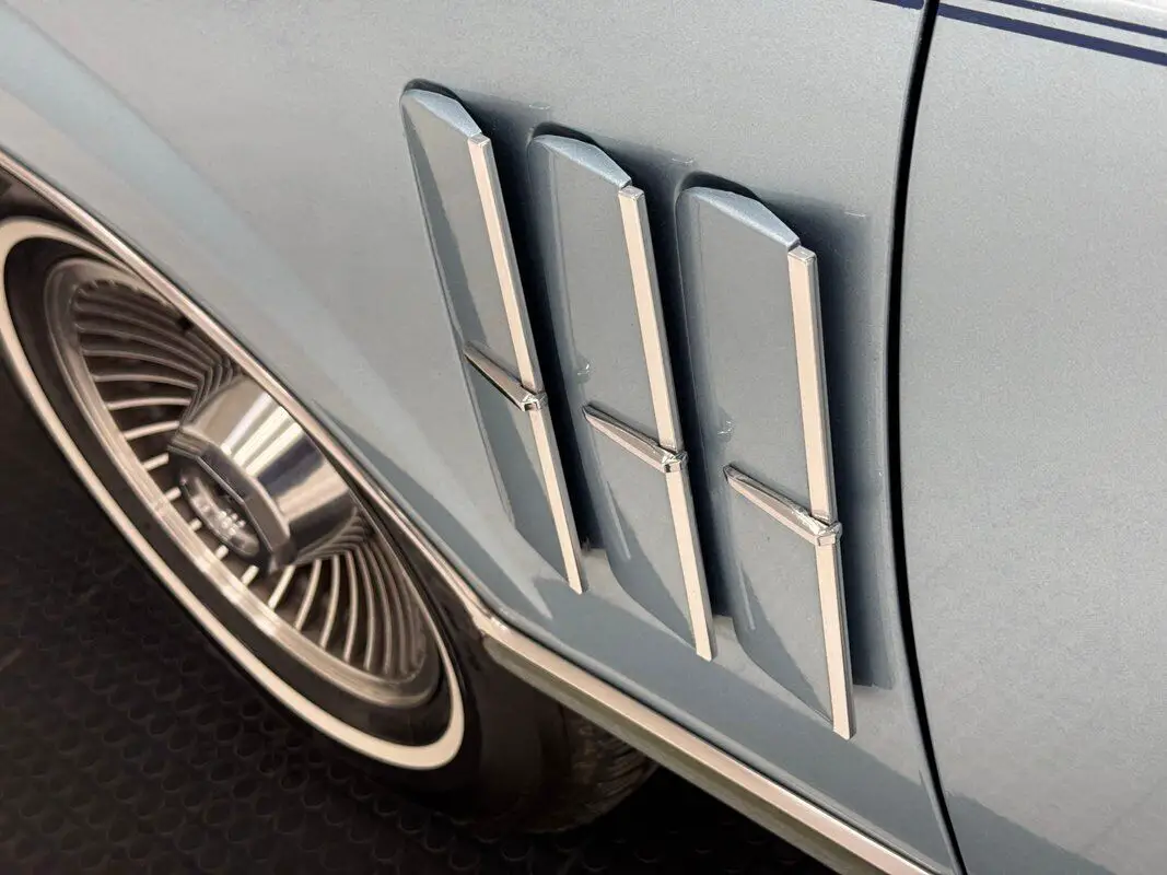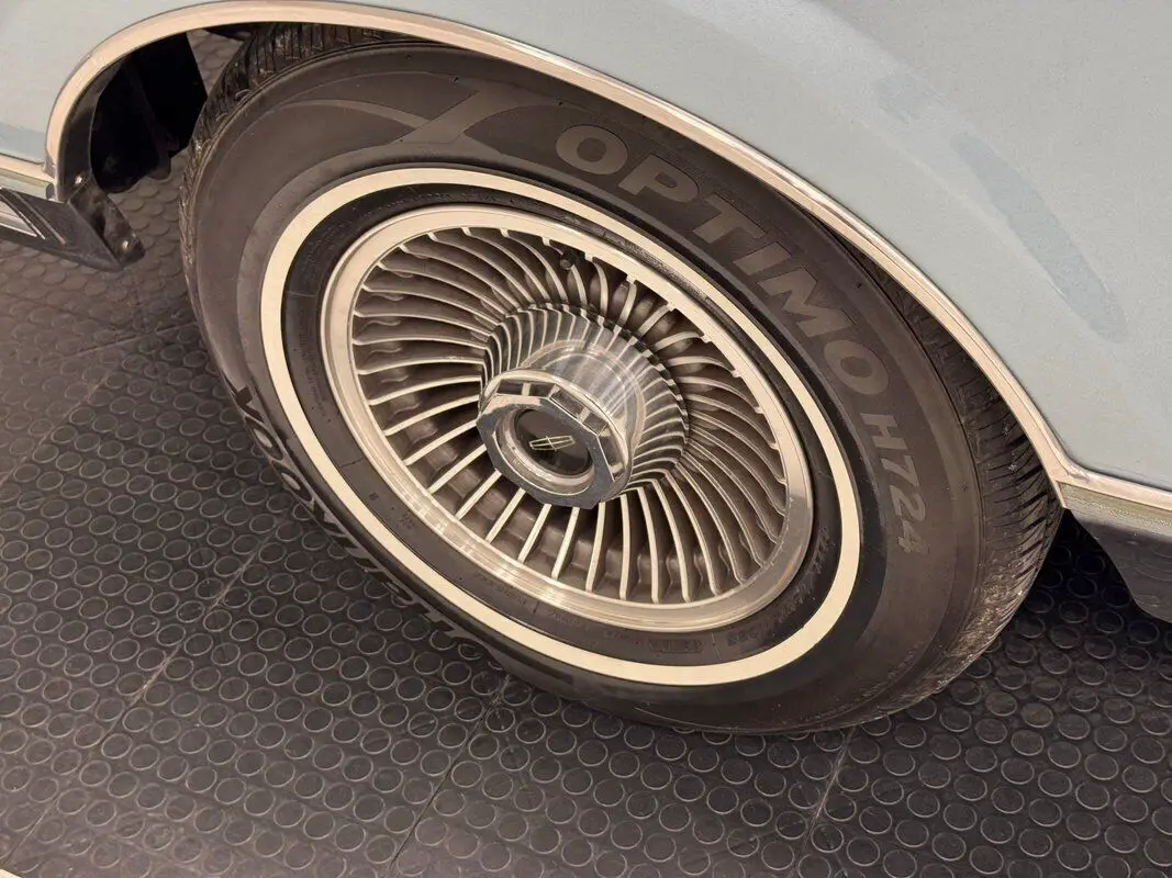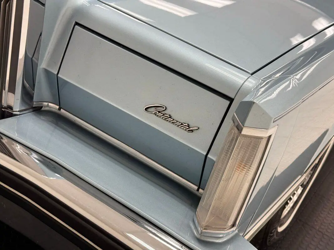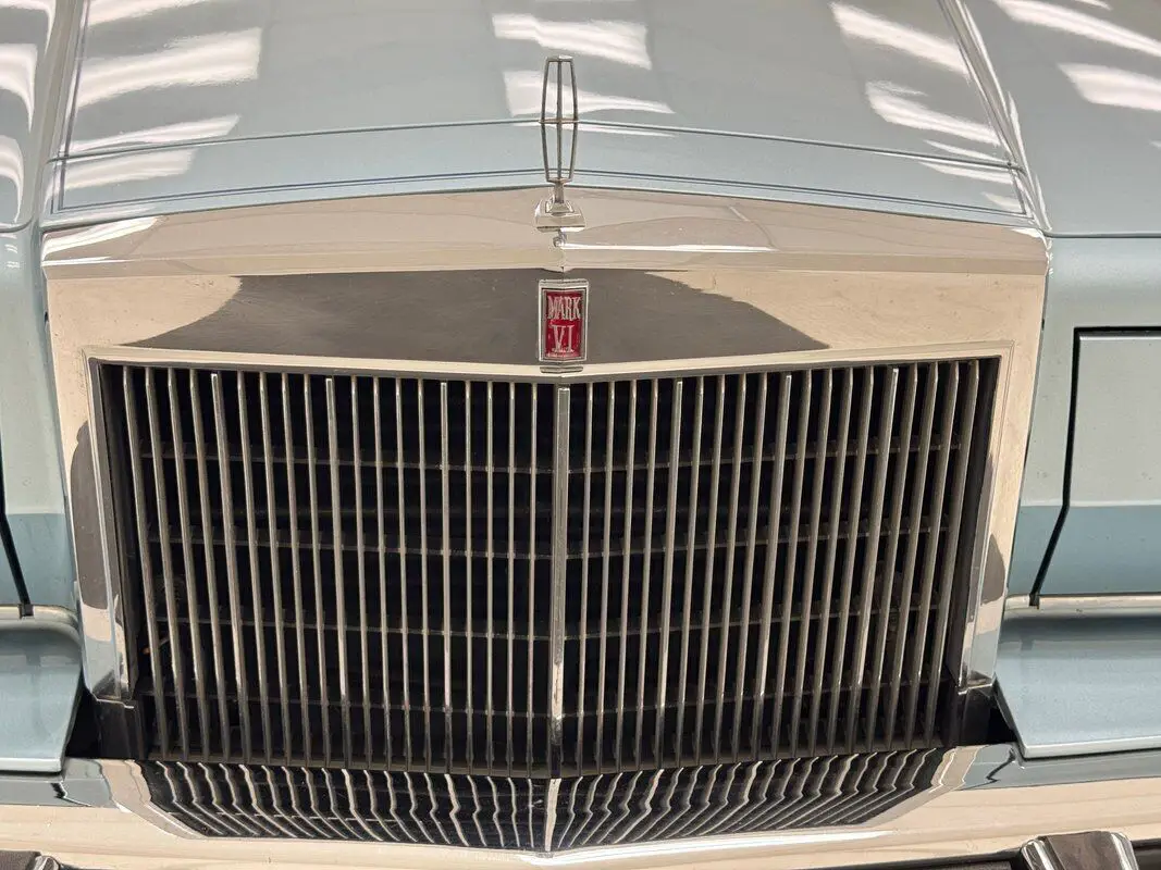 This stately ride begins with a coat of Diamond Blue Metallic paint, topped with a dark blue vinyl half roof accentuated by oval porthole windows in wide C-pillars. Other stunning features of the Mark VI include triple vent gills on the front fenders, an opera light on the B-pillars, and covered headlights that flank a Rolls Royce-like grille. Regal lines continue on the back where a faux Continental kit shapes the decklid which is bookended with tasteful, vertical tail lights and mid panel reflectors. The shoulder line and profile of the car suggest sharp right angles that do not veer from boxiness, while the slightly raised hood center exudes wind resisting grace. The 15-inch turbine wheels were standard as Lincoln was quickly moving away from steel wheels with hubcaps. The exterior is spectacular, and we could not find any glaring imperfections.