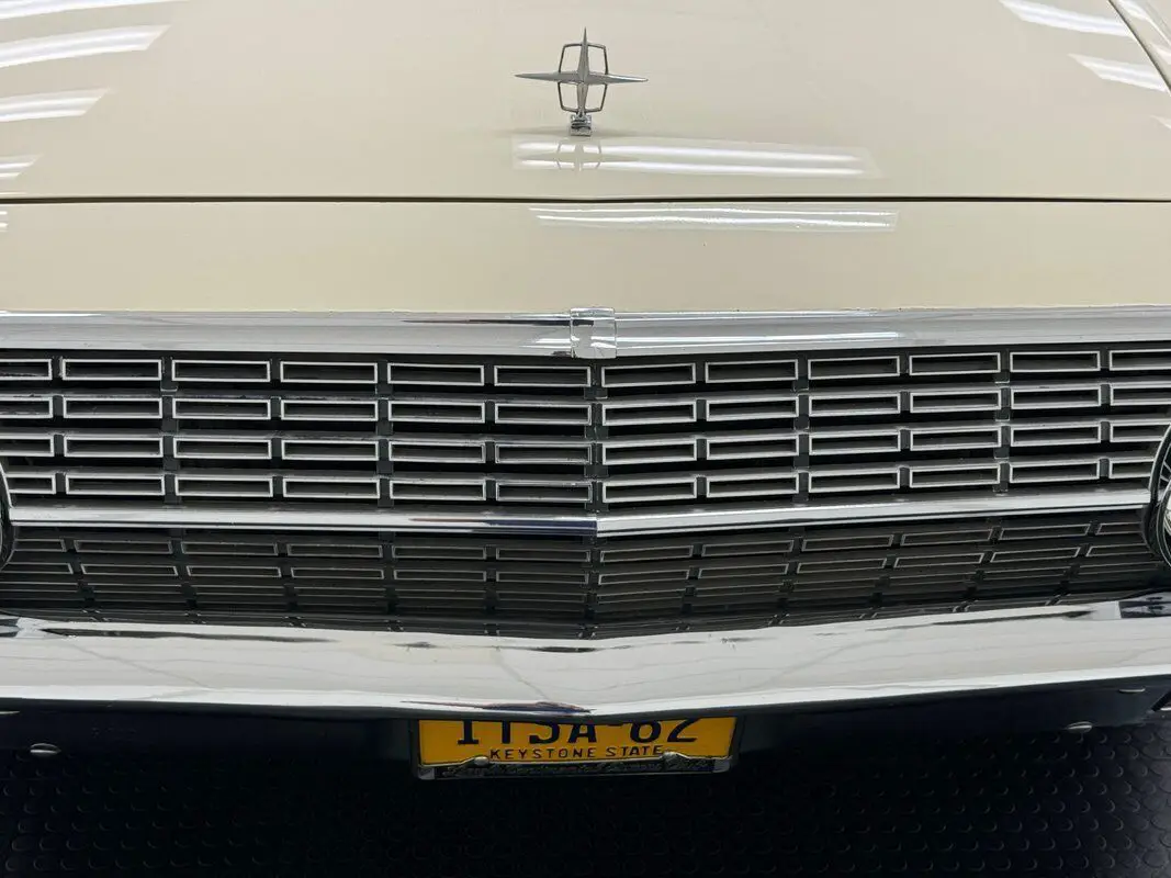 An astounding twenty colors were offered in 1962, and today's car is bathed in Sultana White which covers the big body panels of this luxury ride, a notably square car with right angles instead of curves. Plenty of straight steel grows ever increasingly more beautiful as you view a horizontal ribbed grille, dual headlights and a lower massive chrome bumper adorning the corner edges of the front of the car. The rear quarters of the white car sport scripted Continental chrome badging, polished wheel opening trim, and a polished rocker panel. A fantastic top trim piece runs along the top edge of the fender and continues stem to stern, running through the doors and bumping up slightly to the trunk and rear quarter edge, but it is the overall lack of vents, fins, and trim that make these cars unique. A slightly curved windshield trimmed by a wide polished frame that runs around the entire stretch of glass. 14-inch wheels wear white lined tires and correct hubcaps that are in excellent condition and add to the luxurious intent. The white canvas top and its plastic window are in great shape and since white tops often bear the brunt of usage and age, we're pleased with the presentation of this one. Imperfections include a corner metal trim piece that is pitted, large bubbles on the decklid, and some bubbling down low.