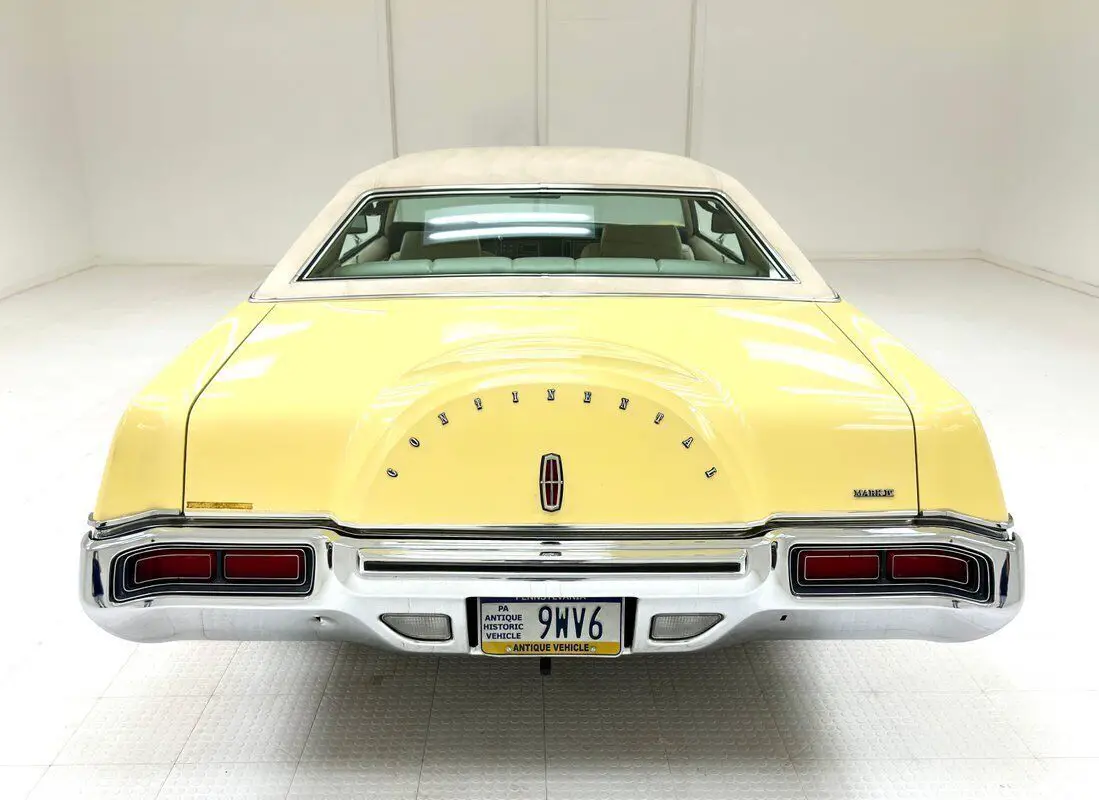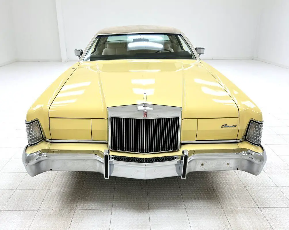 1973 Lincoln Continental Mark IV 2 Door Hardtop For consignment, a 1973 Lincoln Continental Mark IV 2 door hardtop with only four previous owners and they all kept this car garage kept, and it now serves as a rolling time capsule of a time when the Continental was a top tier American luxury car. To quench your luxury thirst this car comes to our Hallowed Halls with a Deluxe Marti Report, the build sheet, and the window sticker. Exterior Approaching the car from the side, the astounding features include a long hood, with body creases to match the shape of the Rolls style grille, the low roofline, the amazing opera window, and the faux Continental kid bulge on the trunk lid. The single stage Yellow paint and wide white wall tires conjure up memories of Huggy Bear and Rooster from 70's detective shows, however neither of them drove a Lincoln! There is a sleekness to this car and when it says, "I've arrived" it means the hood got there an hour before the rest of the car. The hidden headlights add to the mystique and that front bumper does extend to absorb crashes, however the chrome here is in great shape and connects to a polished rocker panel trim that connects, visually, with the rear bumper, also in fine condition. At first, the tail lights seem like simple affairs, until you realize they are contoured with the bumper in which they are embedded, and curve around to join the outermost protrusions. An arrow headed double pinstripe runs parallel to the side body molding, both common features of the era. The white vinyl top shows some discoloration and bubbling under numerous areas. Other imperfections include scuffs on one of the wheel covers and another on a bumper. Interior Luxurious door panels are appointed with white leather inserts, woodgrain applique, and metallic switches. There is plenty of wear on these doors from minor discoloration to tears in the door pull strap covering, to some separation of the plastic panels. White leather covers the front bucket seats in a Chesterfield style design where buttons form pillowy squares. There's compression on the driver's seat, some patina creases, and some discoloration. The rear seat squares remain full looking, and the seams could benefit from some deep cleaning. As is, the luxury in back rivals a limousine and affords passengers some privacy with just a small opera window for exposure. The 3 spoke steering wheel leads to a dash panel completely covered with woodgrain applique and where every feature is square and housing dials with needles sweeping the square. If you've ever wondered how to get a circle peg into a square hole, here's your answer. Burlwood applique is used as a framing for the A/C control panel, AM/FM/Cassette, and other switches and it's all in very good condition mounted to a richly colored plastic dash. Plush black carpet covers the floor in "toes deep" luxury and the white headliner above is in great shape and house shoulder belts clipped to the ceiling. Drivetrain Relatively clean just above driver quality condition sits the big 460ci V8 with a 4-barrel carburetor and rated at 208 horsepower. A C6 3-speed automatic transmission is behind it transferring power the Ford 9" in back with 2.75 gears. Power brakes are supplied in the disc front, drum rear configuration. Other than some dust and some surface rust, the engine appears very stock. Undercarriage With the exception of some oil near the oil pan and some red drops on the transmission pan, the underside is relatively clean and replete with surface rust in the usual areas including the exhaust, driveshaft, wheel components, and inner bumper and body panels. We observed no invasive rust. The single exhaust flows through a stock style muffler and then exits unseen behind the bumper. Coil springs in front and a 4 link with coil springs make up the suspension configuration. Drive-Ability Floaty, and that's what Lincoln was going for. A soft ride that absorbs road imperfections through suspension, 75 series tires, and thick padded seats. Sure, there's some body roll on turns but this is a luxury cruiser, not a slalom racer. Acceleration is good thanks to the 460 and braking is adequate for this 5,064 pound Lincoln. We're happy to report that all functions worked on the car! While Classic Auto Mall represents that these functions were working at the time of our test drive, we cannot guarantee these functions will be working at the time of your purchase. You don't have to be a street savvy police informant to drive one of these, certainly not in 2024. Now you just have to be someone interested in a once common, now a classic luxury skate. Lincoln enthusiasts are an active bunch, and these are legendary cars now that European luxury cars have cornered the market on high end opulence. When the going gets narrow, keep your eye on the sparrow, and drop a dime on this one. 3Y89A873824 3-1973 Y-Wixom, MI Assy Plant 89-Mark IV Hardtop A-460ci V8 4bbl 202hp 873824-Sequential Unit Number Classic Auto Mall is home to more than 1,000 classic and collectible vehicles for sale via consignment in a climate controlled 336,000-square foot showroom (that's more than 8 acres!). The largest single location consignment dealer of classic and collectible vehicles in the country is located in Morgantown, Pennsylvania, just 1-hour west of Philadelphia off Exit 298 of the I-76 Pennsylvania Turnpike. For more information visit or call us at 855-201-7026. Contact us anytime for more information or to come see the vehicle in person.