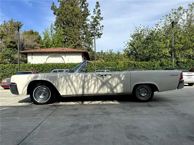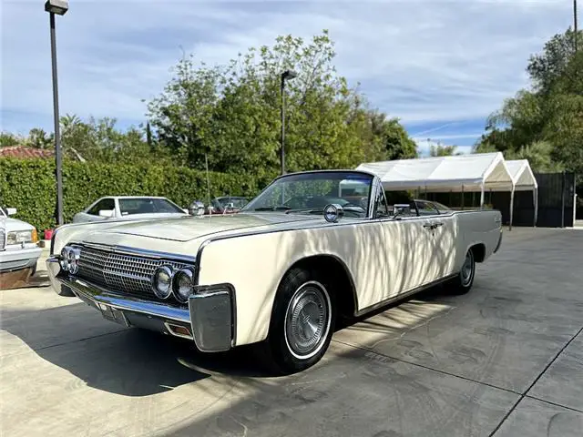 1963 Lincoln Continental convertible is a true classic that exudes elegance and style. This vehicle was designed with the driver in mind, offering a wide range of features that make it both comfortable and easy to drive. One of the standout features of this particular vehicle is its convertible top. Made from high-quality materials, the top can be easily lowered to allow for a truly immersive driving experience. Whether you're cruising down the highway or taking a leisurely drive through town, you'll feel the wind in your hair and enjoy the open road like never before. The exterior of the car is equally impressive. The beautiful white paint job is sleek and stylish, while the tan interior provides a warm and inviting atmosphere. The plush leather seats provide ample space for up to six passengers, and the elegant chrome accents on the dashboard add a touch of sophistication to the overall design. Under the hood, you'll find a powerful V8 engine that delivers plenty of power and torque. This engine is designed to provide a smooth ride, with responsive handling that makes it easy to navigate even the tightest turns. Additionally, the suspension system is finely tuned to provide a comfortable ride, ensuring that every trip in the vehicle is enjoyable. Overall,Absolutely! The 1963 Lincoln Continental convertible