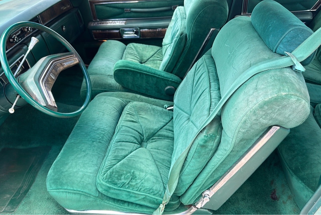 This 1977 Lincoln Continental Town Coupe is classic Lincoln. We bought this Lincoln off a family that had it for ages sitting in the back of their barn. So this one we can truly say was a barn find. (Gravel floor barn and was covered). After a bit of going through the car runs and drives great. The V8 is smooth and transmission shifts smoothly as well. It glides down the road all while being the same size as a moder pick up trucks. The interior is beautiful and all original the pillow top tufted velour seats are in amazing condition and so comfortable. The body is rust free and it’s a really pretty color combo.