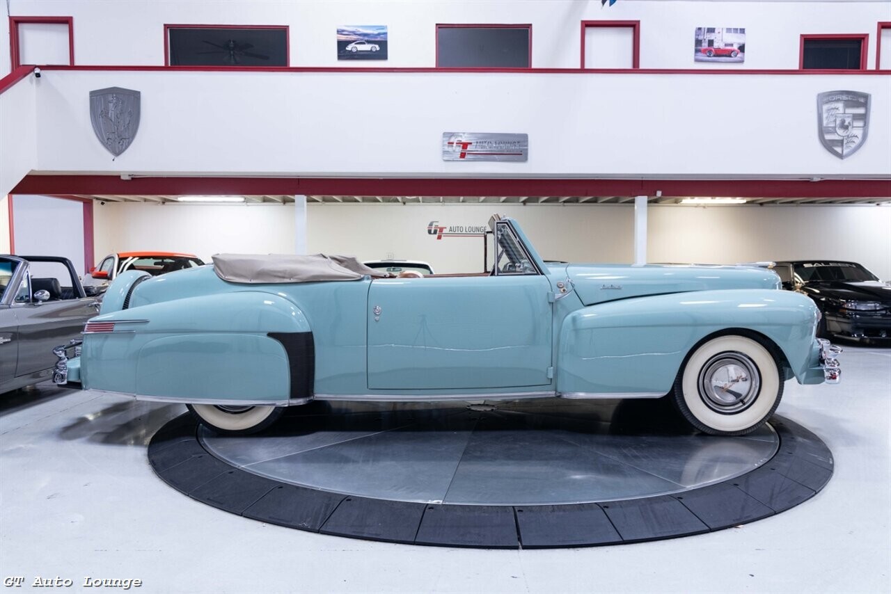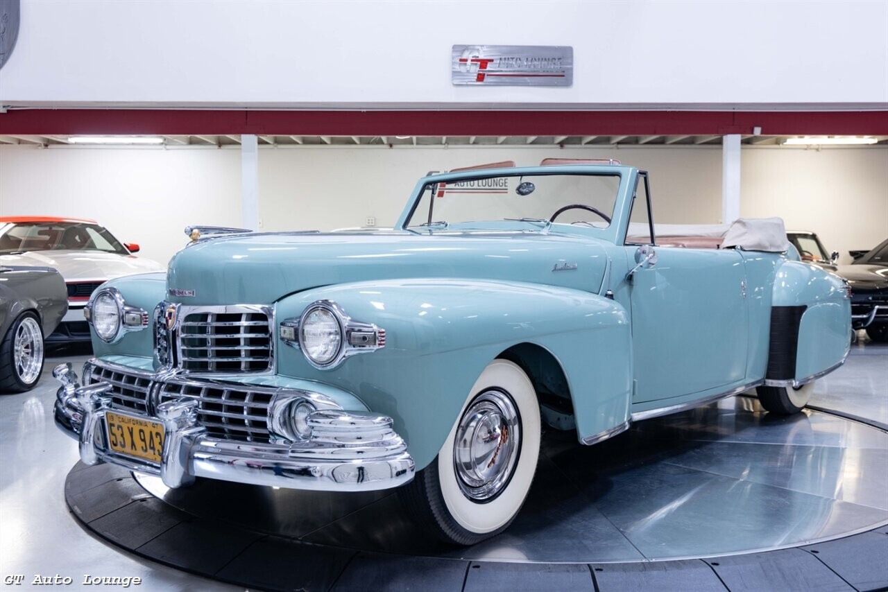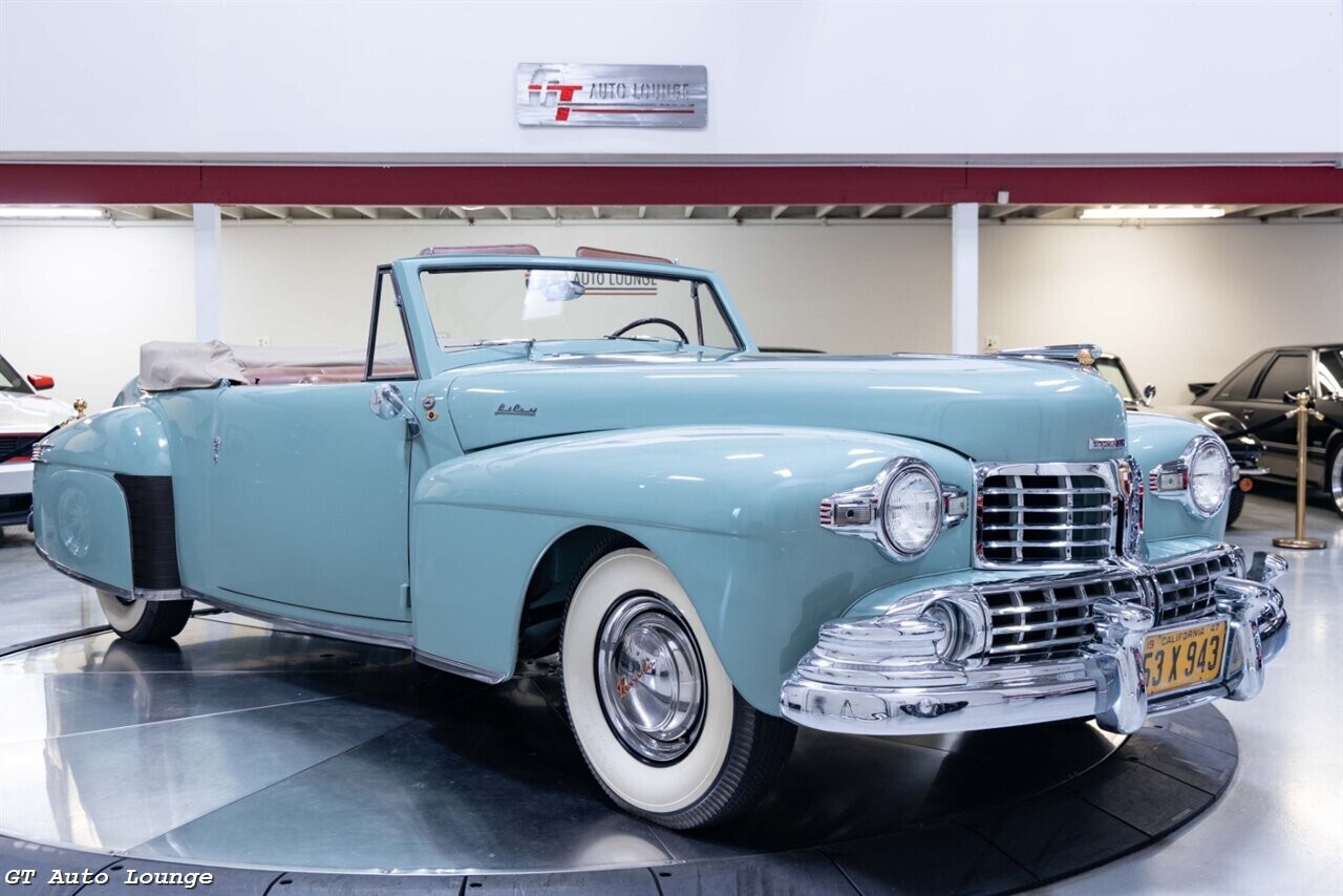 1948 Lincoln Continental Convertible in Light Blue w/ Tan Convertible Top over Saddle Interior. Equipped with a 292ci Flathead V12 mated to a 3 Speed Manual Transmission. Features include: Continental Kit, Power Convertible Top, Power Windows, In-Dash Clock, Fender Skirts, Rear Fender Stone Guards and more! This stunning Lincoln Continental Cabriolet is ready to be driven and enjoyed! For more information please call 916-387-9997.