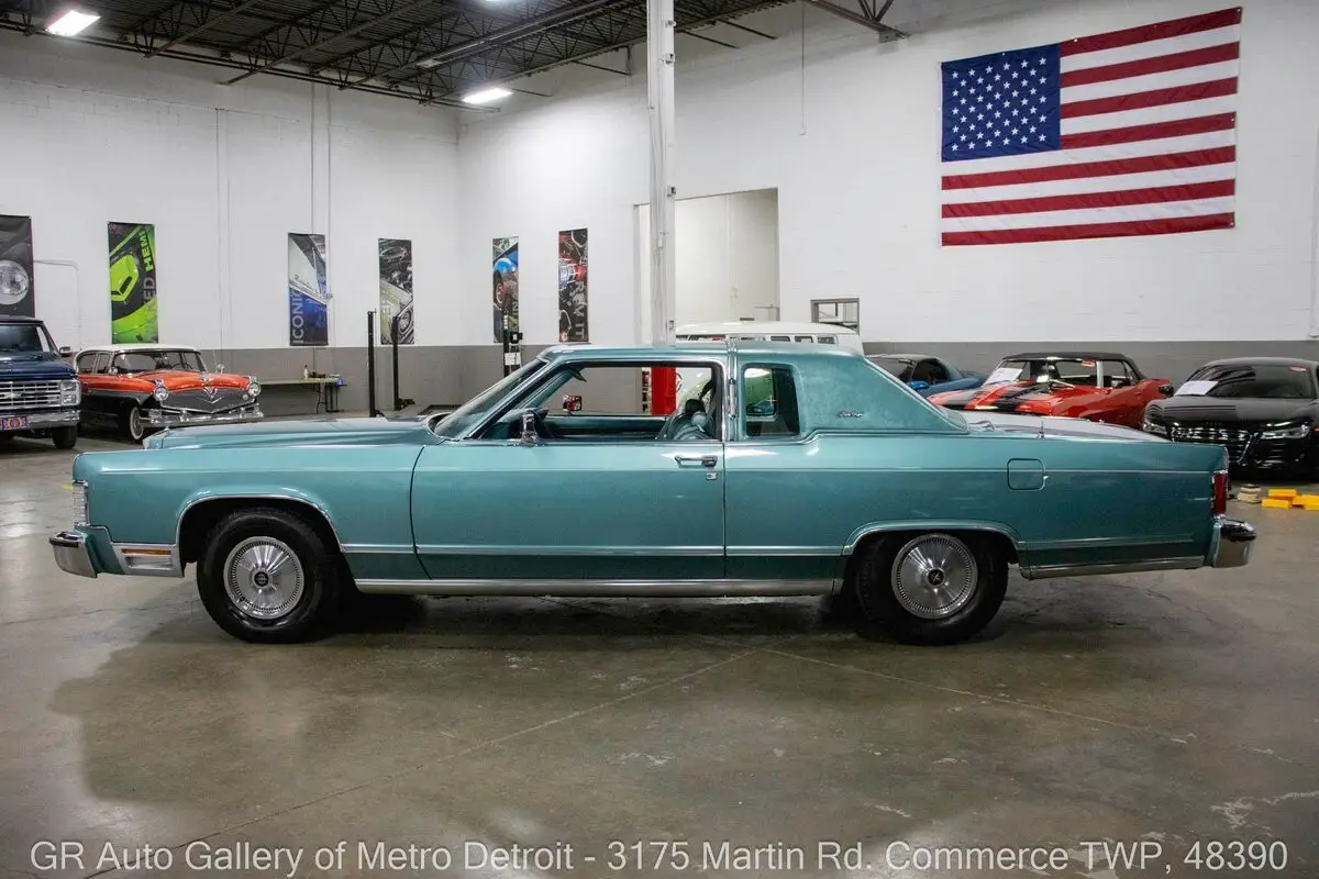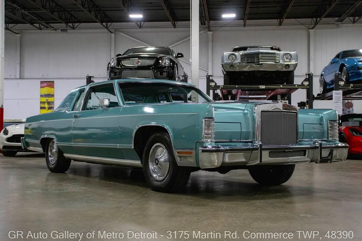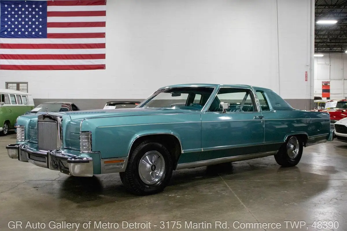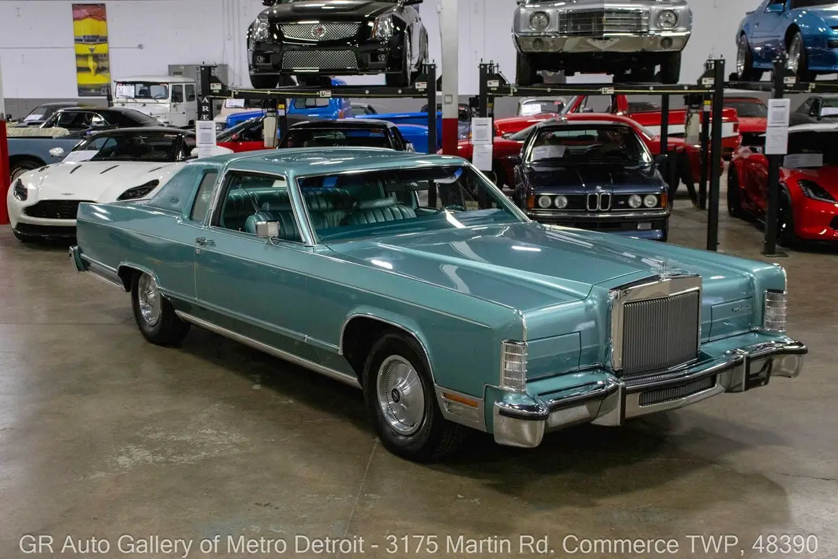 GR Auto Gallery is pleased to present this stunning 1979 Lincoln Continental Town Coupe for your consideration. Finished in Medium Turquoise Metallic over a matching Turquoise leather interior, this Continental exudes classic late-'70s luxury. It is powered by a smooth-running 400 cubic inch V8 engine paired with an automatic transmission. This example has been garage-kept and meticulously cared for and even comes with the original window sticker, numerous receipts and the original owner's manual. With recent maintenance, this Lincoln received a full tune-up, including new shock struts, fresh fuel, all new fluids, new belts, and hoses. Notable features include a vinyl turquoise top, vacuum-operated headlight covers, power windows, power door locks, power seating, functional heat and air conditioning, wood trim accents, intermittent wipers, Cartier clock, 8-track AM/FM stereo, power antenna, spacious trunk, chrome front and rear bumpers, and Michelin tires. Drive this one out of our showroom or have us assist with shipping it to you anywhere in the United States! Don't hesitate to call us with any questions or for more information.