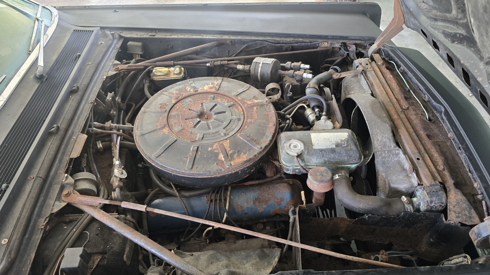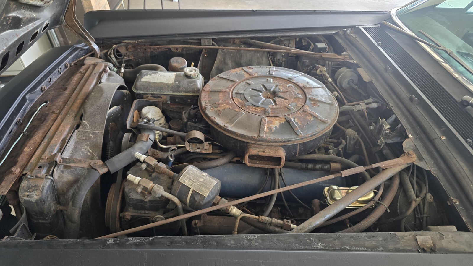 I actually drove this car home, but it has been sitting about 5 years. It is a complete project car. Assume nothing works and it will need everything. It rolls, steers, and stops for transporting. I have the seat frames. I think all the trim is there and in good shape. It is rusty and will need floor pans and other metal work. These cars are bringing good money when done, so it's worth saving. My wife was just diagnosed with cancer, so I'm selling all my projects. Feel free to ask any questions.