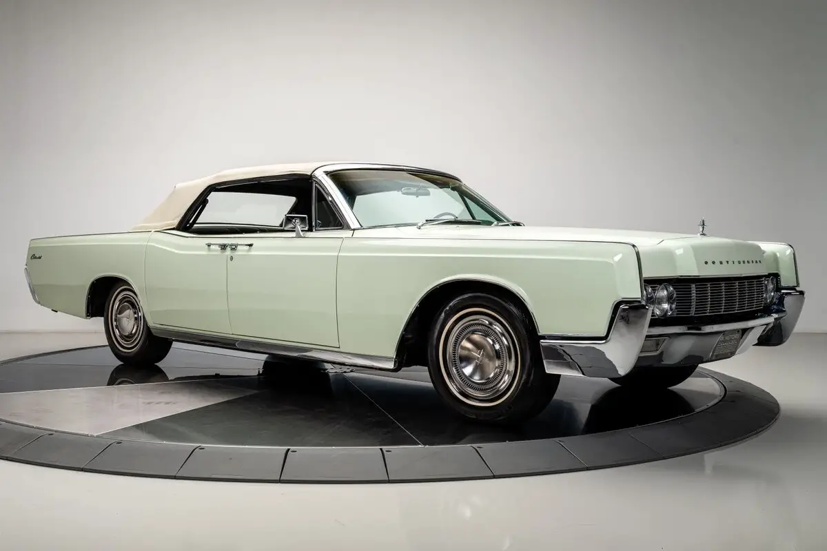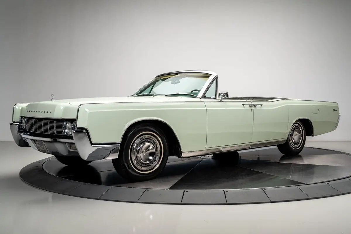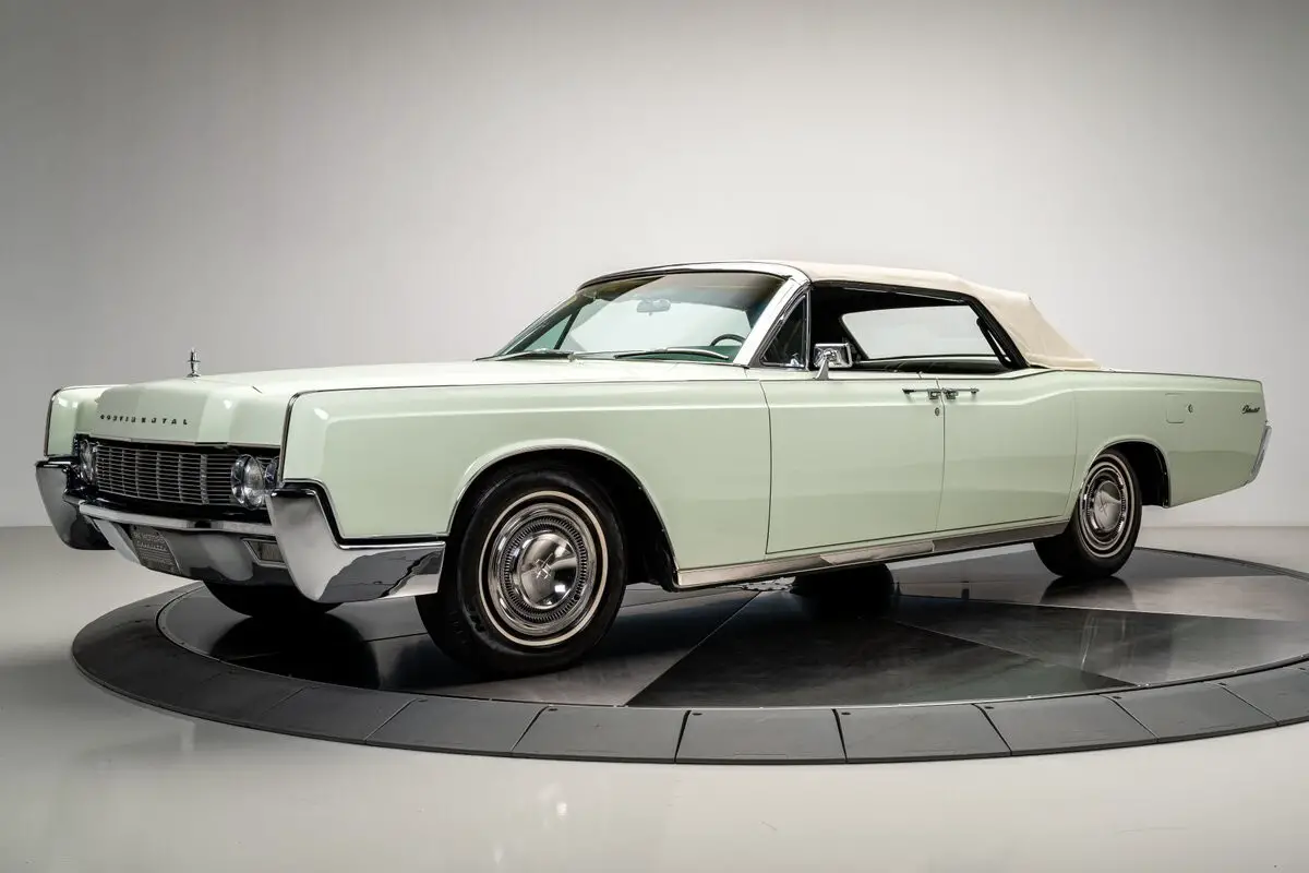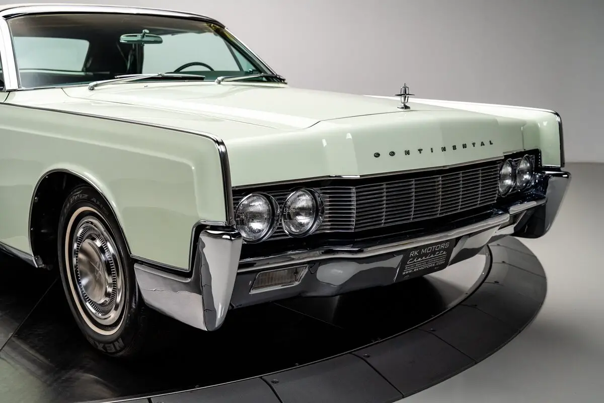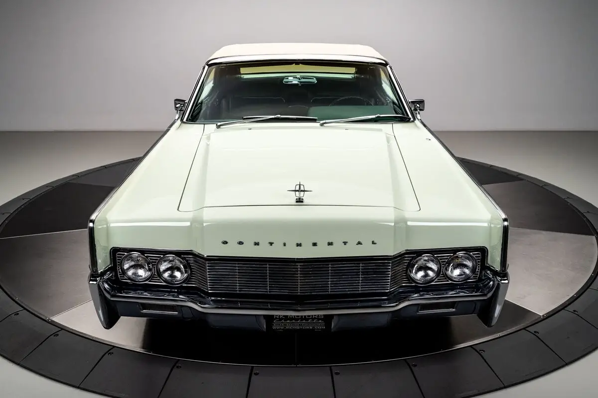 Purchased out of Colorado in 2004, this 1967 Lincoln Continental Convertible has remained with the same owner for over two decades and received a full restoration followed by additional updates by Lincoln Land Inc. of Clearwater, Florida. Refinished in its factory Cameo Green over Dark Ivy Gold leather, the car features a repainted body, refinished brightwork, and a new power-operated white convertible top with a dedicated hydraulic motor. Power comes from a rebuilt 462 cubic inch V8 paired with a C6 three-speed automatic transmission and 3.00 rear gearing. Fewer than 10,000 miles have been added since the engine was rebuilt, and upgrades include a 100-amp alternator, PerTronix ignition, stainless-steel exhaust, and a replacement starter. Power steering and power-assisted front disc brakes provide confident road manners, while the interior retains its correct color scheme with reupholstered seating, replacement carpeting, and functional amenities like air conditioning, power windows and locks, and a power-adjustable bench seat. A Bluetooth-capable Pioneer head unit is tucked in the glovebox and wired to Polk Audio speakers. With its iconic rear-hinged doors, pillarless design, and unmistakable road presence, this Continental combines vintage luxury with reliable drivability and remains a standout in any classic collection.
