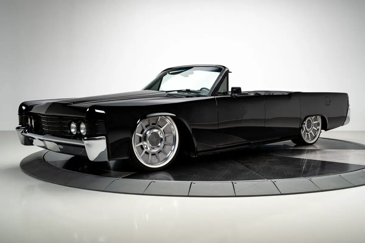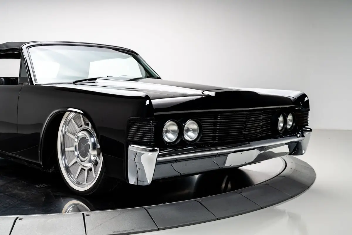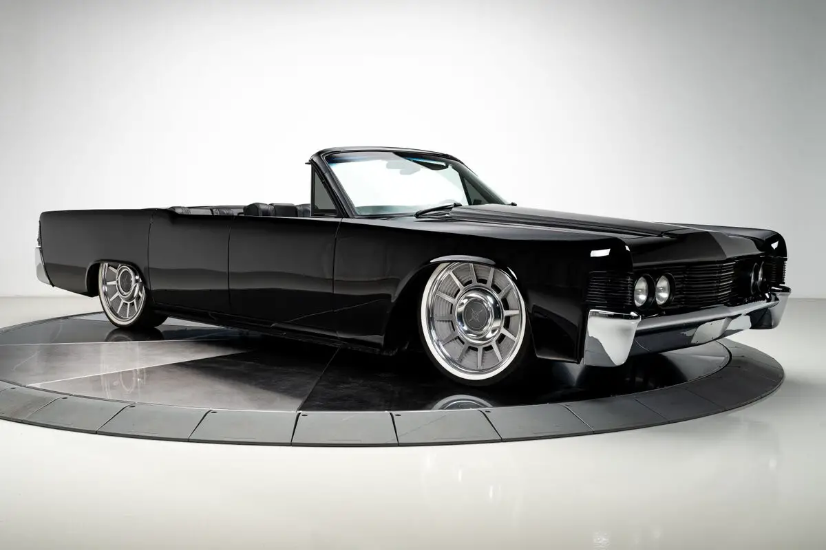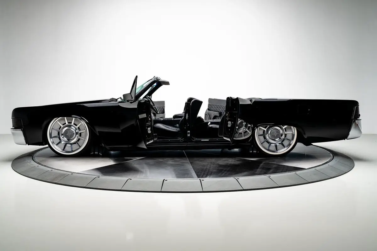 This 1965 Lincoln Continental Convertible is a no-expense-spared restomod that transforms an already iconic luxury car into a sinister, modern masterpiece. Its deep gloss black finish, blacked-out trim, and molded body lines give it a seamless, almost concept-like appearance, highlighted by shaved badges, door handles, and a custom raised cowl hood. Massive 22-inch Billet Raceline Manhattan wheels wrapped in whitewall Nitto NT420S tires deliver a striking vintage-meets-modern stance. Under the forward-tilting hood lies a Texas Speed-built, supercharged 7.0L LSX V8 with a Whipple blower and Holley Dominator EFI, pushing an incredible 1100 horsepower through a 4L80E automatic to a Ford 9-inch rear with 3.11 gearing and limited-slip differential. Suspension upgrades include tubular control arms, a 4-link rear, Accuair air ride for adjustable stance, and Wilwood disc brakes at all four corners. Inside, the cabin is completely reimagined with custom diamond-stitched leather bucket seats front and rear, a full-length console with push-button controls, leather-wrapped dash with Dakota Digital gauges, modern air conditioning, high-end audio with JL Audio amps and Hertz speakers, and a Valentine One radar system. This Continental isn't just about looks, it's built to drop jaws and deliver brutal, unforgettable performance on demand.