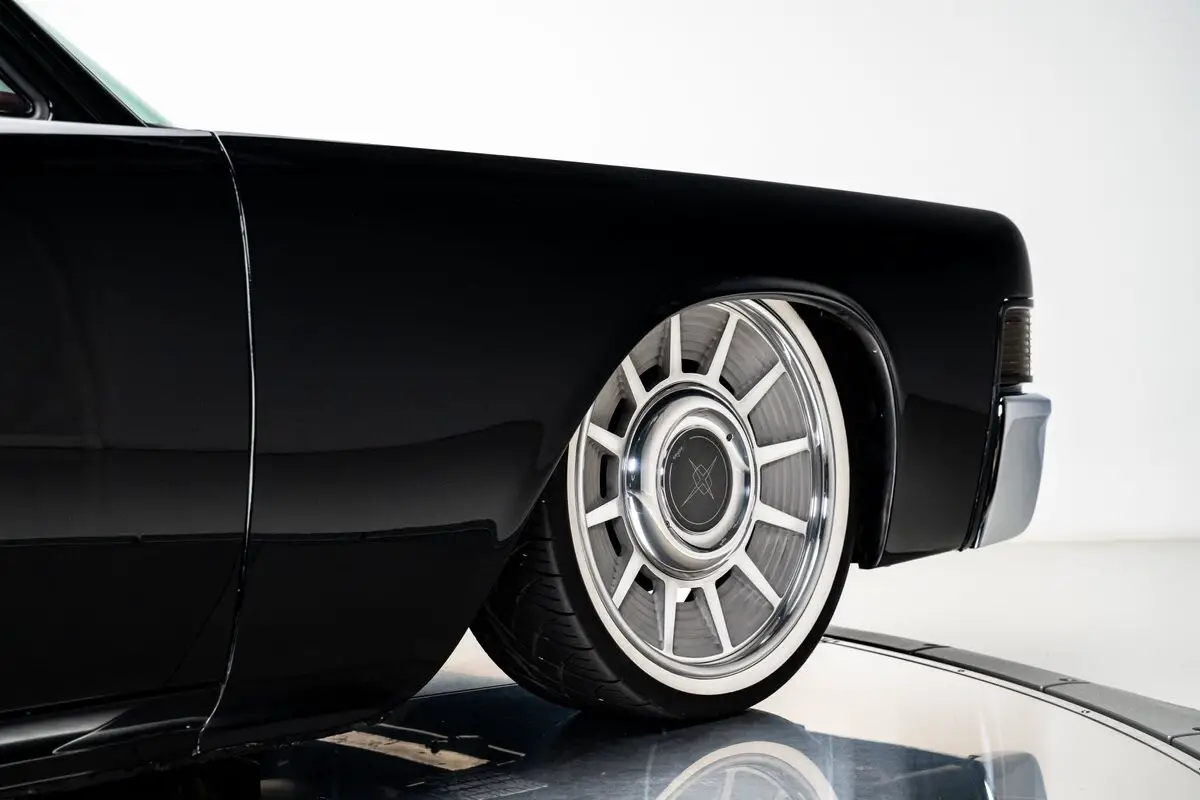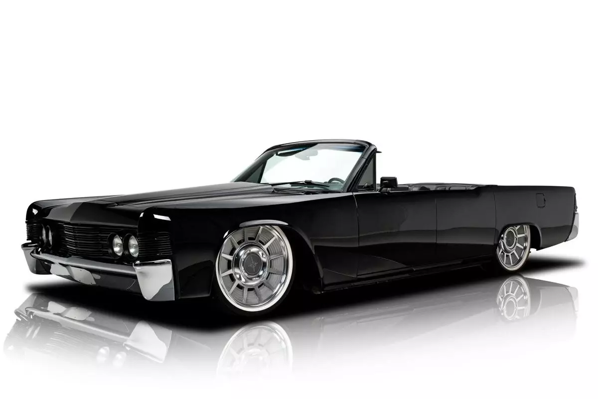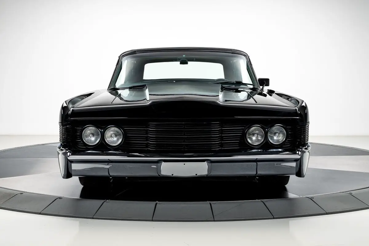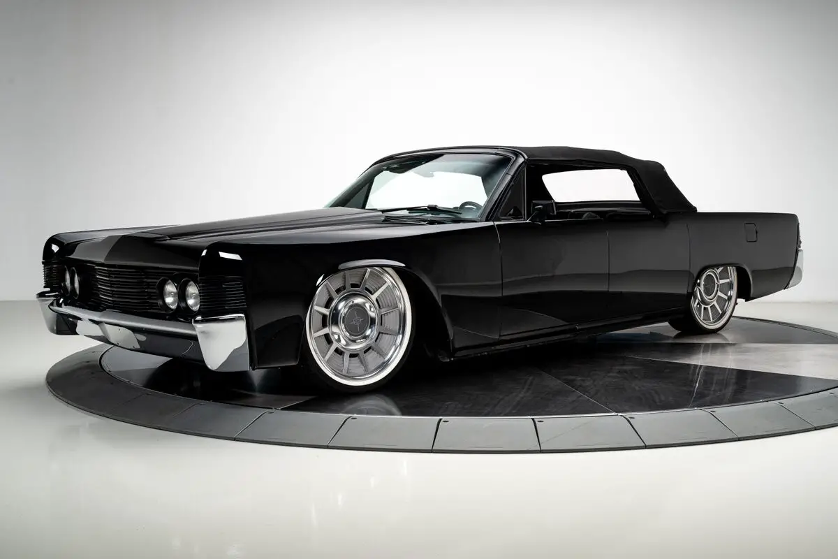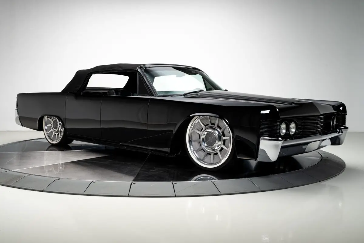This 1965 Lincoln Continental Convertible is a no-expense-spared restomod that transforms an already iconic luxury car into a sinister, modern masterpiece. Its deep gloss black finish, blacked-out trim, and molded body lines give it a seamless, almost concept-like appearance, highlighted by shaved badges, door handles, and a custom raised cowl hood. Massive 22-inch Billet Raceline Manhattan wheels wrapped in whitewall Nitto NT420S tires deliver a striking vintage-meets-modern stance. Under the forward-tilting hood lies a Texas Speed-built, supercharged 7.0L LSX V8 with a Whipple blower and Holley Dominator EFI, pushing an incredible 1100 horsepower through a 4L80E automatic to a Ford 9-inch rear with 3.11 gearing and limited-slip differential. Suspension upgrades include tubular control arms, a 4-link rear, Accuair air ride for adjustable stance, and Wilwood disc brakes at all four corners. Inside, the cabin is completely reimagined with custom diamond-stitched leather bucket seats front and rear, a full-length console with push-button controls, leather-wrapped dash with Dakota Digital gauges, modern air conditioning, high-end audio with JL Audio amps and Hertz speakers, and a Valentine One radar system. This Continental isn't just about looks, it's built to drop jaws and deliver brutal, unforgettable performance on demand.