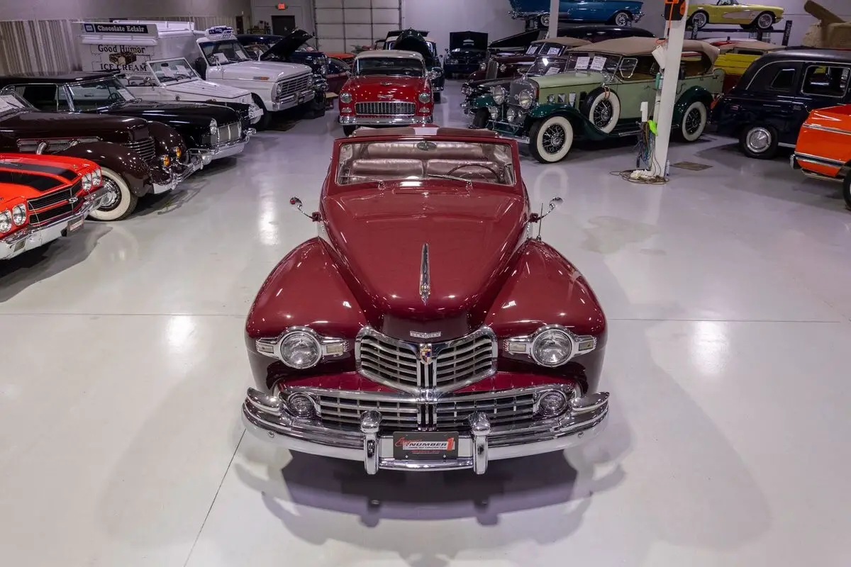 This 1948 Lincoln Continental Convertible is beautifully restored, rare, well-optioned post-war classic that has been deemed a Full Classic by the Classic Car Club of America (CCCA). The story of the Lincoln Continental traces back to 1939, when Edsel Ford, then president of Lincoln, commissioned a custom-built Lincoln Convertible Coupe inspired by the sleek, aerodynamic styling of Europe's most prestigious marques. That one-off personal car became the direct inspiration for the production Lincoln-Zephyr Continental, introduced in 1940 as a stylish, forward-thinking replacement for the aging Model K. The Continental's revolutionary design departed from the past by eliminating running boards, incorporating expansive glass areas, and embracing elegant Art Deco proportions. Longer, lower, and more sophisticated than previous Lincolns, the Continental set a new standard for American automotive design, signaling a bold move toward modernity and refinement. Production of the Continental halted in 1942 as the U.S. automotive industry shifted to wartime manufacturing. When peace returned in 1945, Lincoln-like other American automakers-resumed production using prewar tooling and designs. The 1946 Lincoln Continental, introduced to the press on September 13, 1945, featured only subtle updates, including a wider grille and minor trim revisions. By 1948, the Lincoln Continental had reached the final year of its original design run, remaining nearly identical to its 1946 and 1947 predecessors. In fact, enthusiasts often quip that the best way to tell them apart is by asking the owner. The 1948 Lincoln Continental Convertible stood as the pinnacle of the lineup, carrying an original price tag of nearly $5,000-an exceptionally high figure for the time. Due to its premium cost and minimal styling changes, production numbers were extremely limited, with only 452 Continental Convertibles built in 1948. Today, this rare and elegant automobile stands as a true icon of postwar American luxury. Its timeless styling, V12 power, and exceptional craftsmanship have earned it recognition from the Classic Car Club of America (CCCA) as a "Full Classic," underscoring its significance in the history of Lincoln and American automotive design. This particular example comes to from a wonderful family of collectors who owned and stewarded the car for nearly 30 years. Under the hood of this '48 Lincoln Continental Convertible is a 292 cubic inch L-head V12 engine fed by a single 2-barrel carburetor, producing a factory-rated 120 horsepower when new. The smooth-running 292 V12 is paired with a 3-speed manual transmission operated via a column-mounted "3-on-the-tree" shifter. Exhaust exits through a single outlet, delivering a rich, throaty tone from the rear. This '48 Lincoln rides on wide whitewall bias-ply tires mounted on steel wheels accented by full wheelcovers and beauty rings, giving the car a timeless and elegant presence whether cruising the boulevard or displayed at a local show. Out back, a rear-mounted continental kit carries the spare tire-an iconic feature of this namesake model. The rear wheels sit neatly behind fender skirts, adding to the streamlined, luxurious appearance of this CCCA Full Classic. Dual chrome outside mirrors are especially helpful when changing lanes on a CCCA CARavan or squeezing into a parking space the local CCCA car show or chapter event. Topping it all off is a black cloth power convertible top that operates smoothly at the flick of a switch and remains in wonderful condition; and, when the top is lowered, it tucks neatly below a matching boot. The all-steel body has been refinished in beautiful Victoria Coach Lincoln Maroon paint capping off the outstanding exterior appearance of this '48 Continental. The interior of this 1948 Lincoln Continental Convertible just screams luxury! The front and rear seats are extremely plush and they have been reupholstered in Oxblood Burgundy leather. The matching burgundy cutpile carpeting, matching upholstered door panels and sun visors, and art deco steering wheel all look great retaining their stock appearance. This Lincoln Continental comes outfitted with full instrumentation including a 110 MPH speedometer, temperature gauge, oil pressure gauge, amp gauge, and fuel gauge. The dash is finished off with various other controls along with an optional clock, optional AM radio with integrated speaker, and a locking glovebox. Whether you're already a card carrying member of the Classic Car Club of America and adding to your existing collection or you're buying your very first classic car, this 1948 Lincoln Continental Convertible would make an excellent choice. Give Ellingson's a call today at 763-428-7337!