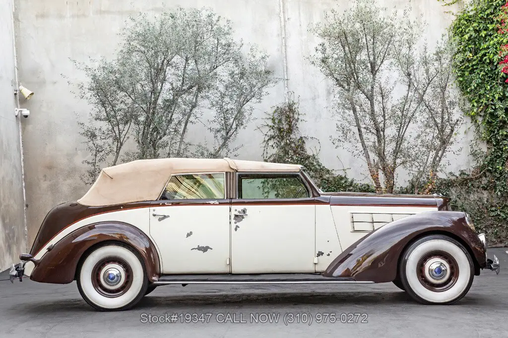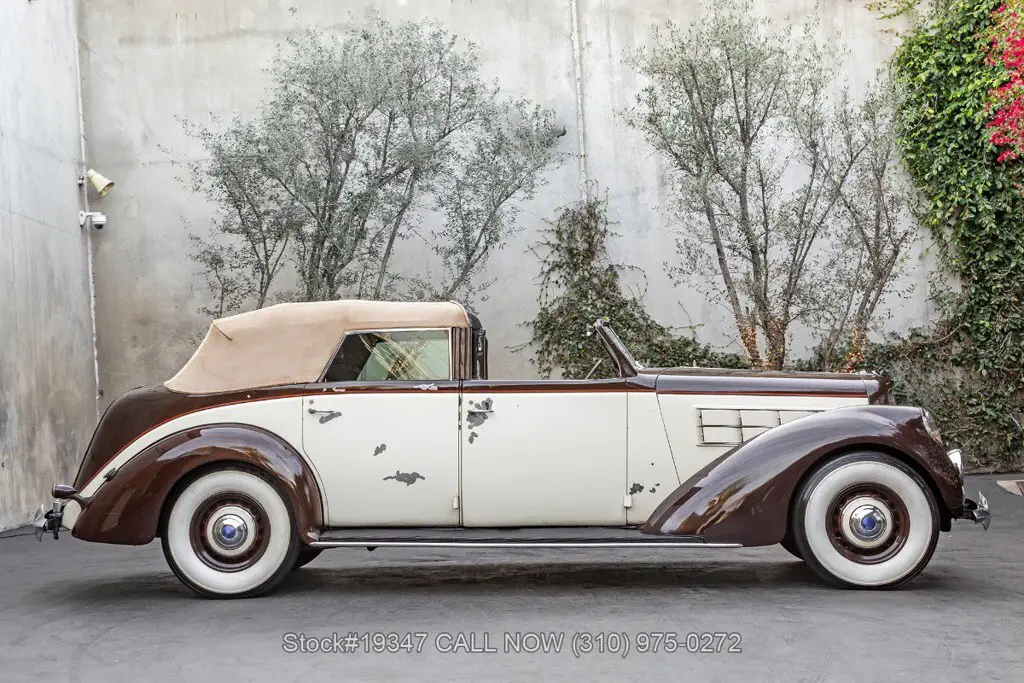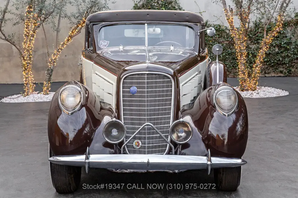 Introducing a rare 1937 Lincoln Model K V12 Convertible Sedan with Divider Window, finished in an elegant two-tone Cordova Brown over Cream that suits the car's formal prewar presence perfectly.