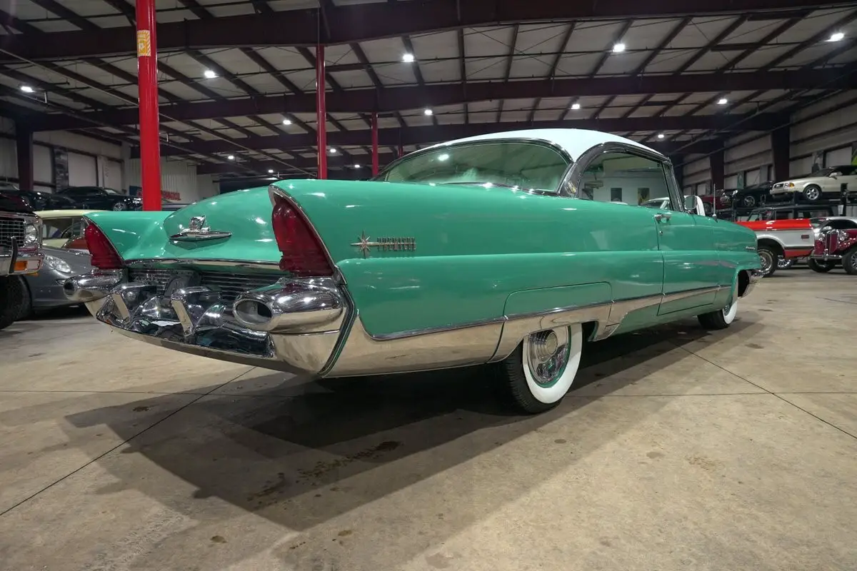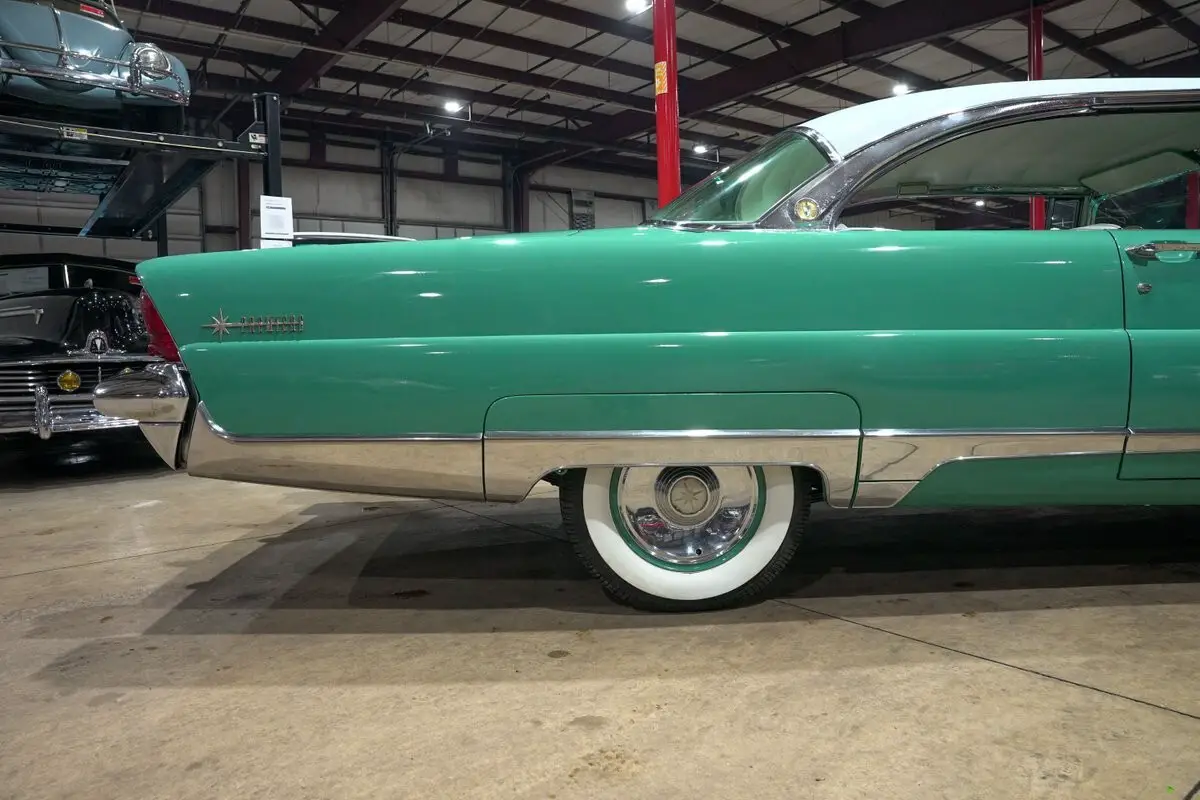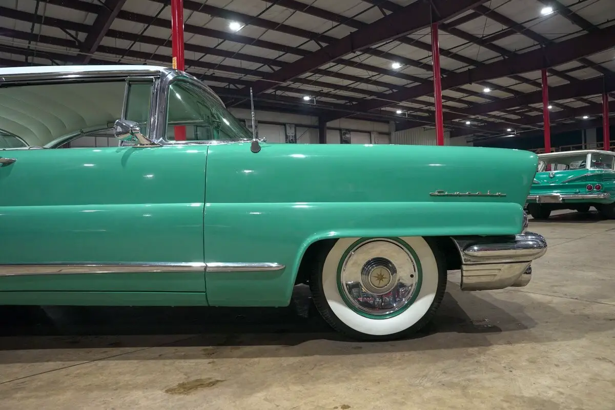 GR Auto Gallery is excited to present this stunning 1956 Lincoln Premiere, an absolute icon of mid century American luxury finished in the unforgettable Taos Turquoise with a contrasting white top. The long, elegant body lines are highlighted by extensive chrome trim, brilliant chrome bumpers, and a beautiful chrome and gold hood ornament that perfectly captures the bold styling of the era. Teal painted wheels with chrome hubcaps and wide whitewall tires complete the look and give this Lincoln a commanding presence from every angle.