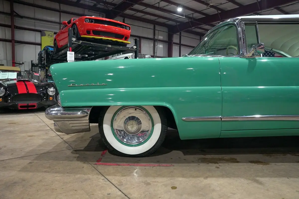 Inside, the original interior remains intact and is finished in striking white and teal leather that matches the exterior perfectly. The white headliner, chrome accents, and period correct details create a true luxury cabin that reflects Lincoln's flagship status in the 1950s. Features include crank windows, a full gauge cluster, and wide bench seating that delivers a smooth and relaxed driving experience.