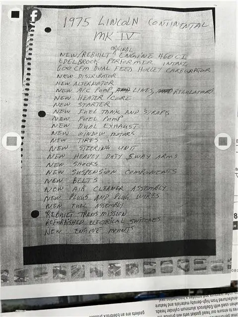 1975 Lincoln Continental Mark IV, Full Mechanical Refurbishment New 460 V8, long time ownership, clean original car, recent full mechanical restoration, to include fully rebuilt 460 V8, new intake, new carburetor, new ac, new heater core, new exhaust, new window motors, suspension, shocks, etc etc. includes paperwork. Car drives like new, fly out and drive home.