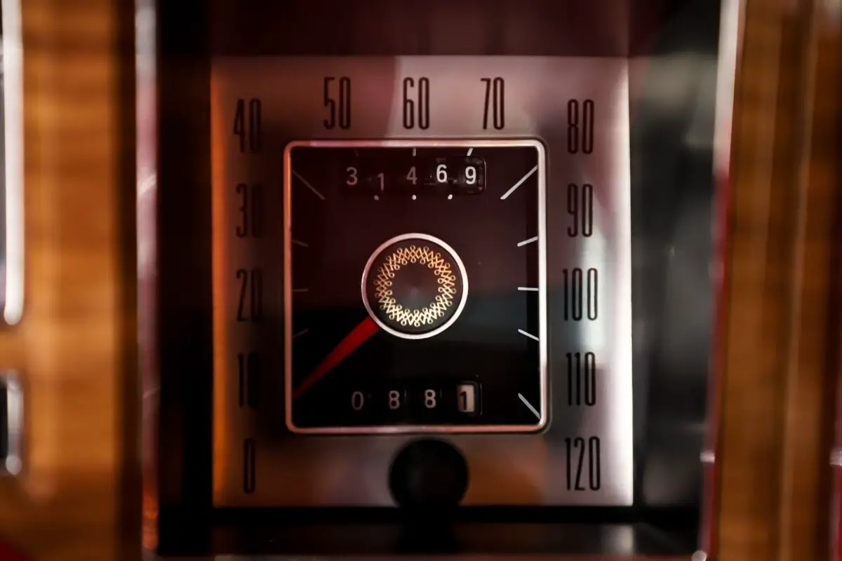 INTERIOR: Cranberry Victoria velour interior is in excellent original condition. The plastic trim, woodgrain, gauges, knobs etc are excellent. The door panels, armrests and headliner are excellent. The comfy velour upholstery still looks amazing. Both front seats are 6 way power with armrests. Down on the floor is the original plush carpet. It is pure luxury and comfort, I want to make it my office!