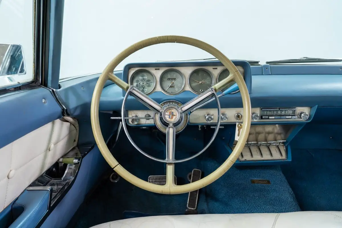 Under the hood, the '57 Mark II utilized Lincoln's powerful 364-cu-in (6.0-liter) V8/4V. This was a larger version of the traditional 292/312 Ford Y-block and was rated at 285hp-415lb/ft of torque. It is paired with a TurboDrive 3-speed automatic transmission giving the coupe respectable performance for a luxury car of that era. The solid chassis is equipped with power steering and power drum brakes. Steel wheels with full factory covers mount Coker Classic wide-white tires.