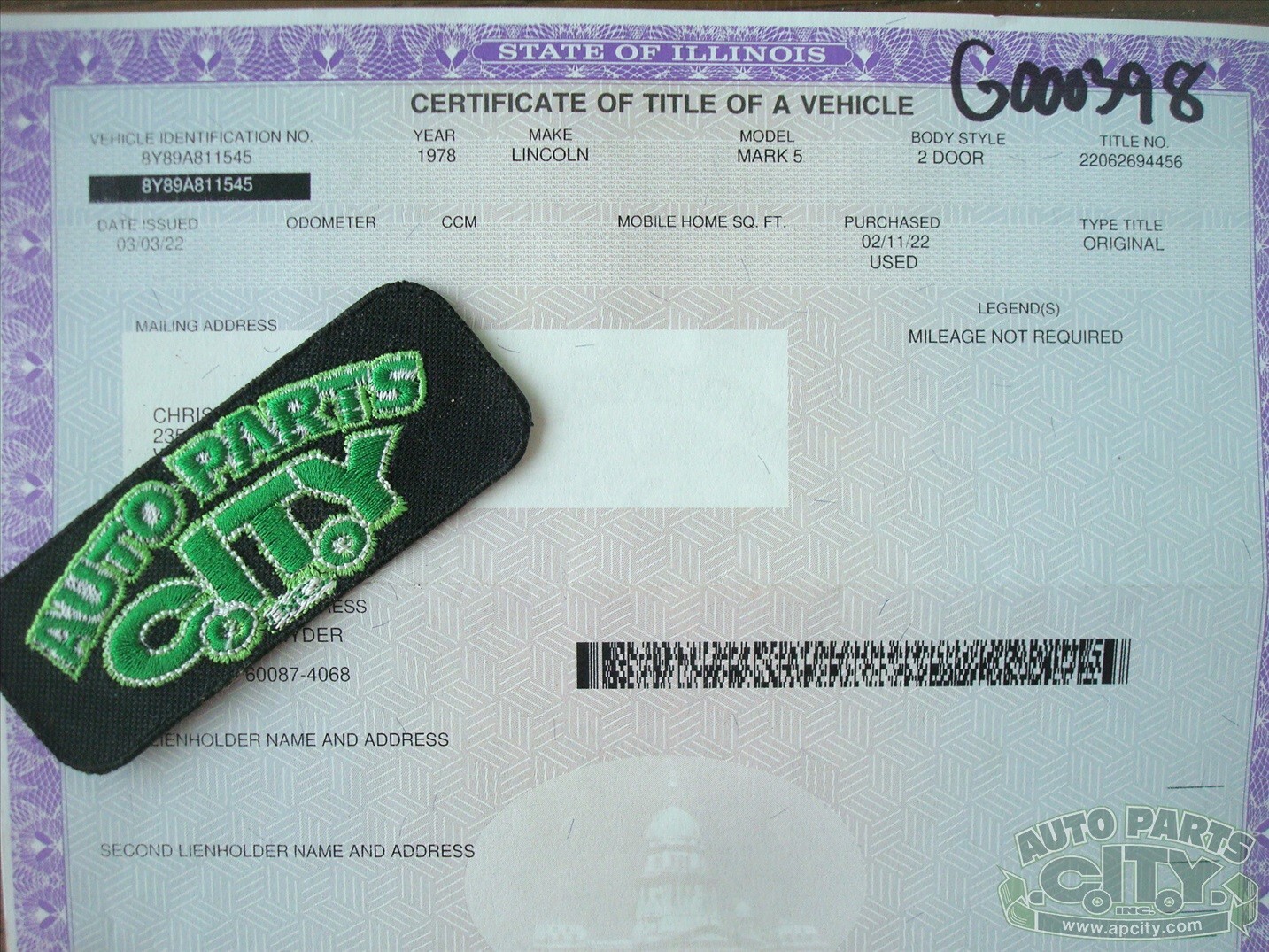 AUTO PARTS CITY / CLASSIC CAR CITY / CITY AUTO SALESGURNEE, ILLINOIS AND PARK CITY, ILLINOIS