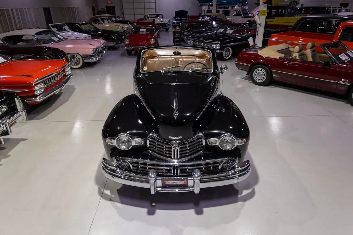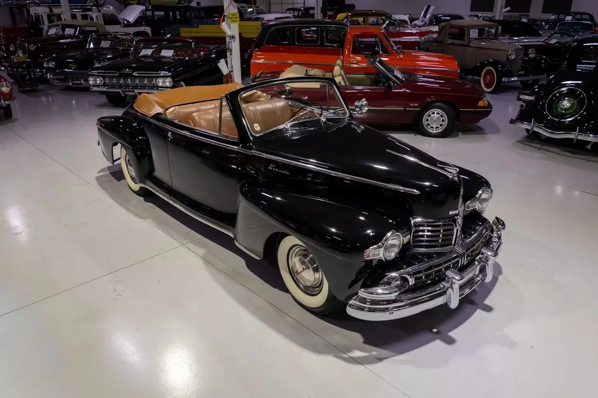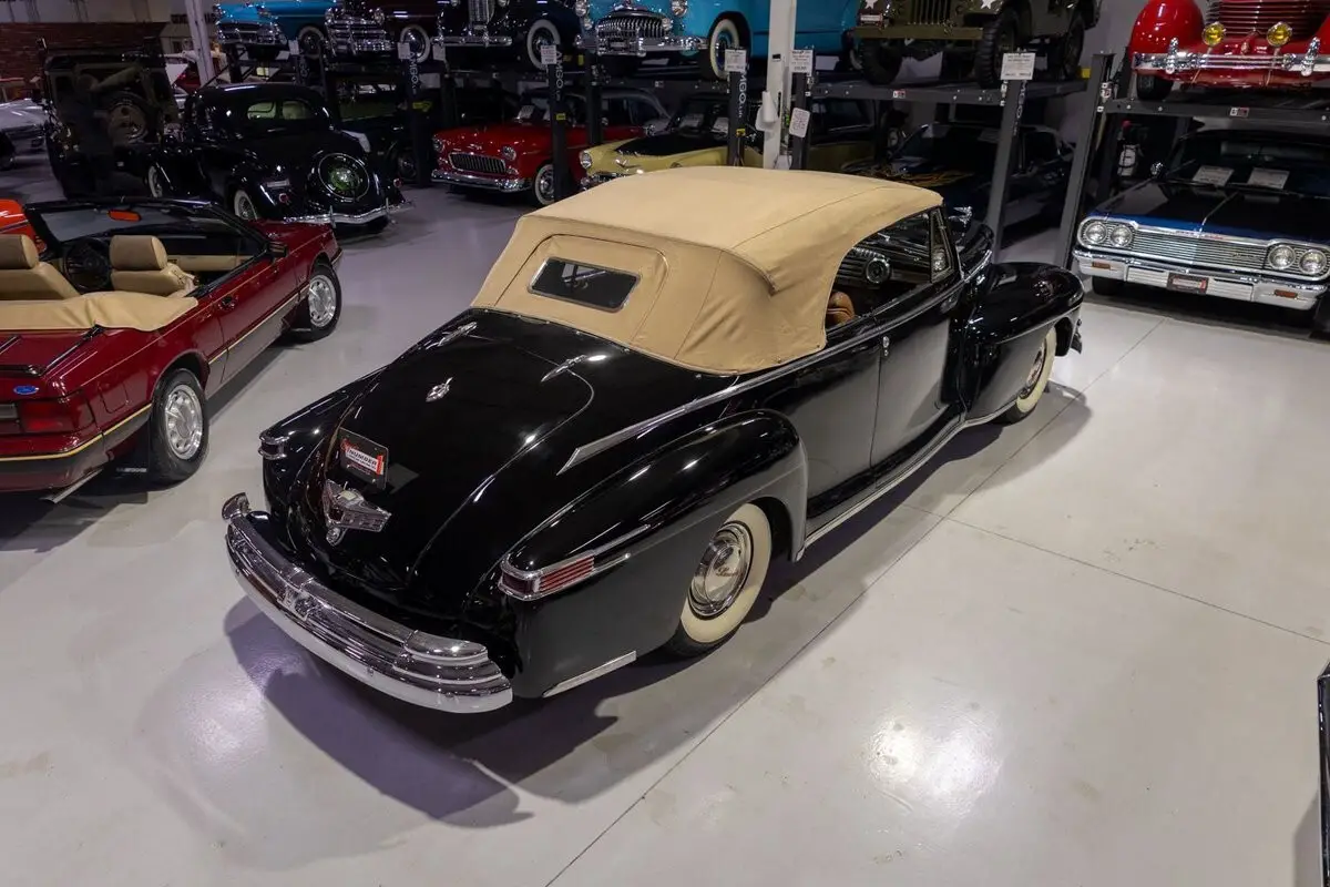 This 1947 Lincoln Model 76H Convertible Coupe is a luxurious, post-war Lincoln with fantastic options and wonderful provenance. Despite having survived the Great Depression and World War II, the immediate post-war Lincolns were remarkably similar to the pre-war designs. The reason for this was because the American automotive manufacturers had ceased production of consumer vehicle production and their production facilities were dedicated to the War effort. Yet, instead of spending months or even years re-tooling their plants to accommodate new car designs, Lincoln (like virtually every other American manufacturer) opted to utilize the same pre-war body designs and modestly update decorative trim, interior options, and even, in the case of Lincoln in 1947, upgrade the power plant. Certainly the overall silhouette of the '47 Lincoln models mirrored those from 1942 and 1946, and even some features like the push-button door