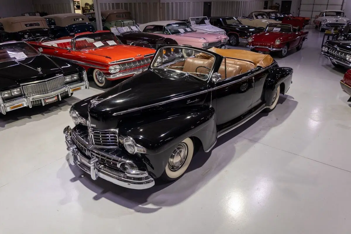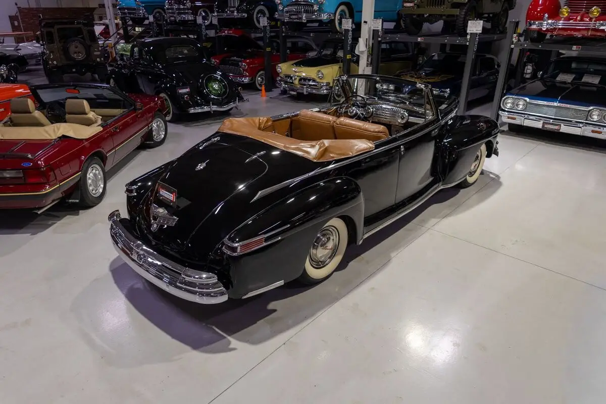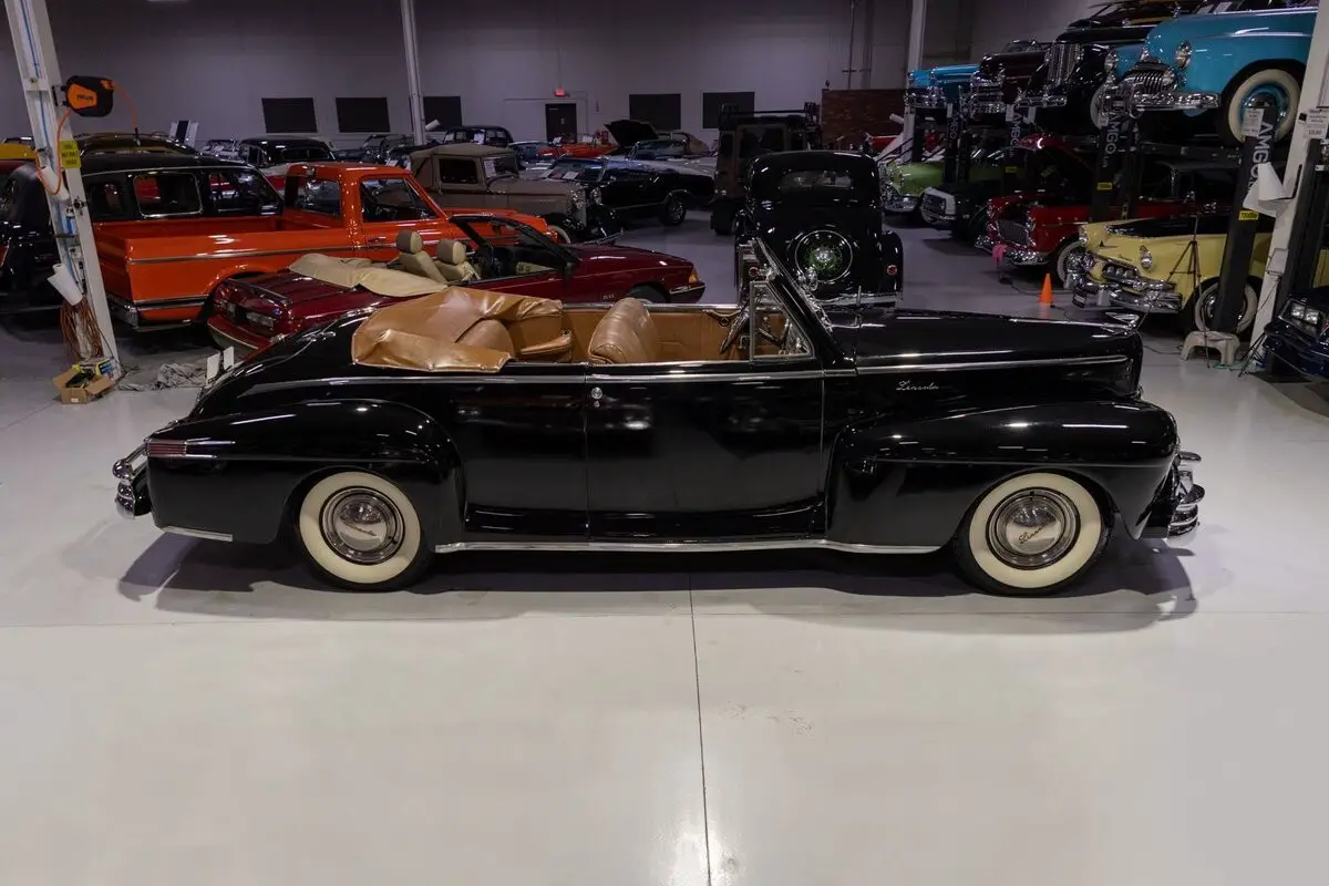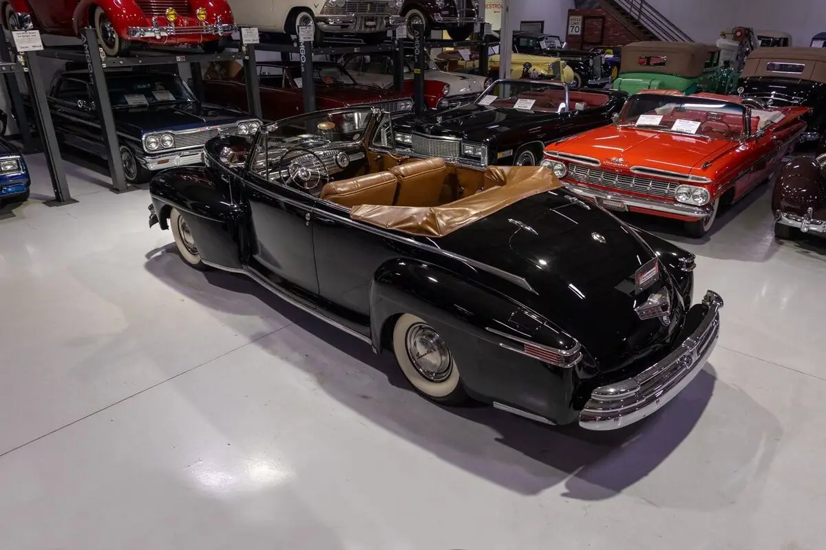 This 1947 Lincoln Model 76H Convertible Coupe is a luxurious, post-war Lincoln with fantastic options and wonderful provenance. Despite having survived the Great Depression and World War II, the immediate post-war Lincolns were remarkably similar to the pre-war designs. The reason for this was because the American automotive manufacturers had ceased production of consumer vehicle production and their production facilities were dedicated to the War effort. Yet, instead of spending months or even years re-tooling their plants to accommodate new car designs, Lincoln (like virtually every other American manufacturer) opted to utilize the same pre-war body designs and modestly update decorative trim, interior options, and even, in the case of Lincoln in 1947, upgrade the power plant. Certainly the overall silhouette of the '47 Lincoln models mirrored those from 1942 and 1946, and even some features like the push-button door