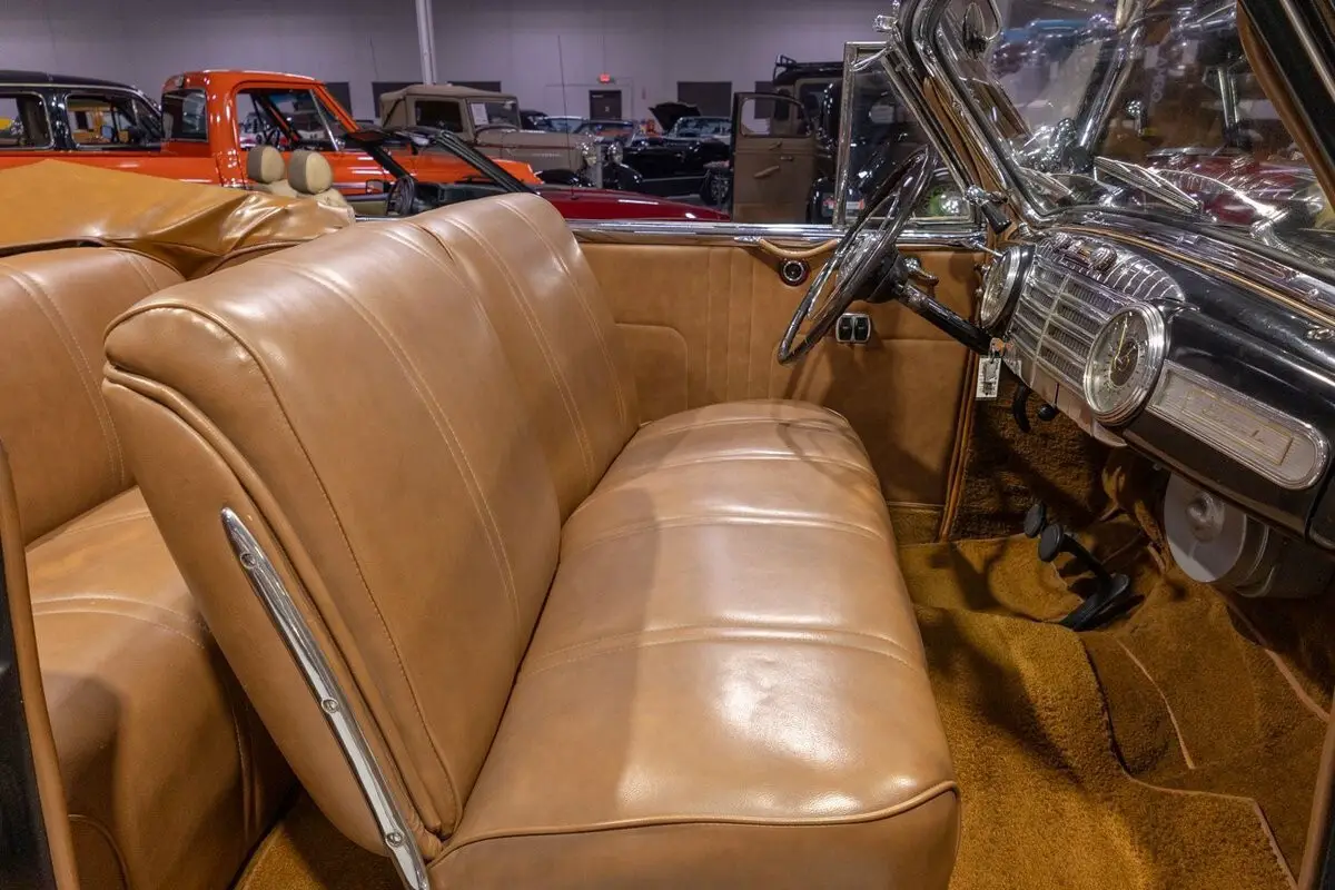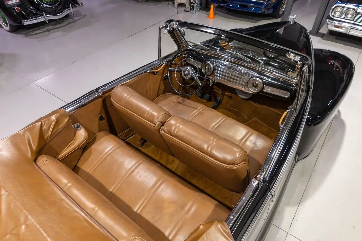This 1947 Lincoln Model 76H Convertible Coupe is a luxurious, post-war Lincoln with fantastic options and wonderful provenance. Despite having survived the Great Depression and World War II, the immediate post-war Lincolns were remarkably similar to the pre-war designs. The reason for this was because the American automotive manufacturers had ceased production of consumer vehicle production and their production facilities were dedicated to the War effort. Yet, instead of spending months or even years re-tooling their plants to accommodate new car designs, Lincoln (like virtually every other American manufacturer) opted to utilize the same pre-war body designs and modestly update decorative trim, interior options, and even, in the case of Lincoln in 1947, upgrade the power plant. Certainly the overall silhouette of the '47 Lincoln models mirrored those from 1942 and 1946, and even some features like the push-button door "handles" were carried forward into the early 1947 model year. Perhaps the most substantial upgrade for the 1947 Lincoln came in the form of the new engine, now capable of producing 130 horsepower rather than 120 horsepower found in the earlier version. In 1947, Lincoln offered two product lines, the standard Model 76H as well as the more expensive Continental. In both product lines, the most exclusive body was, of course, the Convertible Coupe, both of which sported the highest MSRP in their respective line. Interestingly however, the Model 76H Convertible Coupe is believed to be far more rare than the Continental since Lincoln produced 738 Continental Convertibles compared to 384 76H Convertibles. The easiest way to differentiate a Continental from the Model 76H is by looking at the rear; where the Continental has a bustle back hump for a trunk, the Model 76H has a more elegant sloping design for the deck lid. This particular 1947 Lincoln 47H Convertible Coupe comes to us from a meticulous caretaker who stewarded the car for nearly 40 years after reportedly purchasing the car from a collector based in Southern California. Under the hood on this '47 Lincoln Convertible is a 305 Cubic Inch L-Head V12 fed by a single 2 barrel carburetor that together were said to have produced 130 horsepower when new. The 305 V-12 is backed by a 3 speed manual transmission with overdrive that makes this 1947 H-Series Lincoln an enjoyable car to take for a cruise. Exhaust exits the 130hp powerplant via a stock set of exhaust manifolds and out through a single tailpipe, generating a terrific sound at idle and cruising down the road. Riding on full wide whitewall tires mounted on steel painted color-matched wheels and elevated with Lincoln emblazoned full wheel covers and Beauty Rings, this 1947 Lincoln Convertible Coupe has a fantastic look whether you're parked at the local car show or enjoying the car on the open road. The tan cloth power convertible top is in wonderful shape, raising and lowering effortlessly with the flip of a switch. Additionally, when the top is in its lowered position, it tucks neatly below a matching convertible top boot for a more streamlined look. Driver's side spot light is backed by an outside mirror, which together improve visibility and add some period-correct flair. The all-steel body has been refinished in Black paint, completing the exterior look of this wonderful post-war cruiser. The interior of this 1947 Lincoln Model 76H Convertible Coupe looks great! The front and rear bench seats have been restored using Walnut Tan upholstery, tastefully complementing the overall look of this Lincoln. The matching door panels, Caramel carpeting and floor mats, painted dash, and steering wheel all show well and they all retain a nice stock appearance. Instrumentation remains in its stock configuration as well, consisting of a 110 MPH speedometer, temperature gauge, oil pressure gauge, amp gauge, and fuel gauge. Interior is also pleasantly optioned, including front and rear cigar lighters and ashtrays, a heated defroster, and even all 4 power windows go up and down with the simple flick of a switch. The dash is finished off with a locking glovebox, Clock, and AM radio with integrated speaker so that you can listen to all of your tunes while enjoying this Lincoln Convertible to the fullest! Whether you're a card carrying member of the Lincoln & Continental Owners Club (LCOC) or you're buying your very first classic car, this 1947 Lincoln Model 76H Convertible Coupe would make an excellent choice. Give Ellingson's a call today at 763-428-7337!