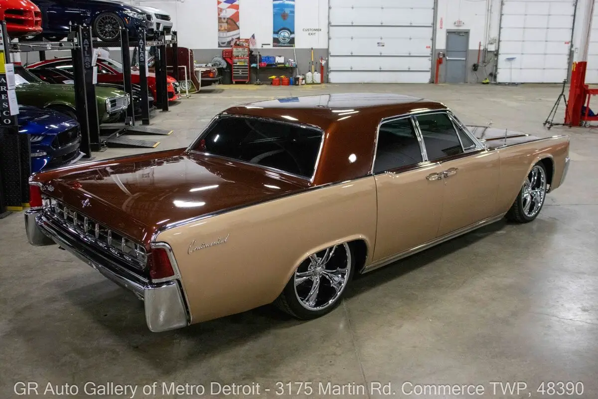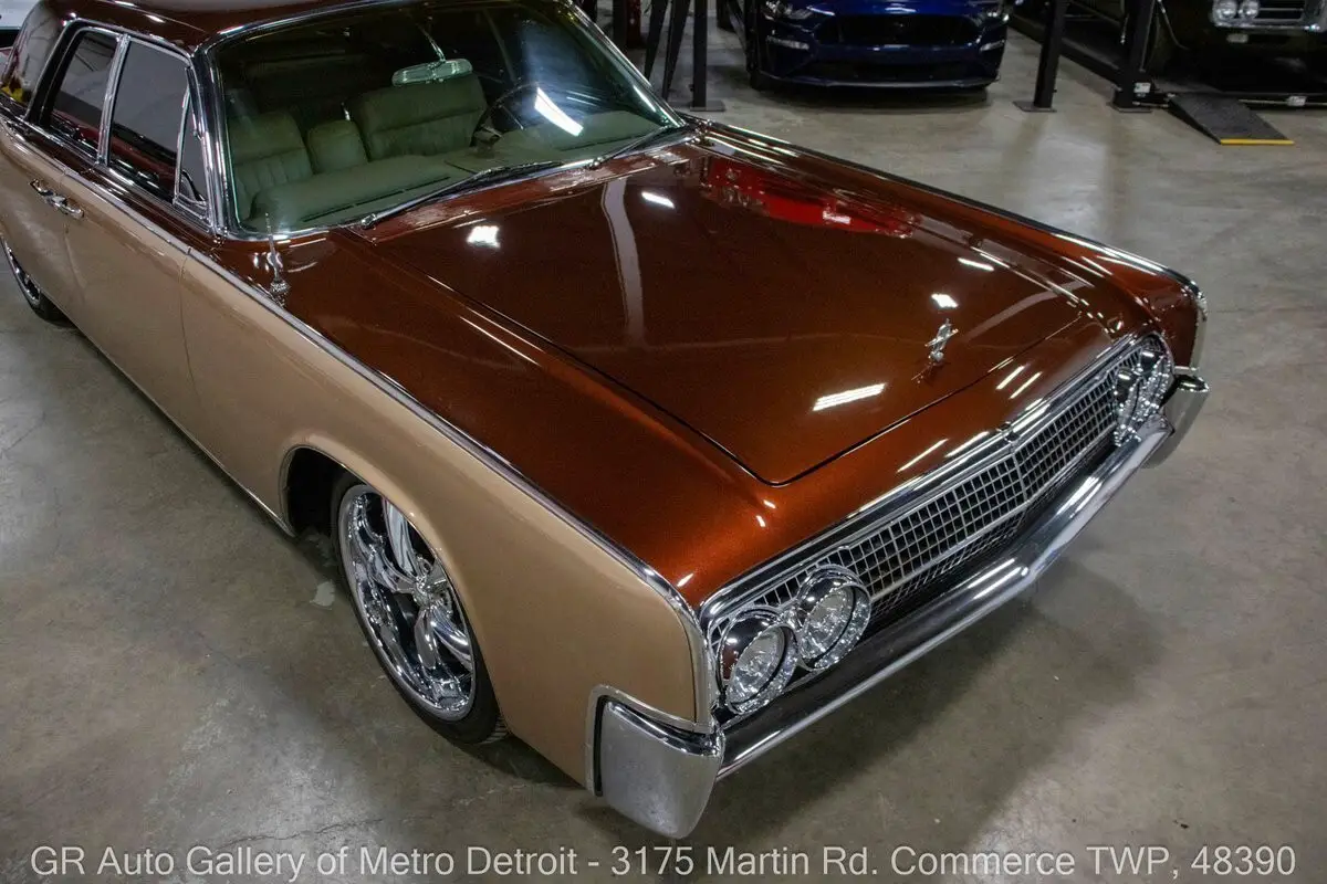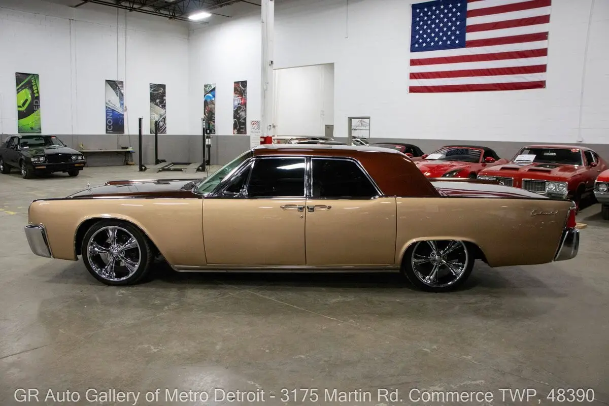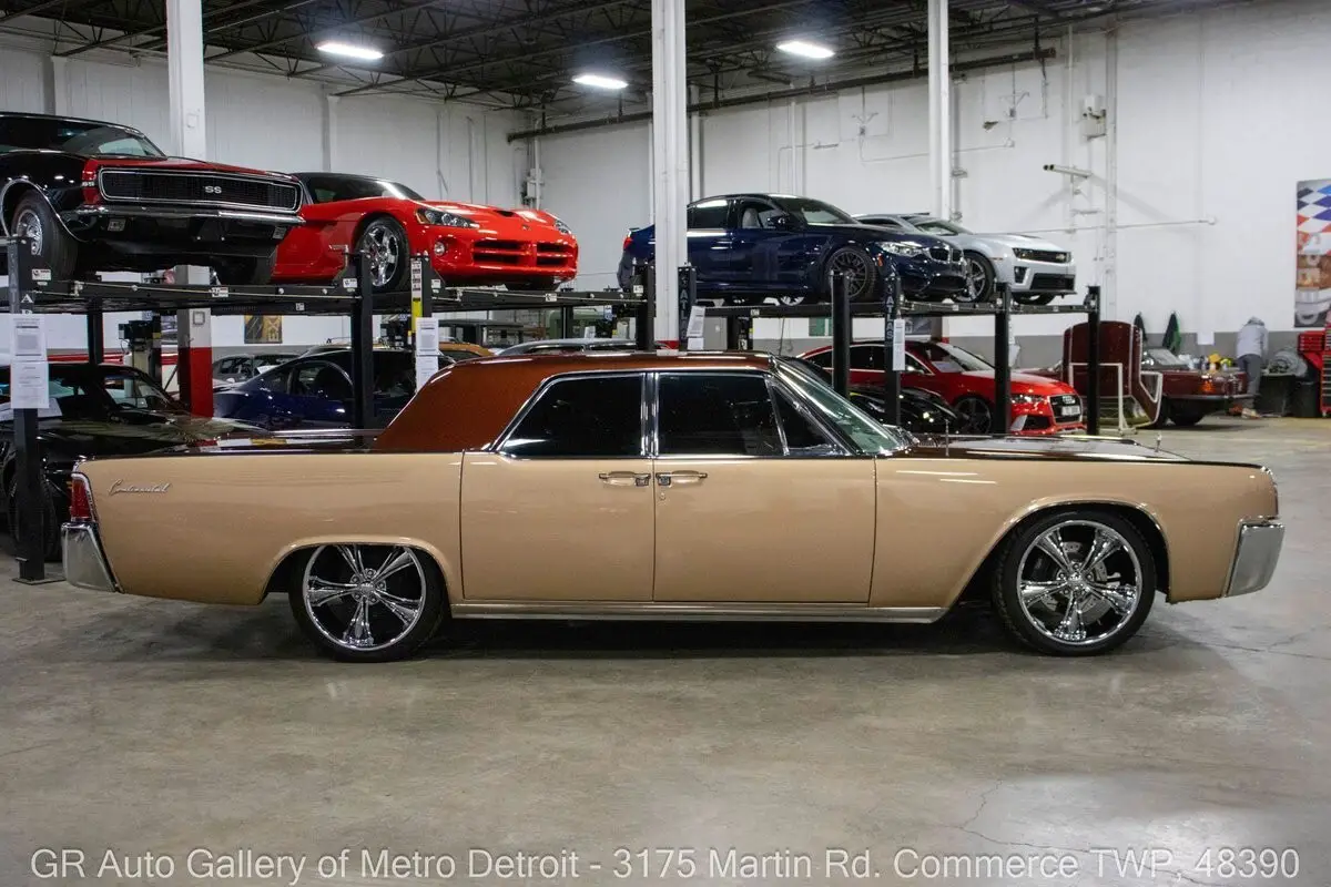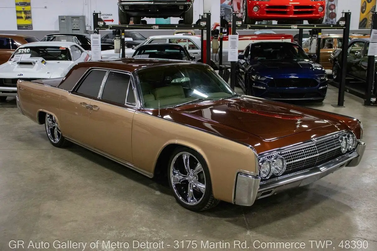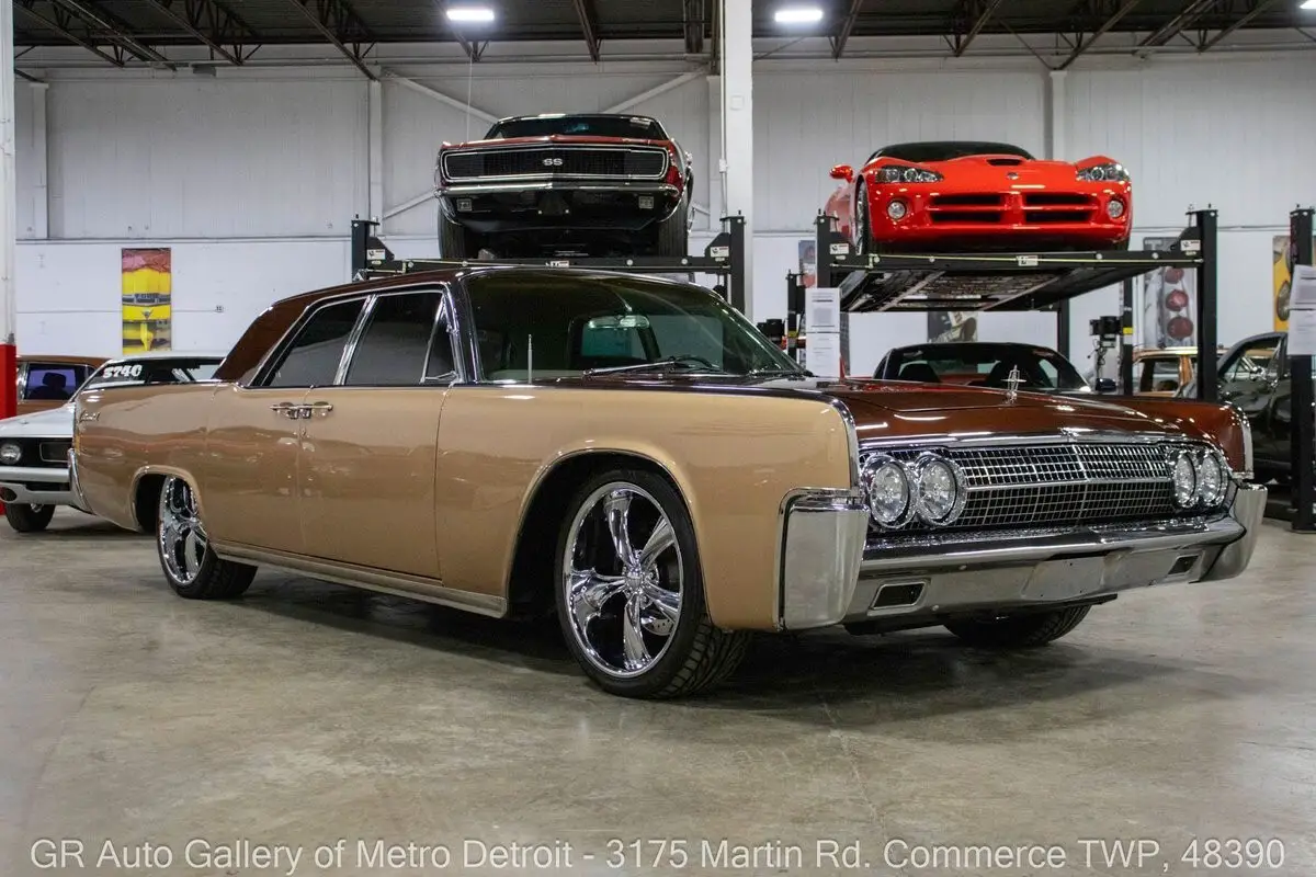 GR Auto Gallery is pleased to present this stunning 1963 Lincoln Continental for your consideration. Finished in a unique and eye-catching Root Beer Float exterior over a beautifully reupholstered Beige interior, this Continental exudes classic luxury with tasteful modern upgrades. Powering this Lincoln is a 430 cubic inch V8 paired with an automatic transmission, now enhanced with EFI (fuel injection) for improved reliability and performance. This meticulously cared for example is believed to be numbers matching and was rebuilt approximately 14 years ago, at which time it also received fresh two-tone paint, front brakes, fuel lines, and a fuel pump. Additional highlights include front disc brakes, annual oil changes, numerous receipts documenting its care, a Sony sound system, added center console, heater and air conditioning, Done Right steering, and powered windows and bench seat. Sitting lowered by 2 inches on Boss chrome wheels, this Continental also features iconic suicide doors, chrome front and rear bumpers, and comes with a car cover. Drive this one out of our showroom or have us assist with shipping it to you anywhere in the United States! Don't hesitate to call us with any questions or for more information.