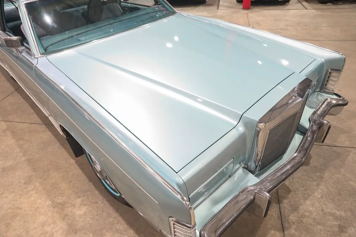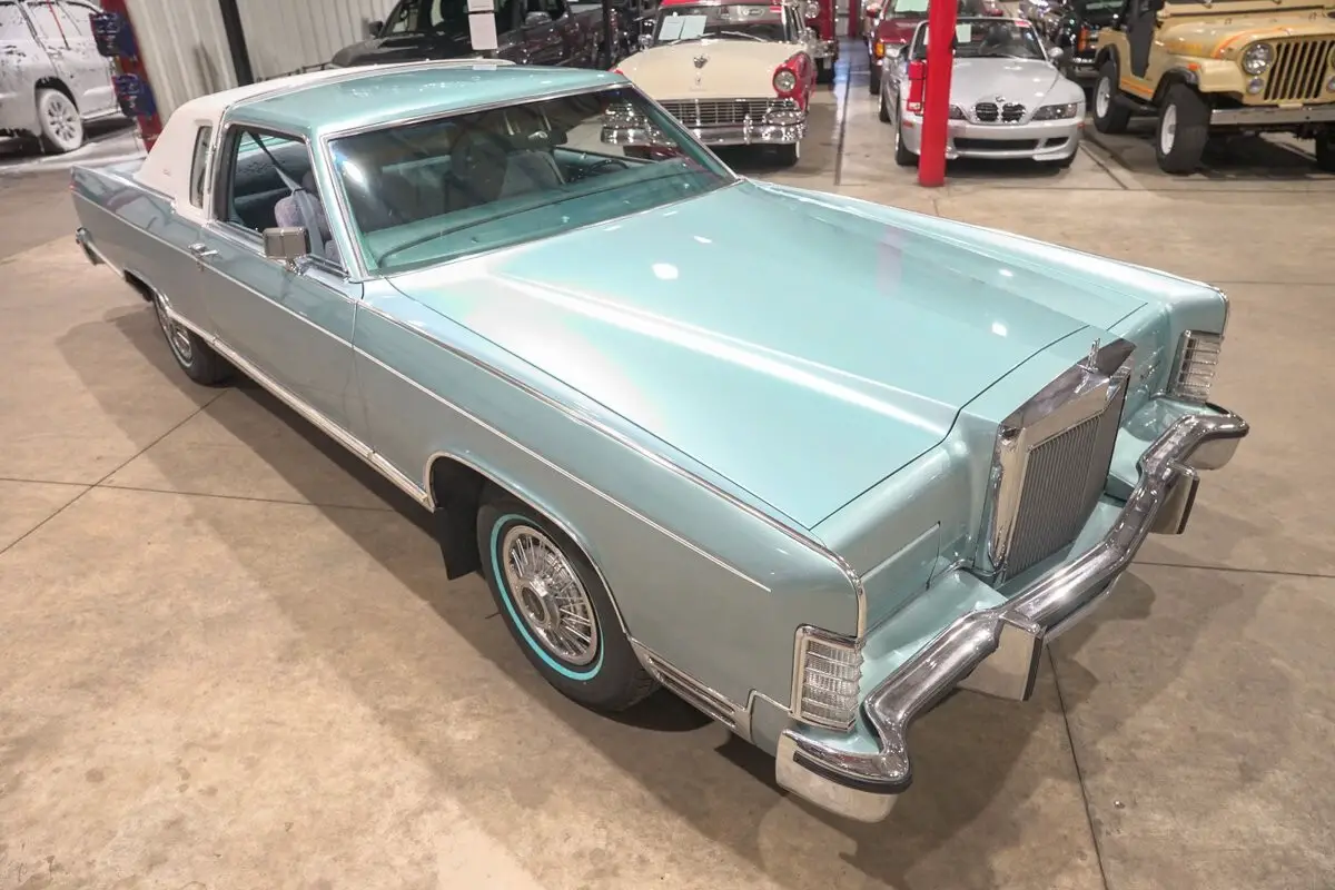 GR Auto Gallery is excited to present this 1979 Lincoln Continental Town Coupe finished in stunning Diamond Blue Moondust Metallic over a Blue cloth interior with a white vinyl top. This full size luxury coupe represents the height of late 1970s American comfort and style, with its long body lines, formal roofline, and unmistakable road presence. The Cartier interior package adds an extra level of refinement, while wood trim throughout the cabin enhances its upscale feel. From the power antenna to the elegant color combination, this Lincoln delivers true classic luxury.