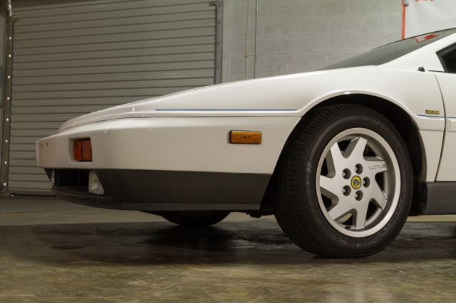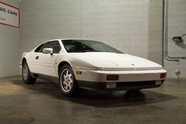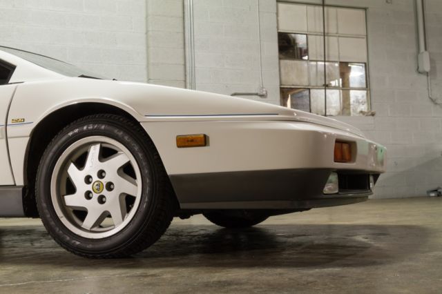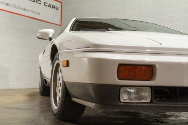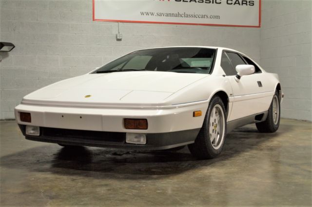 We are pleased to present this 1989 Lotus Esprit Turbo finished in original Monaco White exterior and Navy leather interior with 79,276 original miles. It has the 4 cylinder 2.2 Ltr Turbo Type 910 engine with 5-speed manual transmission. In 1989, the Esprit was improved with the GM multi-port, electronic fuel injection system. The engine has 215hp and is rated to go from zero to sixty in 5.4 seconds and can reach top speed around 150mph. With only 1,562 produced, this sports car definitely fits in the rare category. The engine was completely rebuilt in 2004 by Tony Richards of Autobahn Exotics, who is generally regarded as the best Lotus mechanic in the Dallas-Ft. Worth area. All of the work was done meticulously and to factory specs. Detailed documentation of the rebuild is available. A new A/C compressor and headlight motor was also installed. It has only been driven 3,000 miles since the rebuild and the car also just had a complete full service with new timing belt, new front calipers, brake pads, plugs, plug wires, new clutch line and a fresh oil change. It is loaded with all the options such as power windows, power locks, power steering, 4-wheel disc power brakes, air conditioning, flip up head lights, power mirrors, center console, alloy wheels, removable sunroof, fog lights and power antenna. The sound system is a current Alpine AM/FM CD stereo. The original interior is in great condition with the door panels, carpet, headliner all looking great. The dash gauges, clock and lights are all operational and the A/C blows cold air. The leather seat cushions have small splits in the leather seam from normal usage. The 235/60R15 Dunlop tires are like new. We have all receipts and documentation dating back to 1997 and it has a clean Carfax report. We can coordinate shipping anywhere. This car is ready to drive! Please contact Savannah Classic Cars at 912-235-2347 (no Texts).